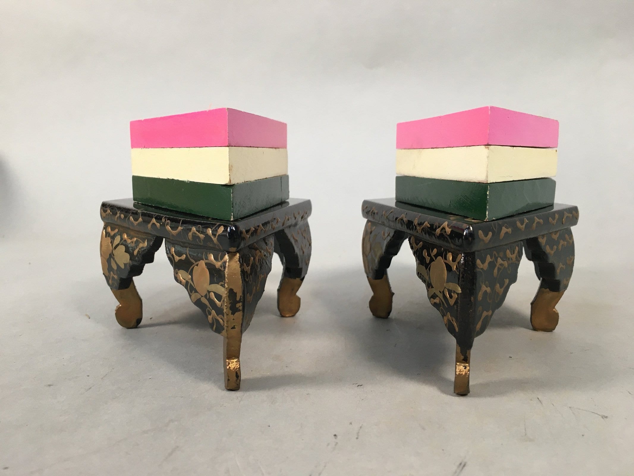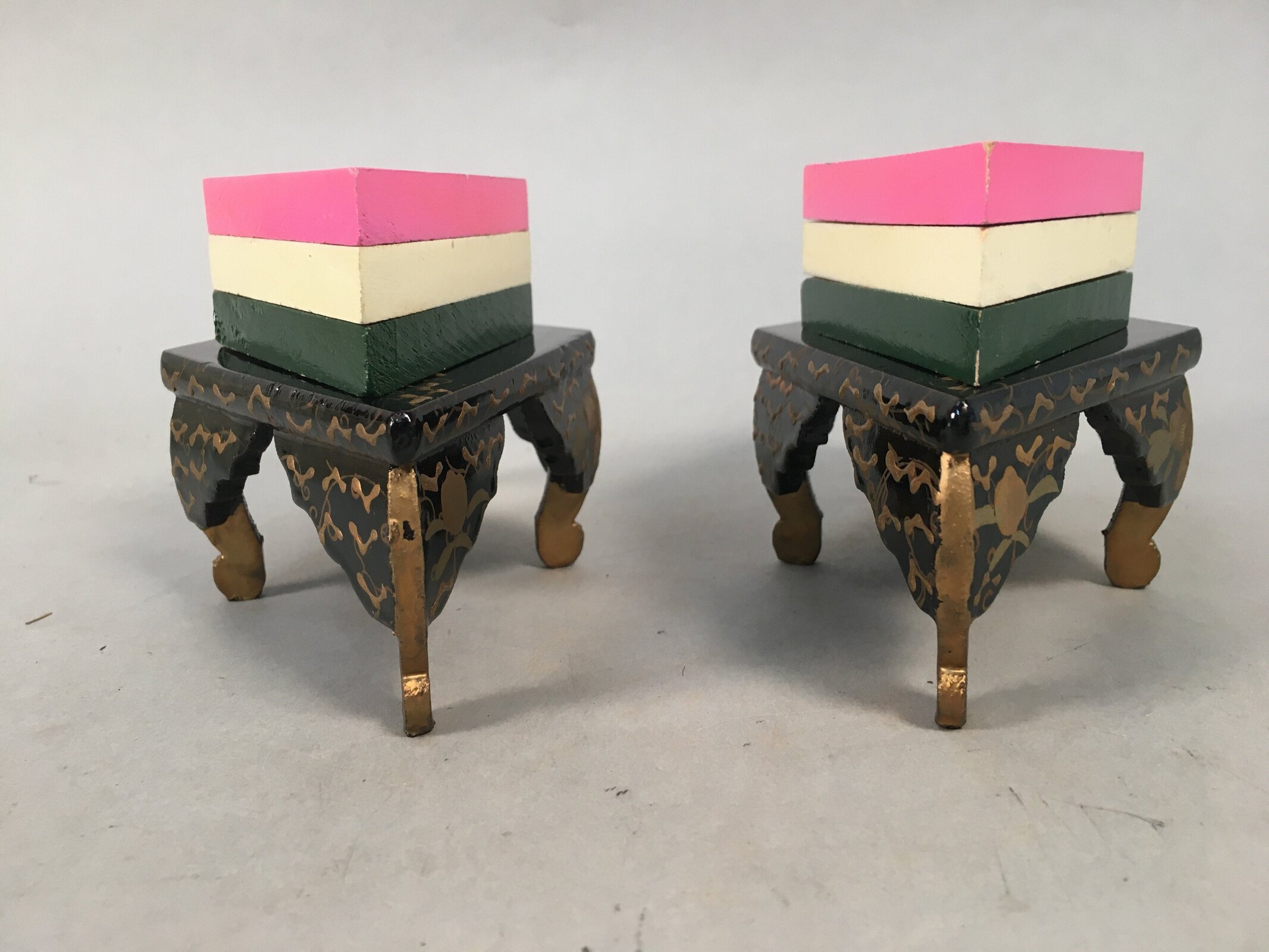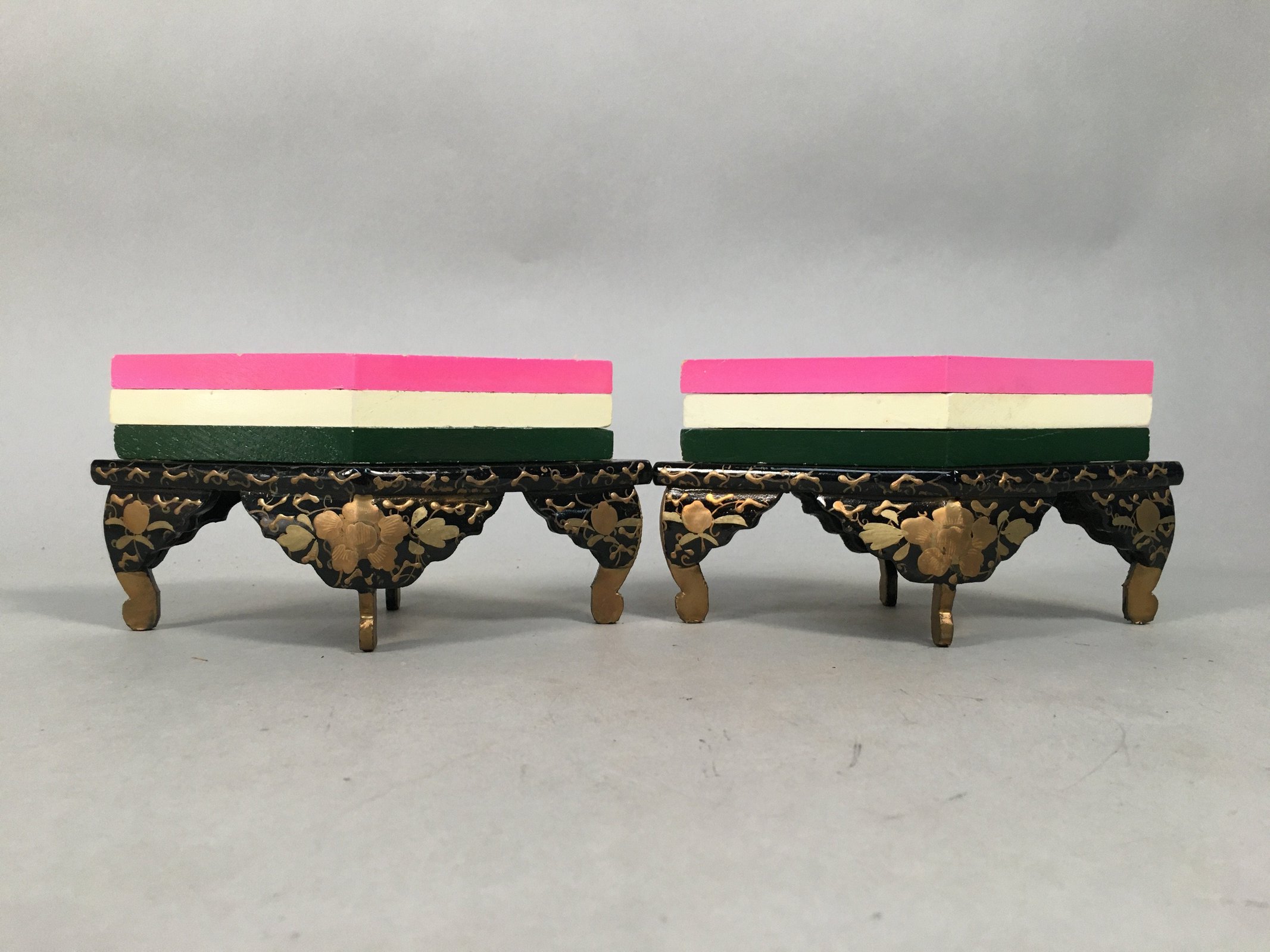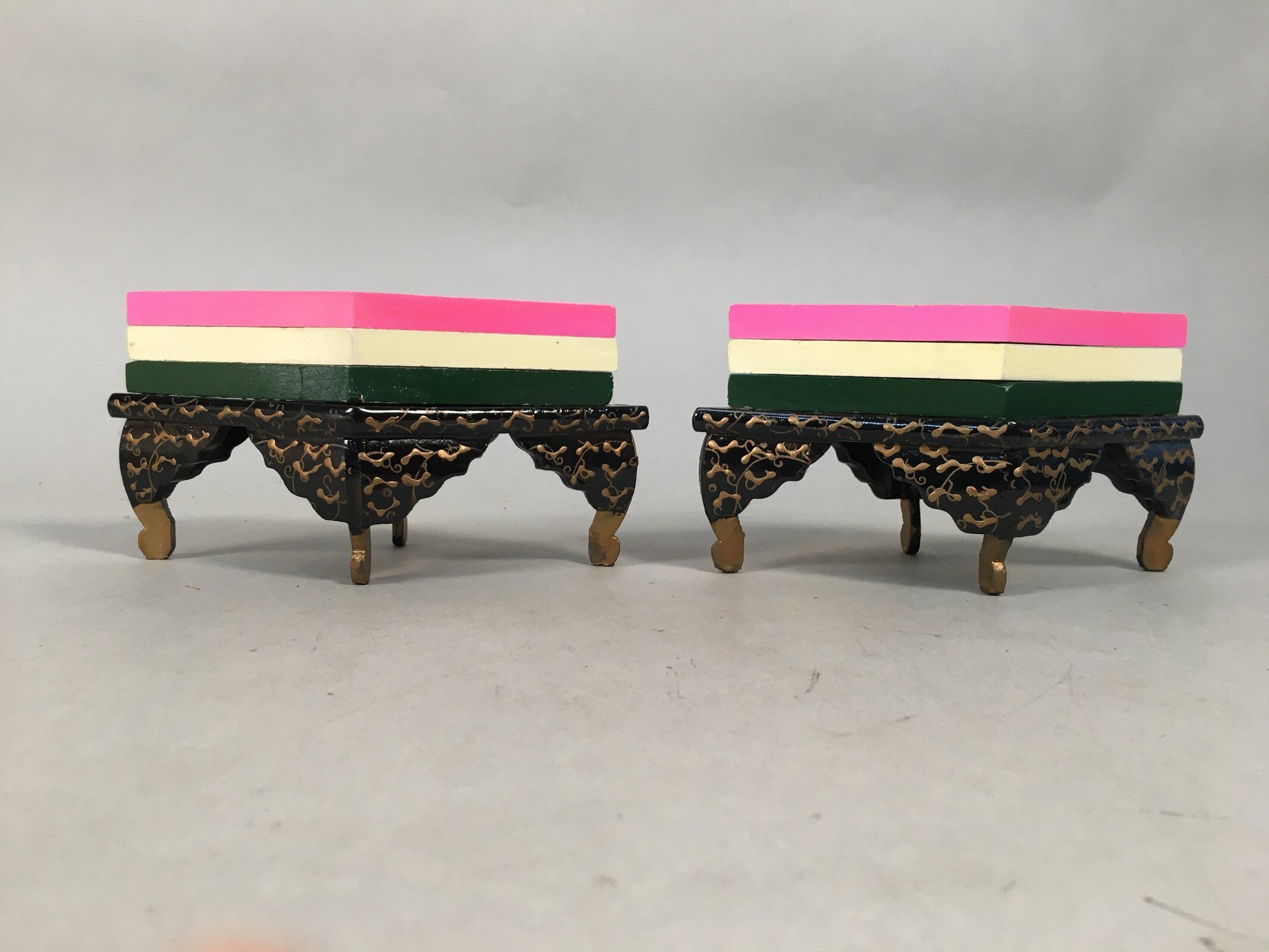 January 18, 2026Japanese Hina Doll Rhombus Rice Cake Offering Stand Pair Vtg Furniture Wood ID34