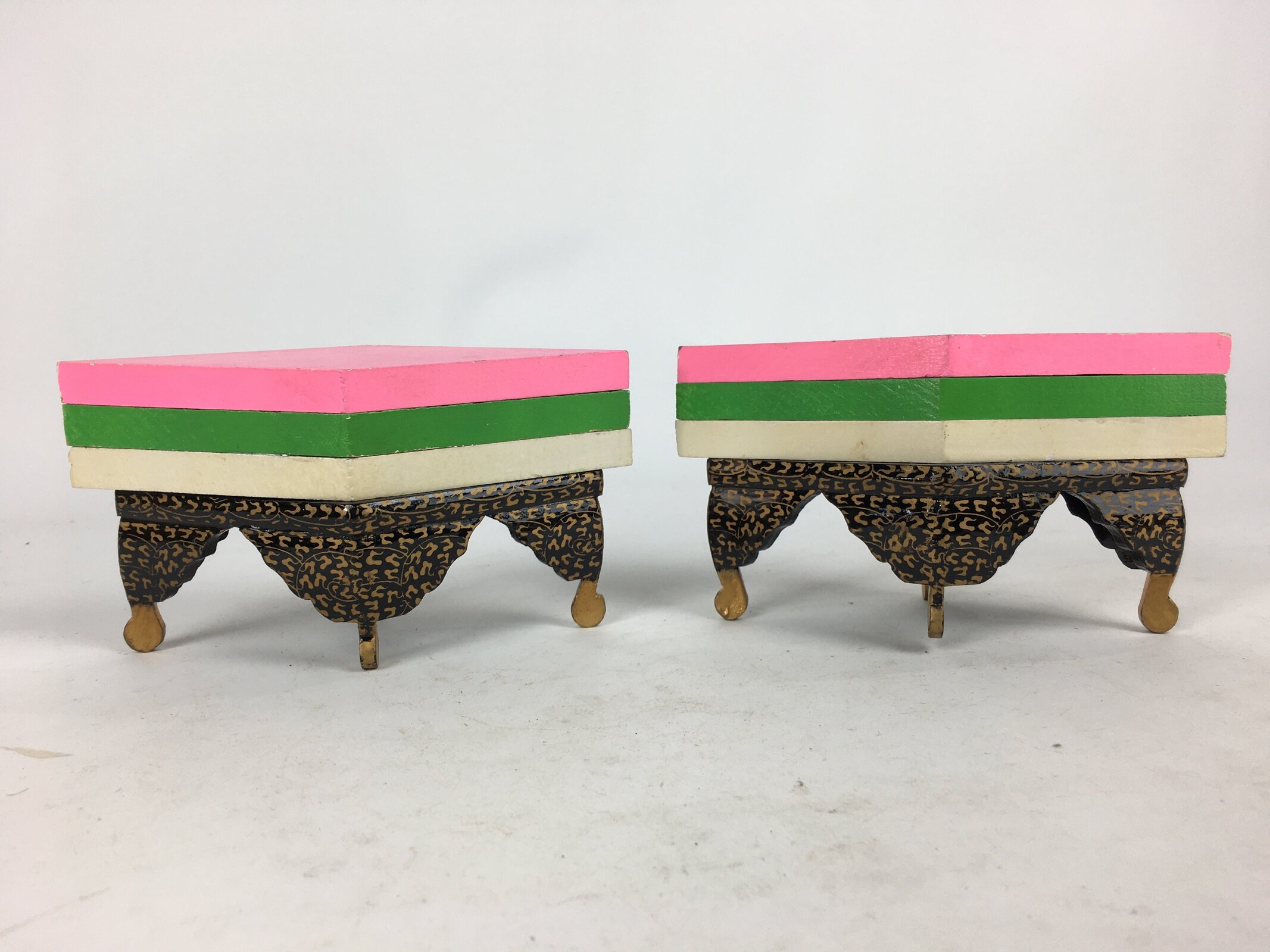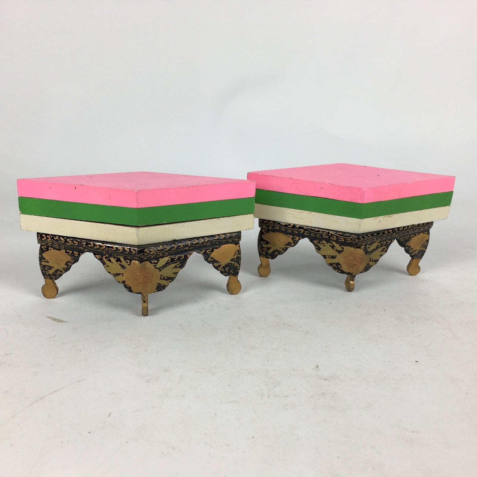 January 18, 2026Japanese Hina Doll Rhombus Rice Cake Offering Stand Pair Vtg Furniture Wood ID40