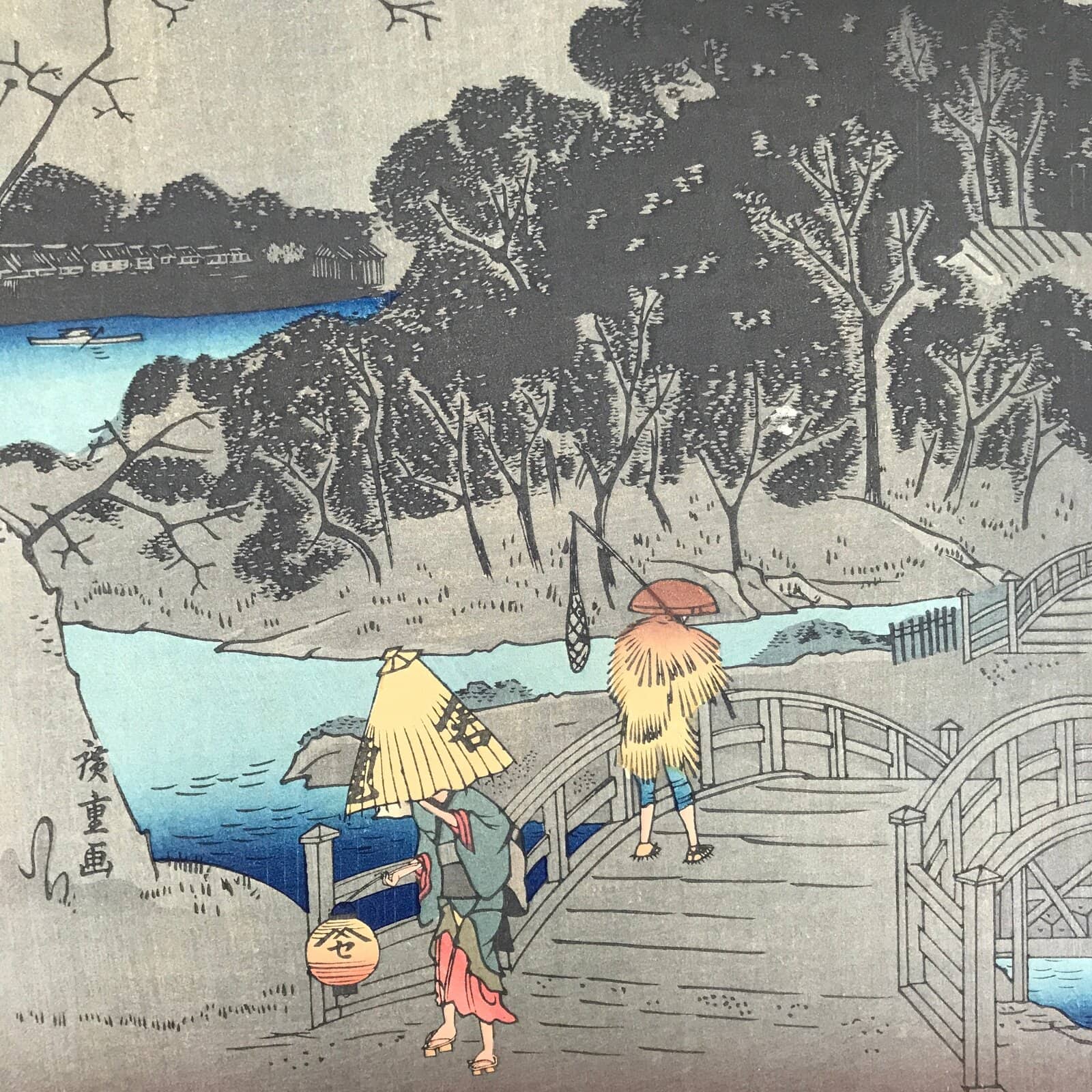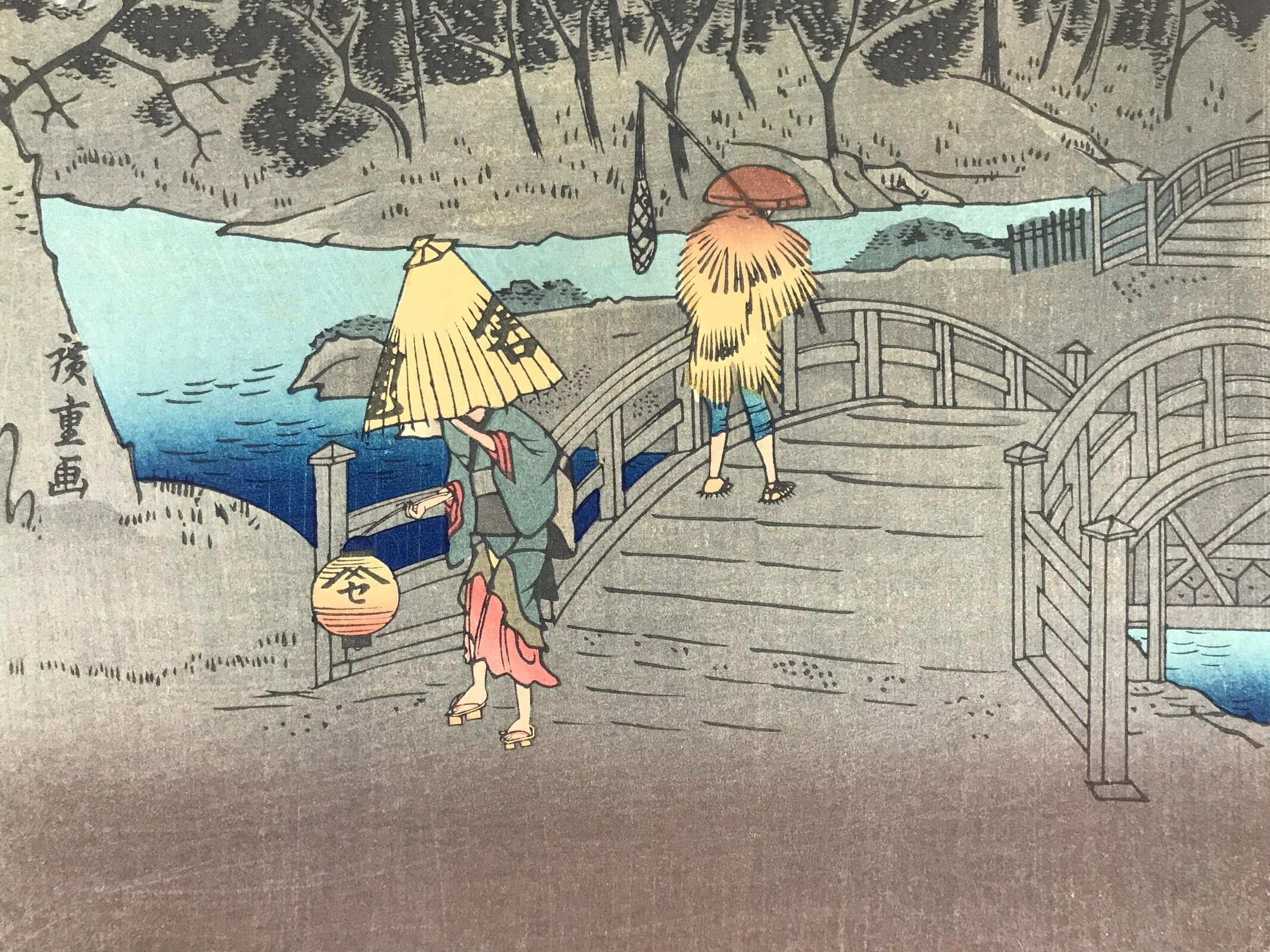 - Some characters: 枕はし夜雨 makura-hashi yosame rainy night at Makurabashi