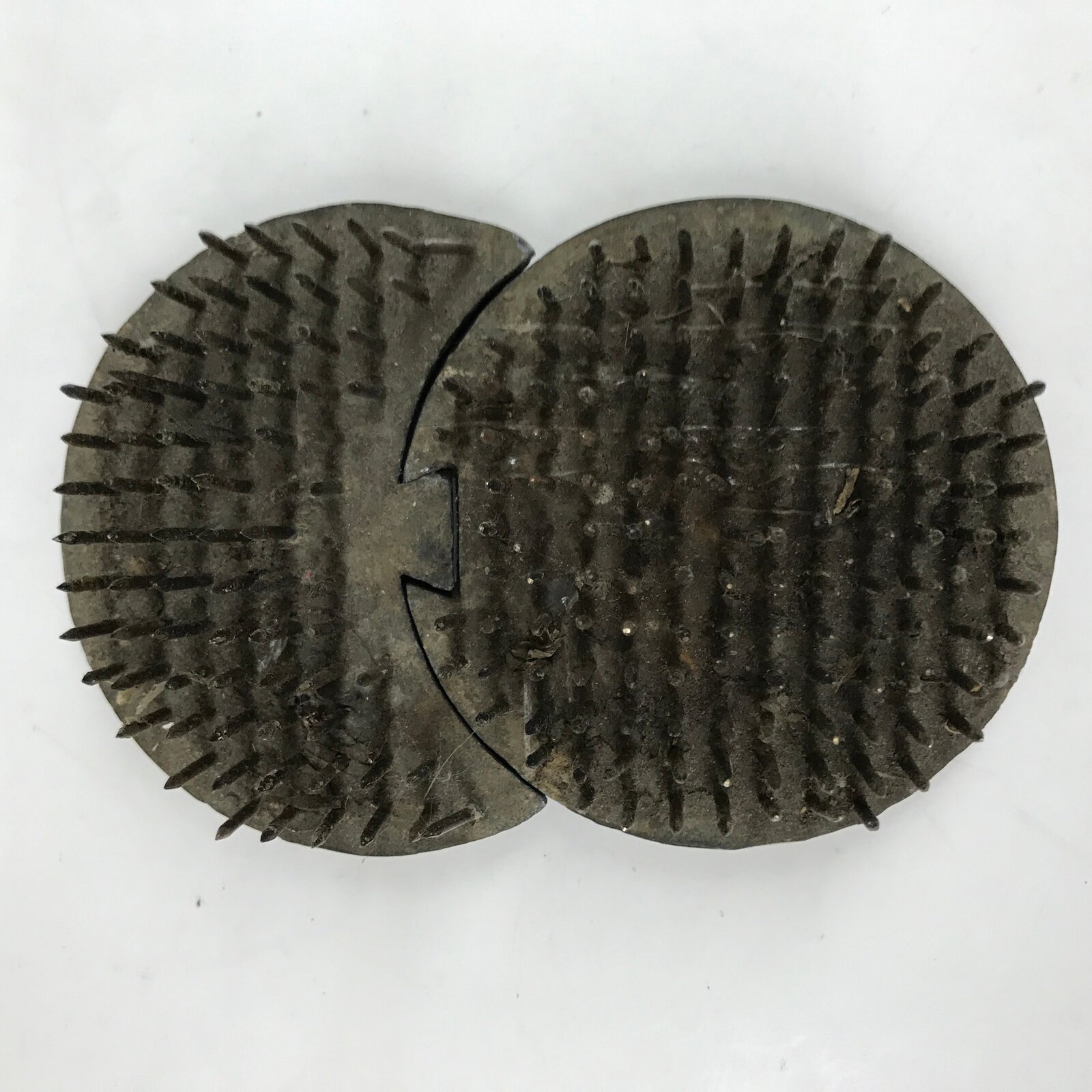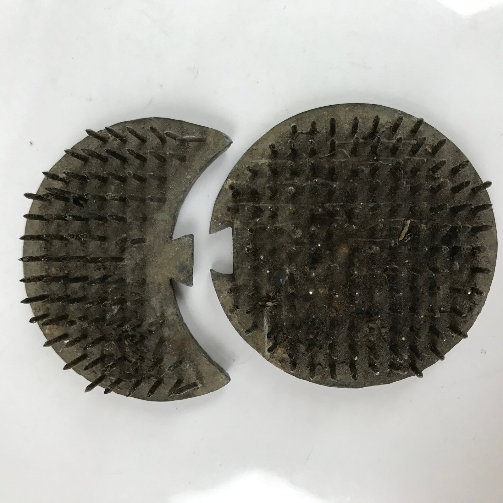 - Good condition considering age. Some staining from use. Some of needles are leaning.Small crack on the round one. Wear and tear due to age. Please see the photos.