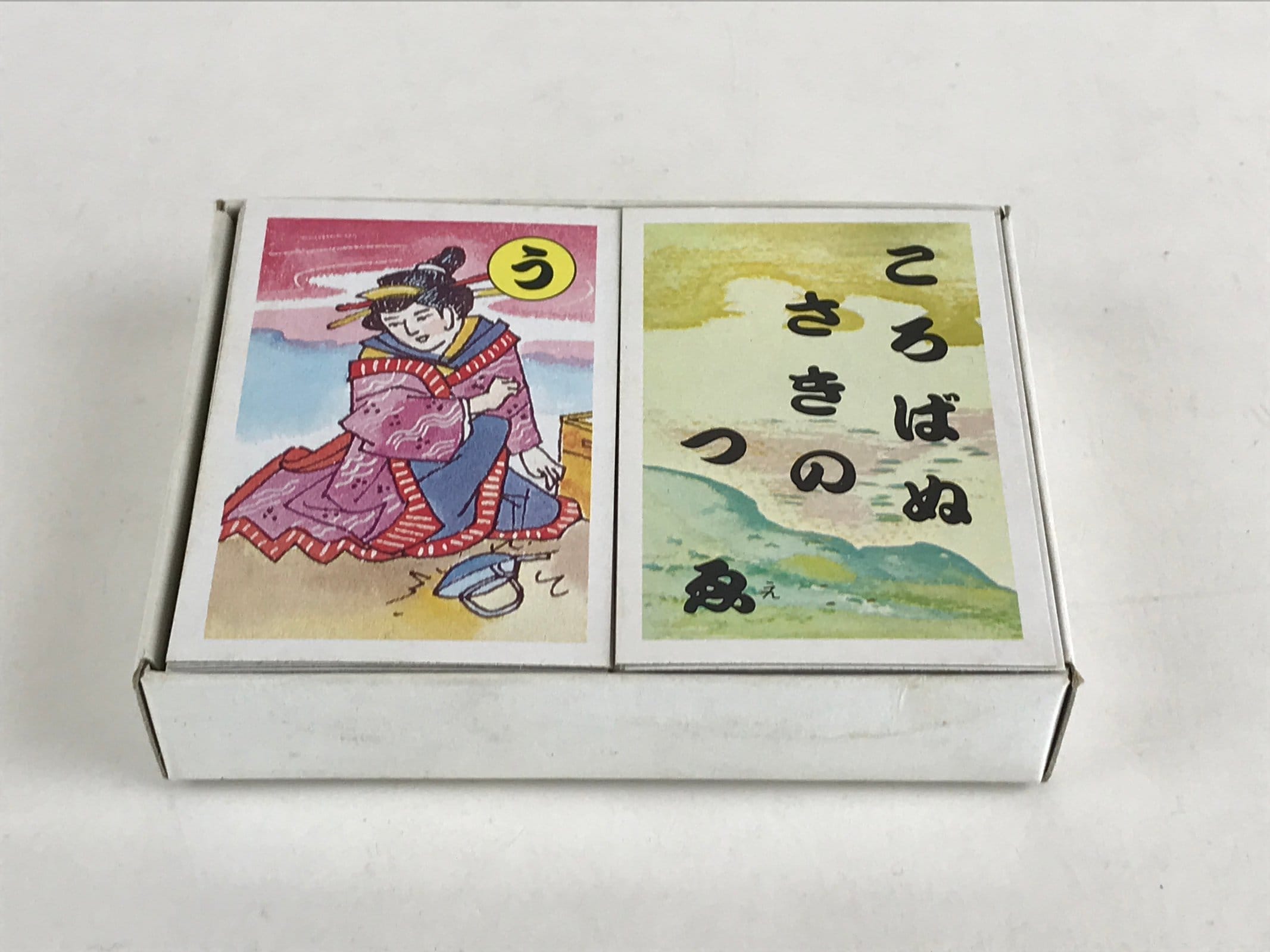 This is a vintage Japanese card game Iroha Karuta. Karuta is a classic Japanese card game that is simple and can be played with many people. Many Japanese proverbs are used in the reading cards. Comes with a paper explaining the meaning of the proverb.