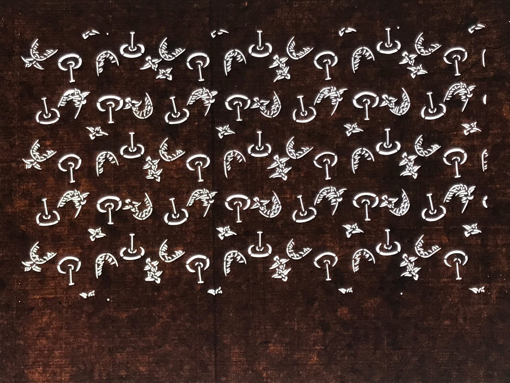 Japanese Katagami is a stencil pattern for dyeing textiles used for printing designs and patterns on kimono and other fabric items.