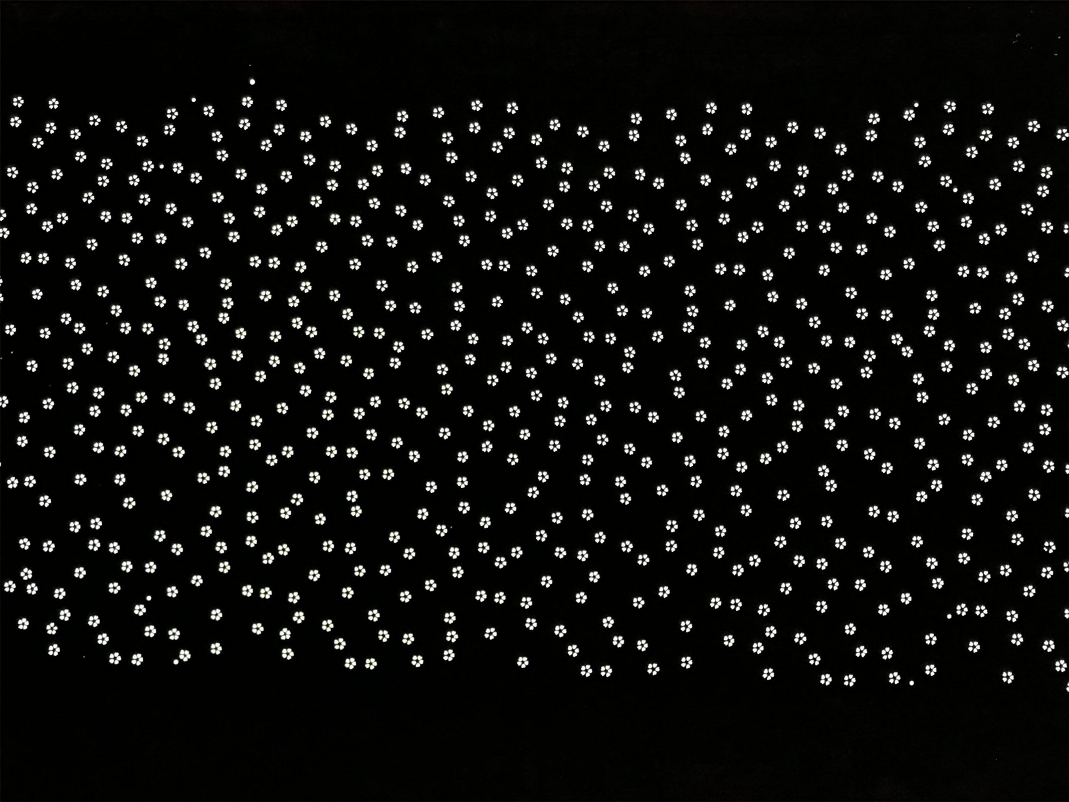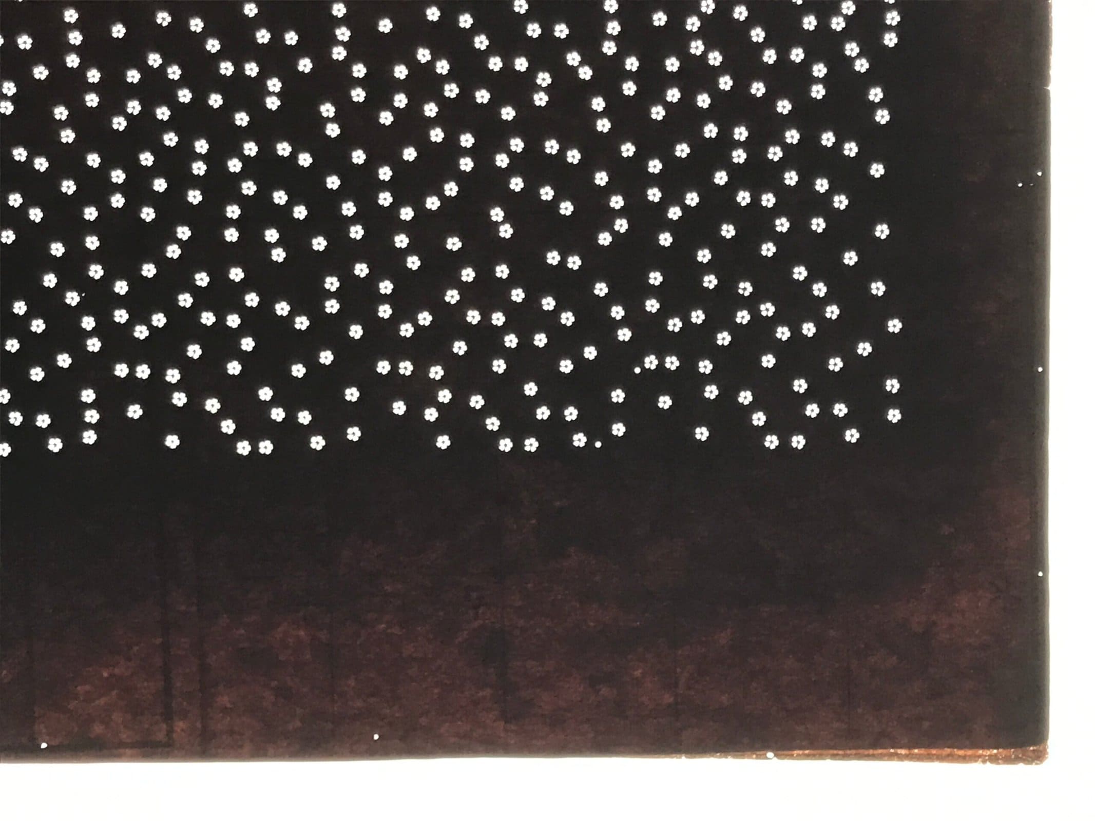 Using traditional mulberry washi paper, this Ise katagami stencil features subtle, tiny cherry blossoms.