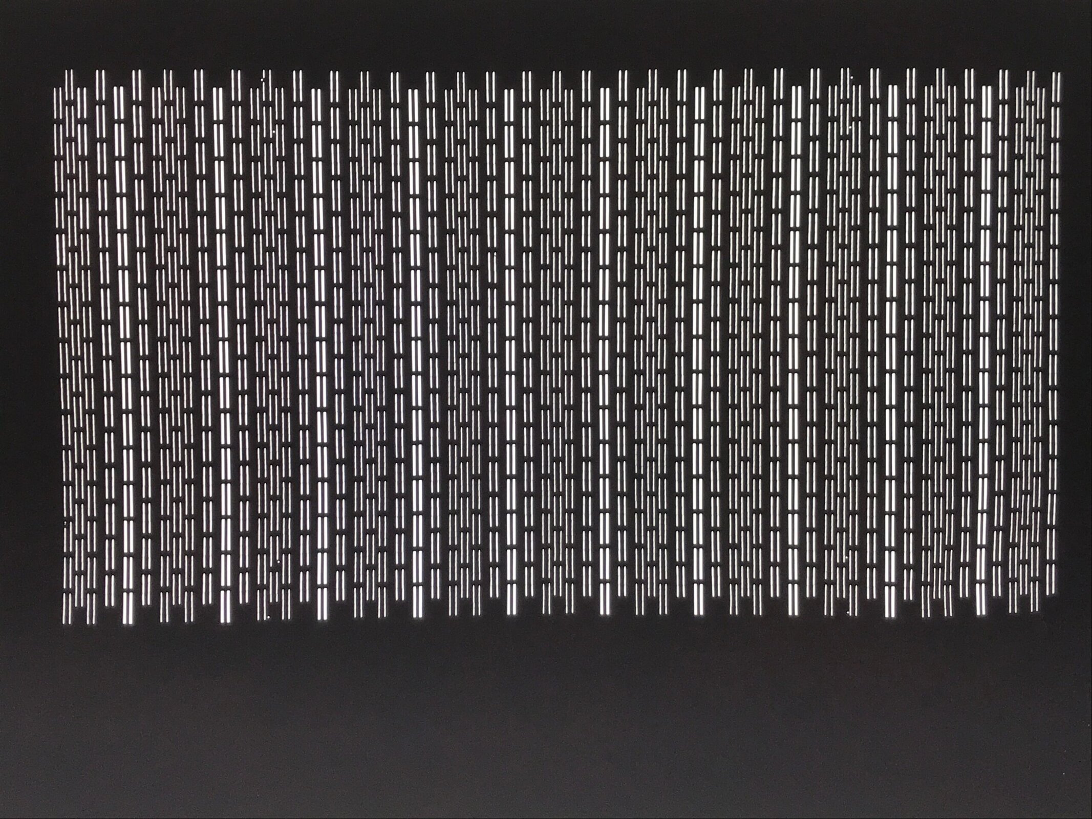 Using traditional mulberry washi paper, this Ise katagami stencil features a simple, yet varied and visually interesting vertical line design.