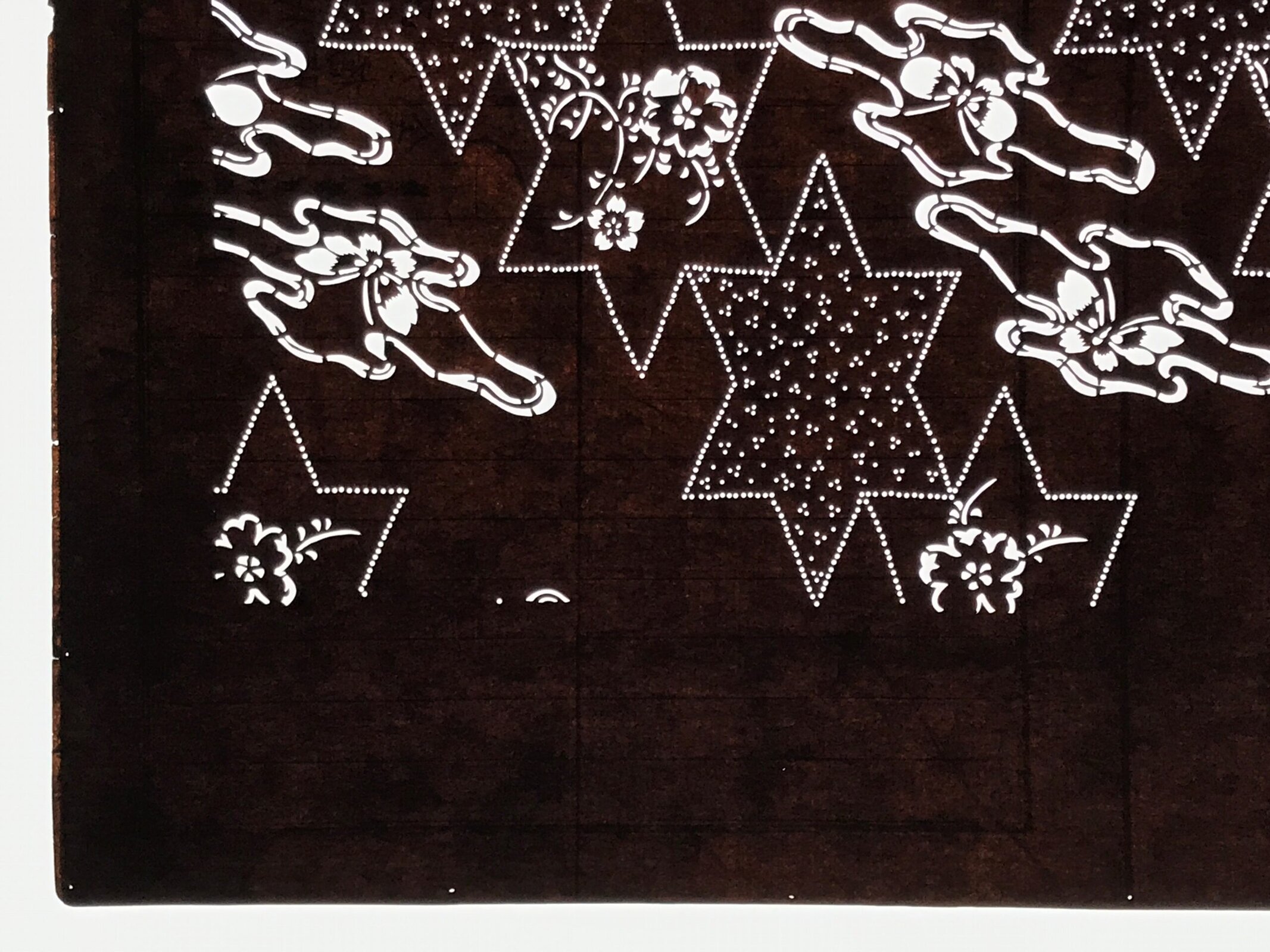 Japanese Katagami is a stencil pattern for dyeing textiles used for printing designs and patterns on kimono and other fabric items.
