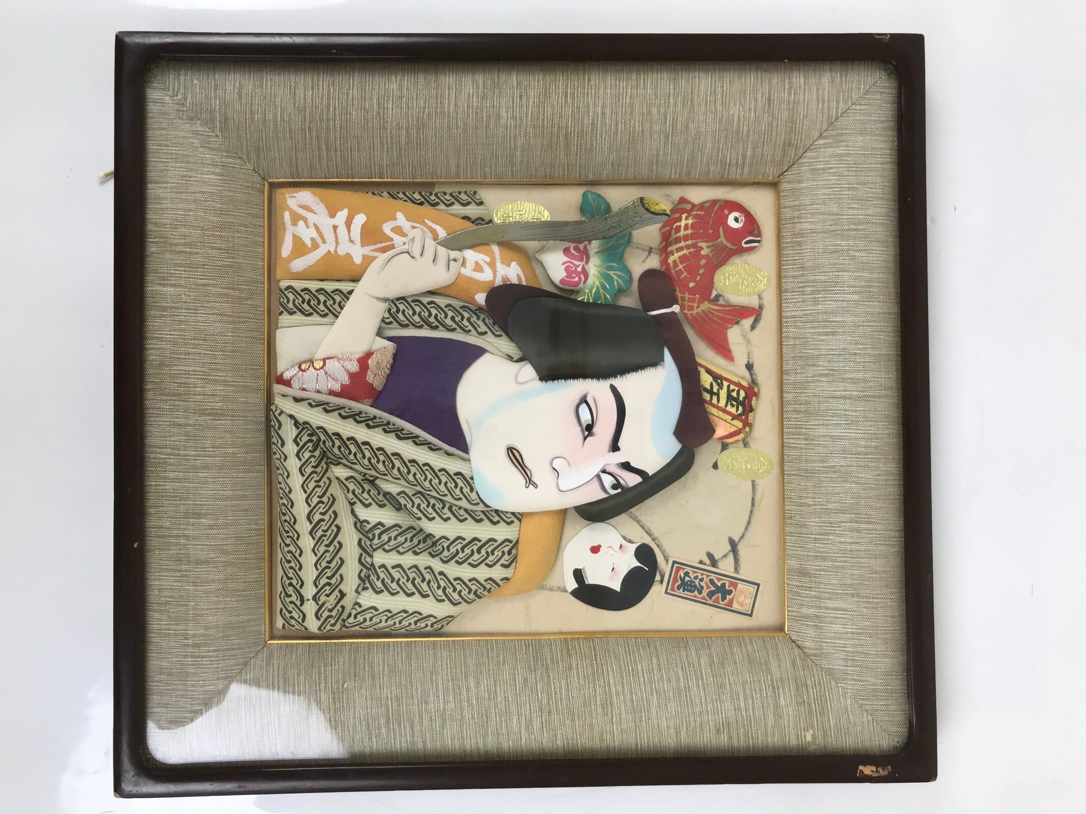 January 24, 2026Japanese 3D Kabuki Performer Shikishi Fabric Art Vtg Wood Frame Oshie Zaiku FR32