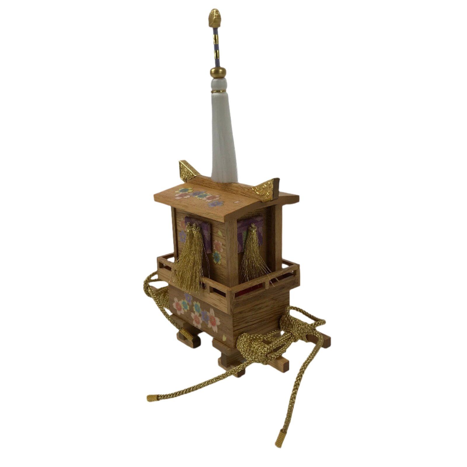 This wooden o-kago, or litter for carrying people, embellished with colorful sakura cherry blossoms on the front and on the top, is the perfect addition to any existing hina set. The item comes with a synthetic fabric bag for storage.