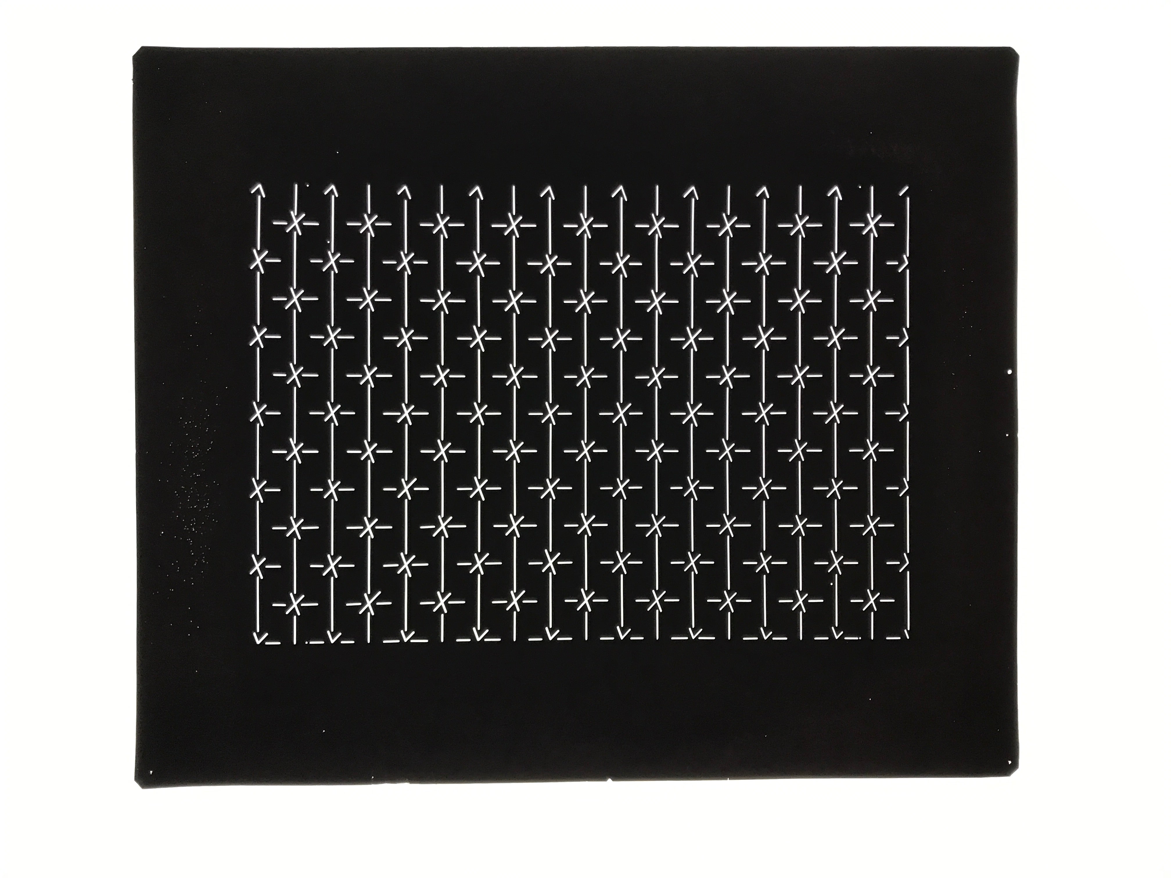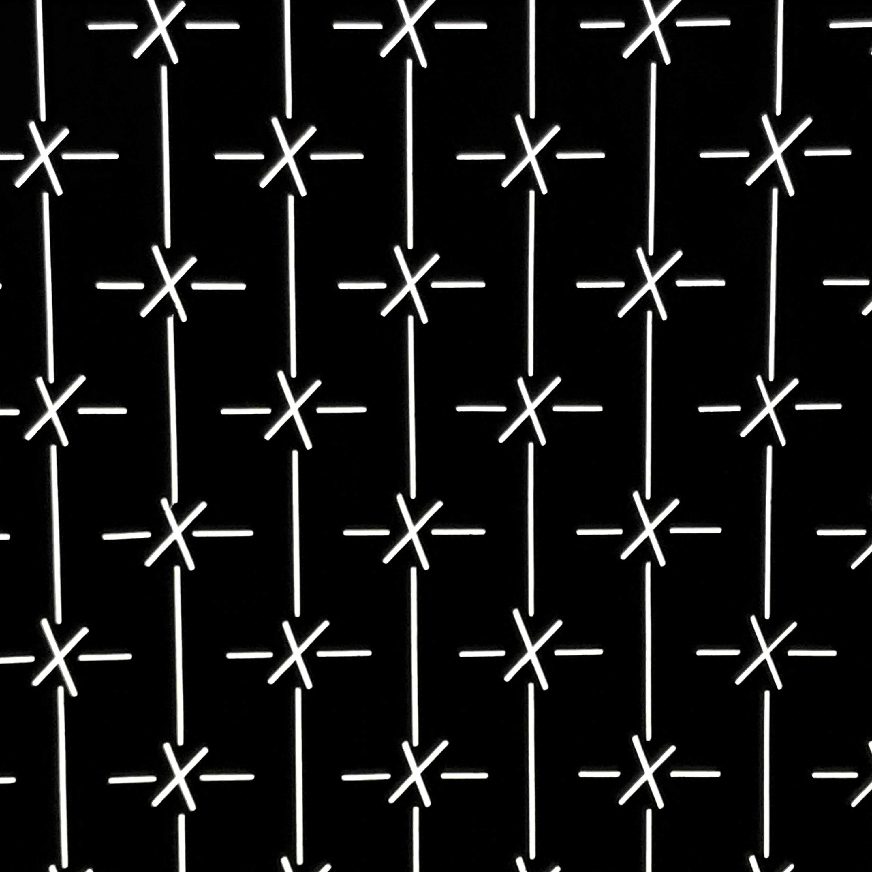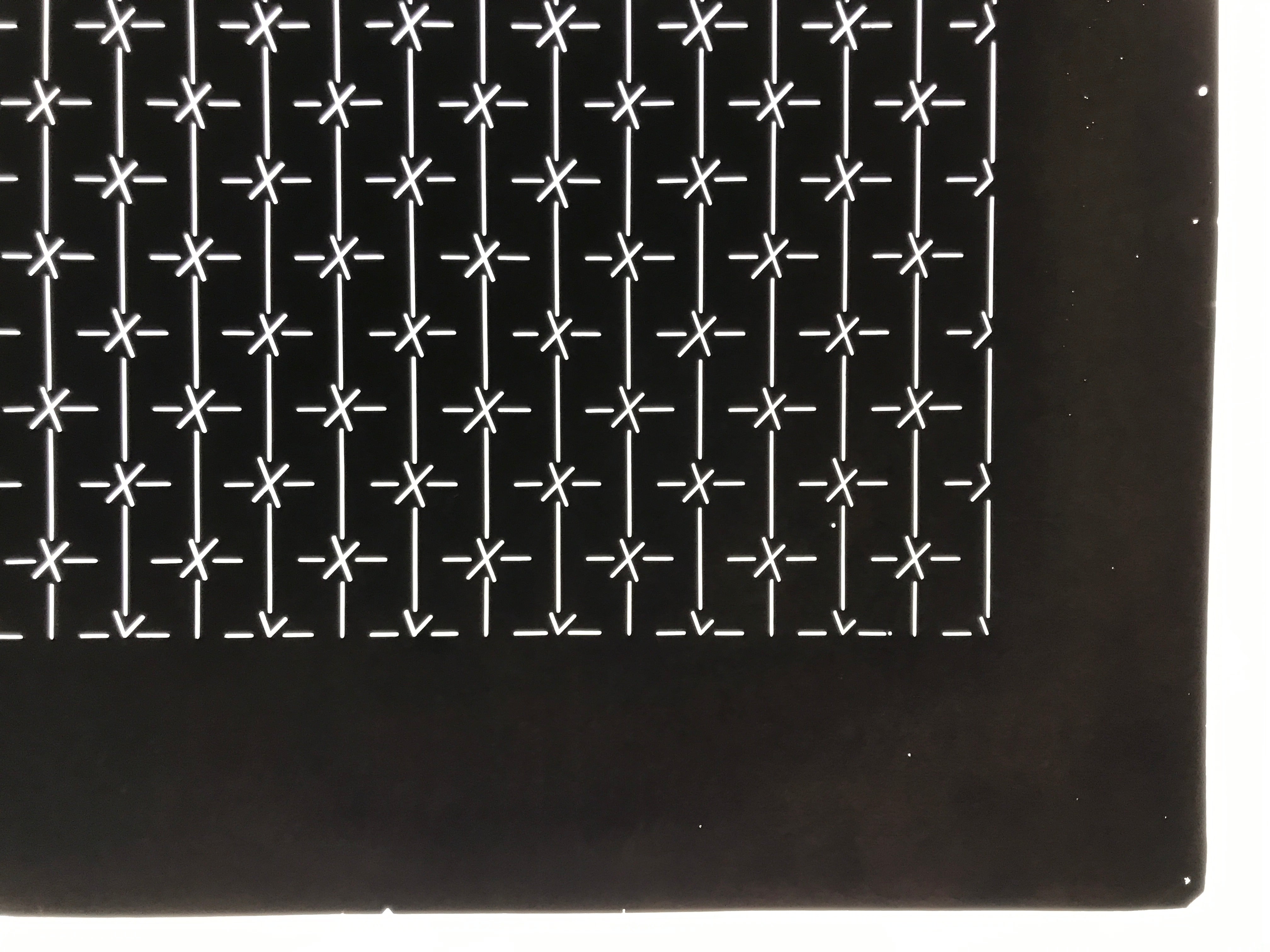 Using traditional mulberry paper, this katagami stencil with no silk mesh backing features criss-cross or grid-like pattern with small pluses between.