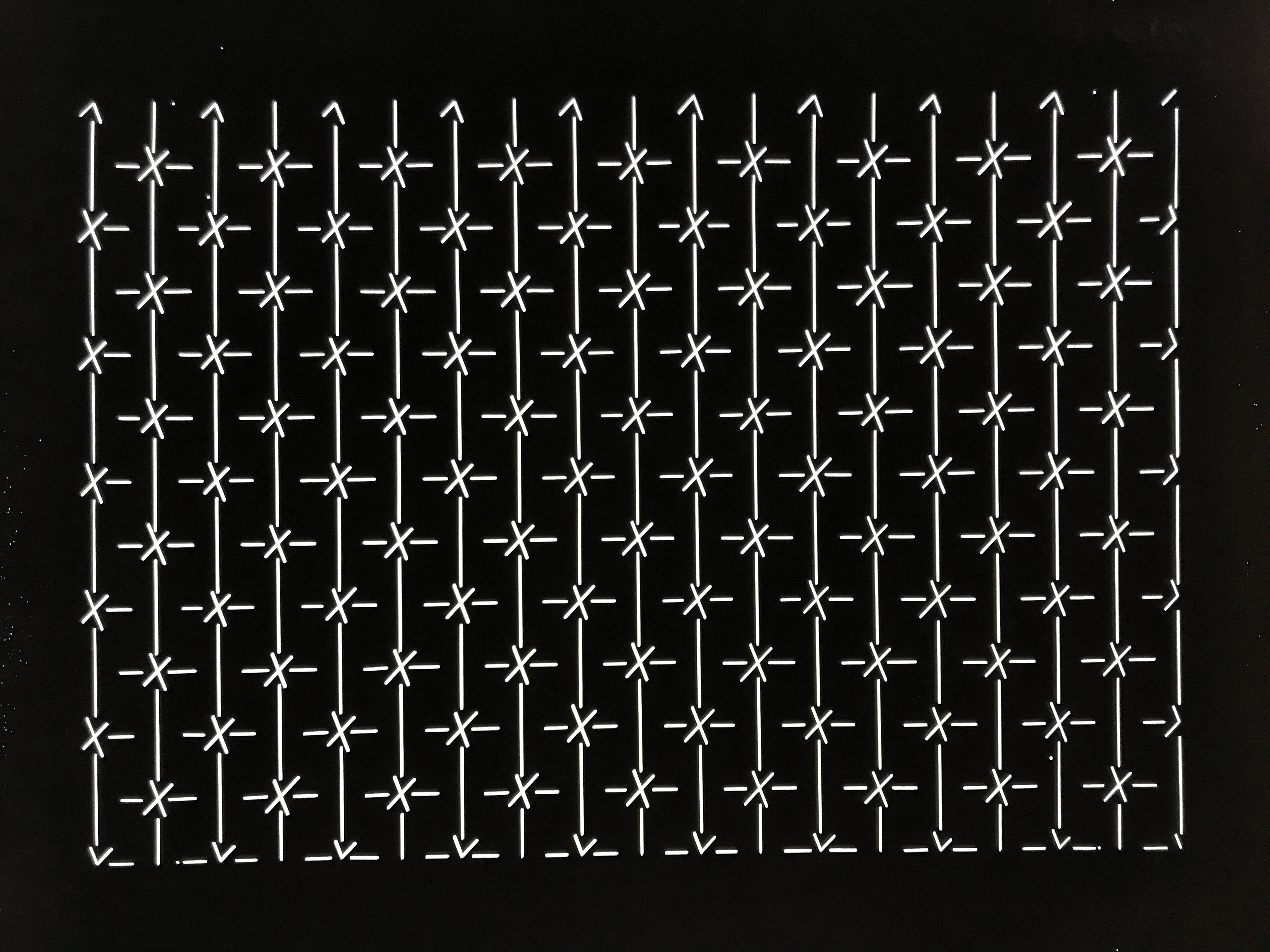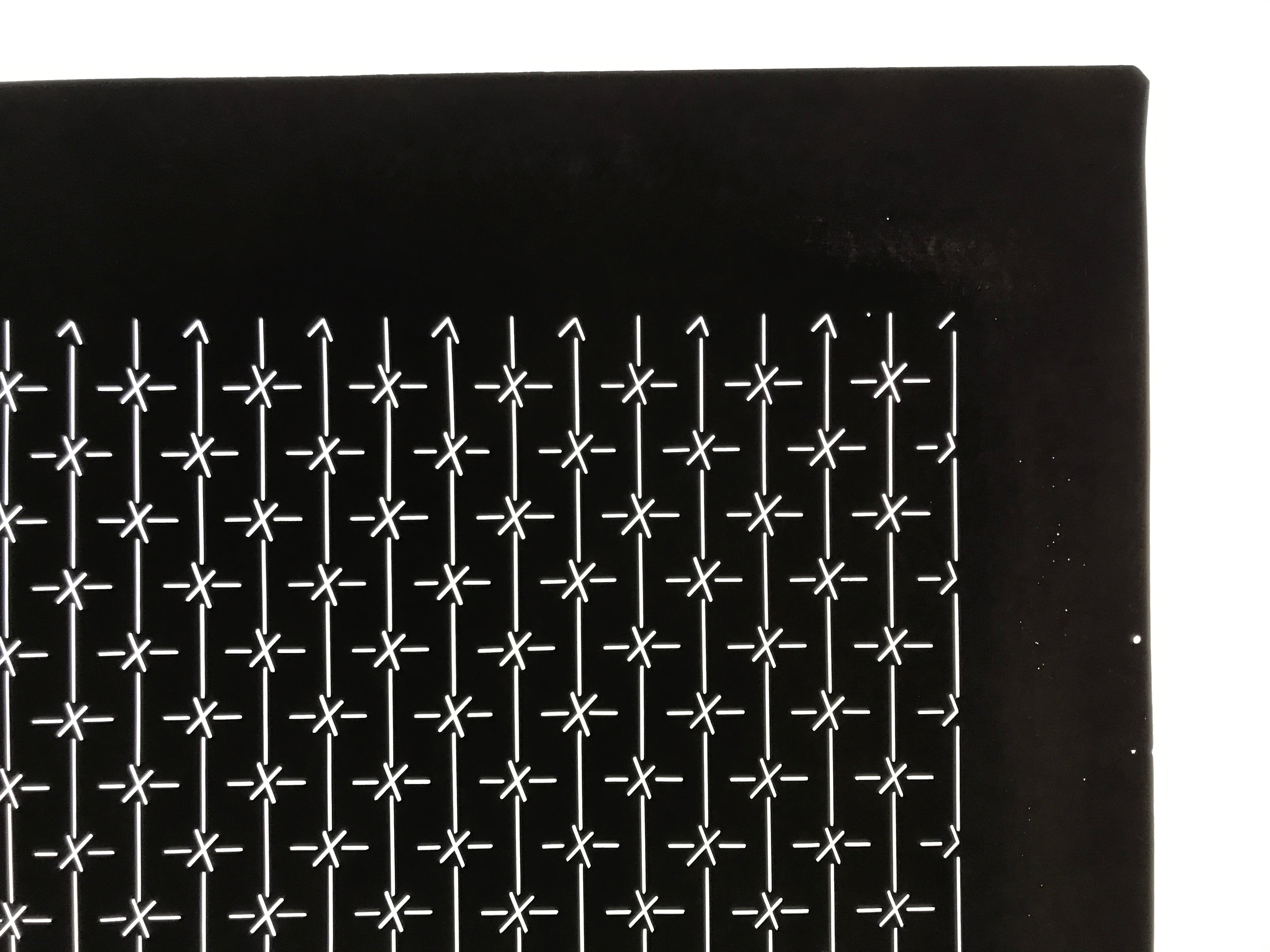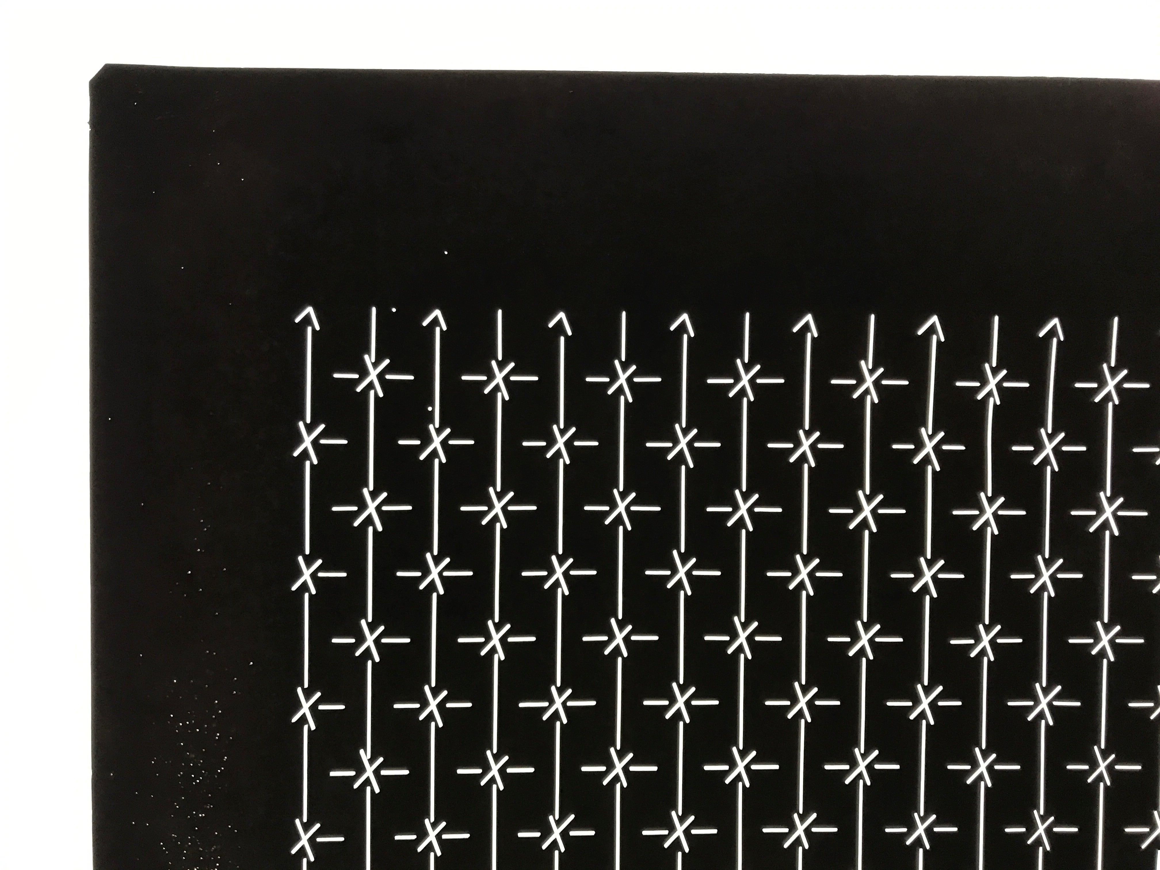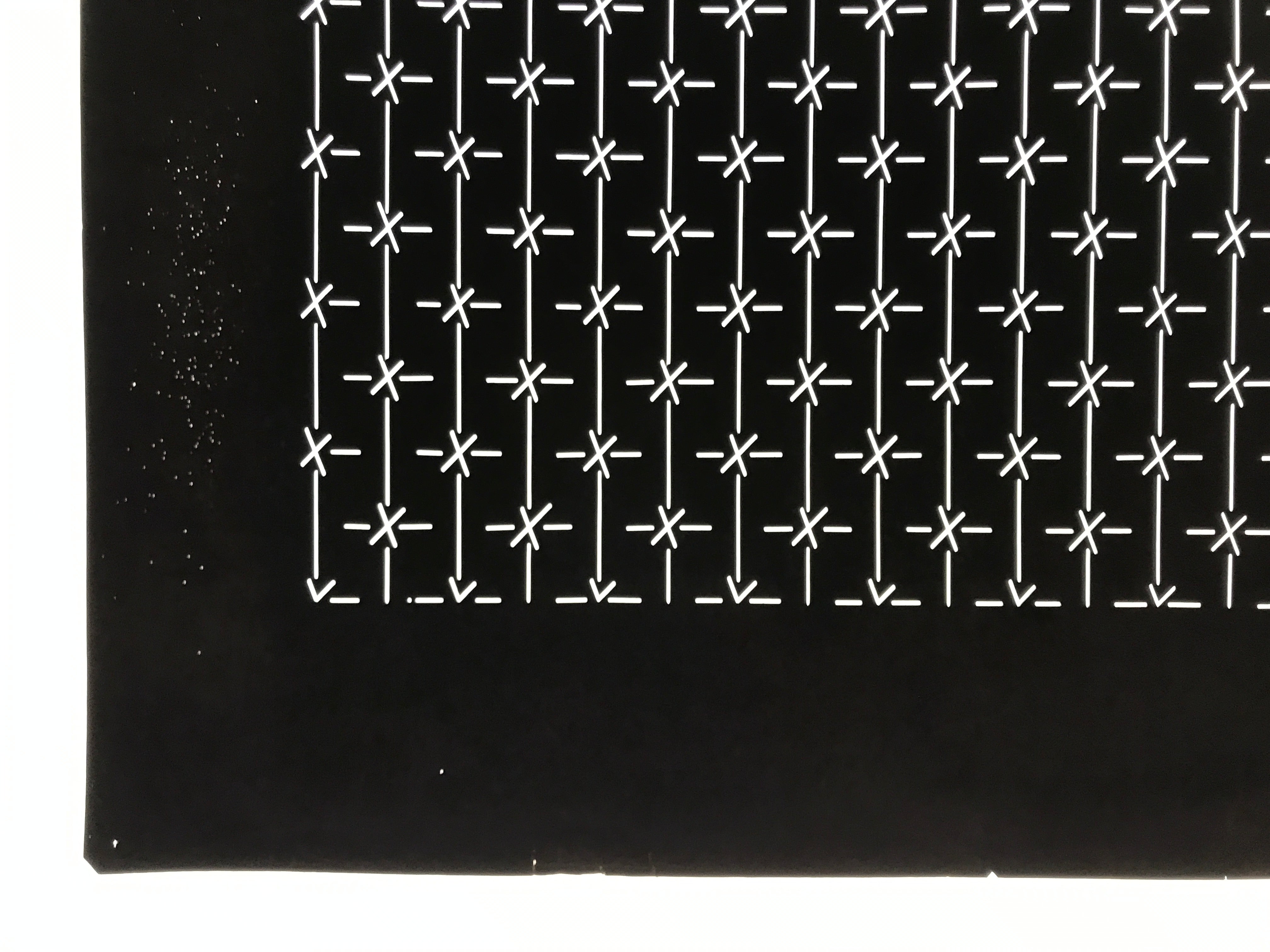 Using traditional mulberry paper, this katagami stencil with no silk mesh backing features criss-cross or grid-like pattern with small pluses between.