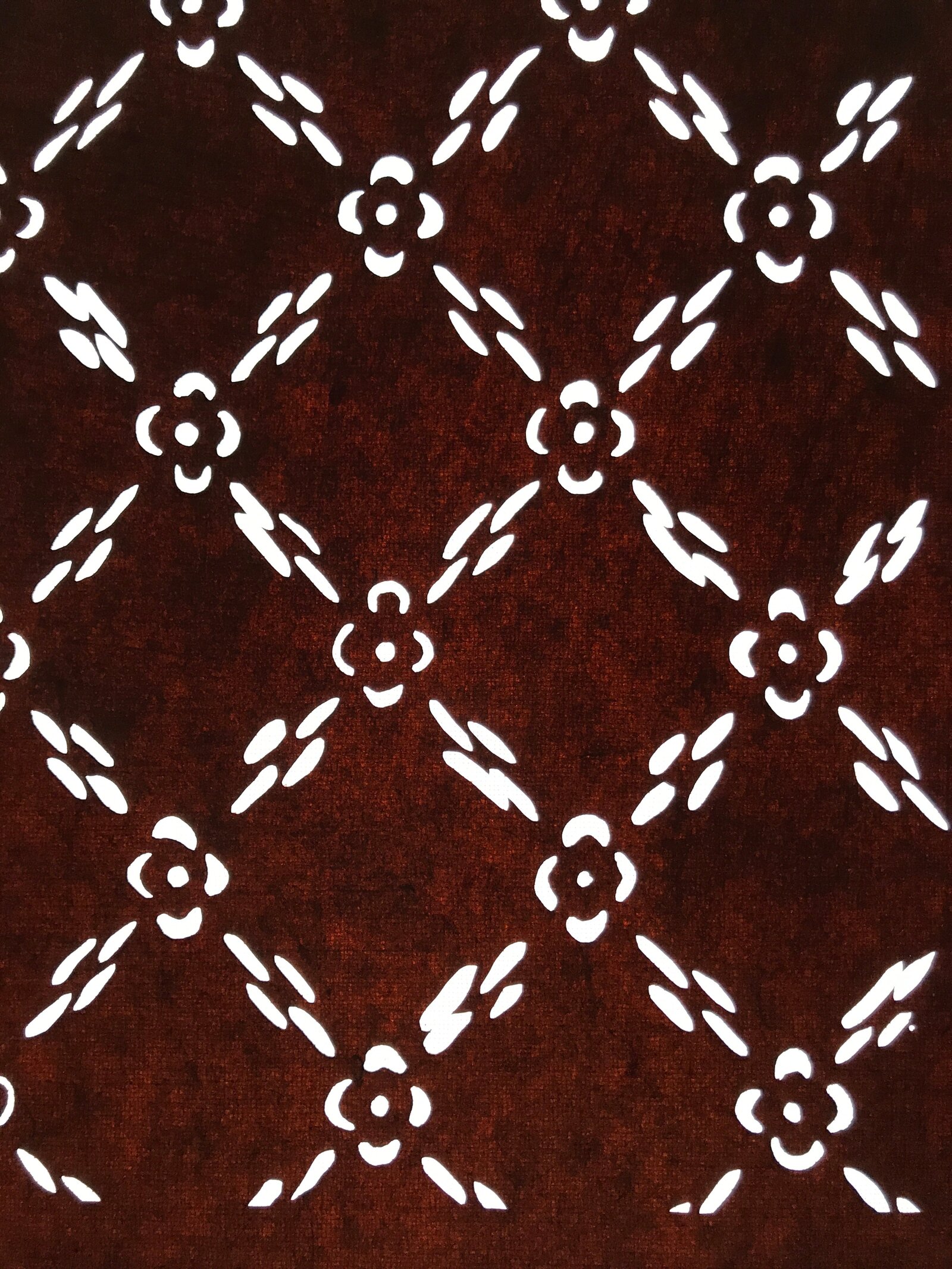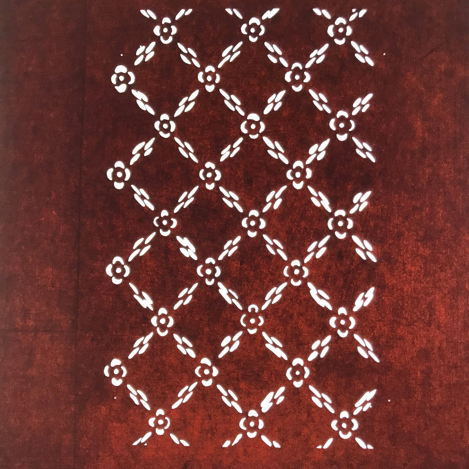 Using traditional mulberry paper, this katagami stencil with silk mesh backing features a diamond-shaped floral chain pattern.
