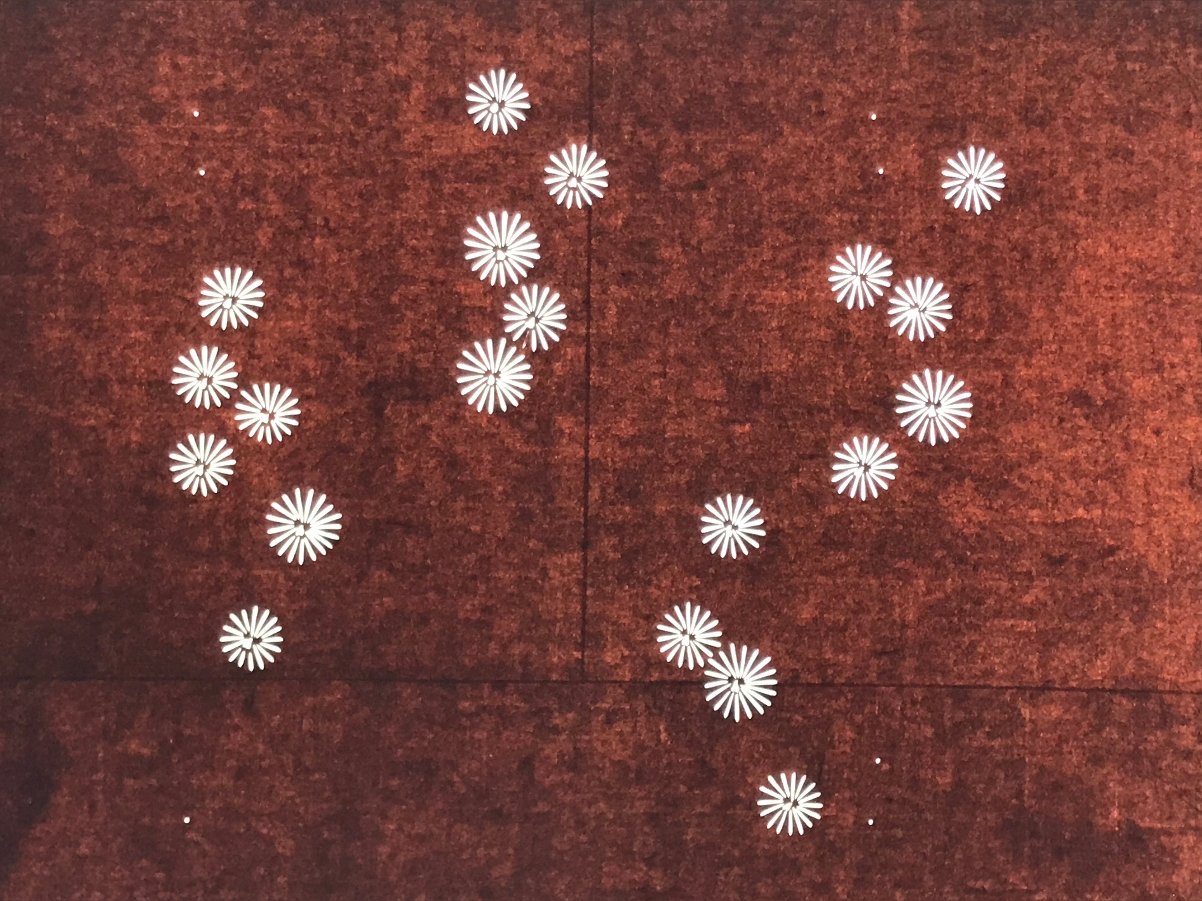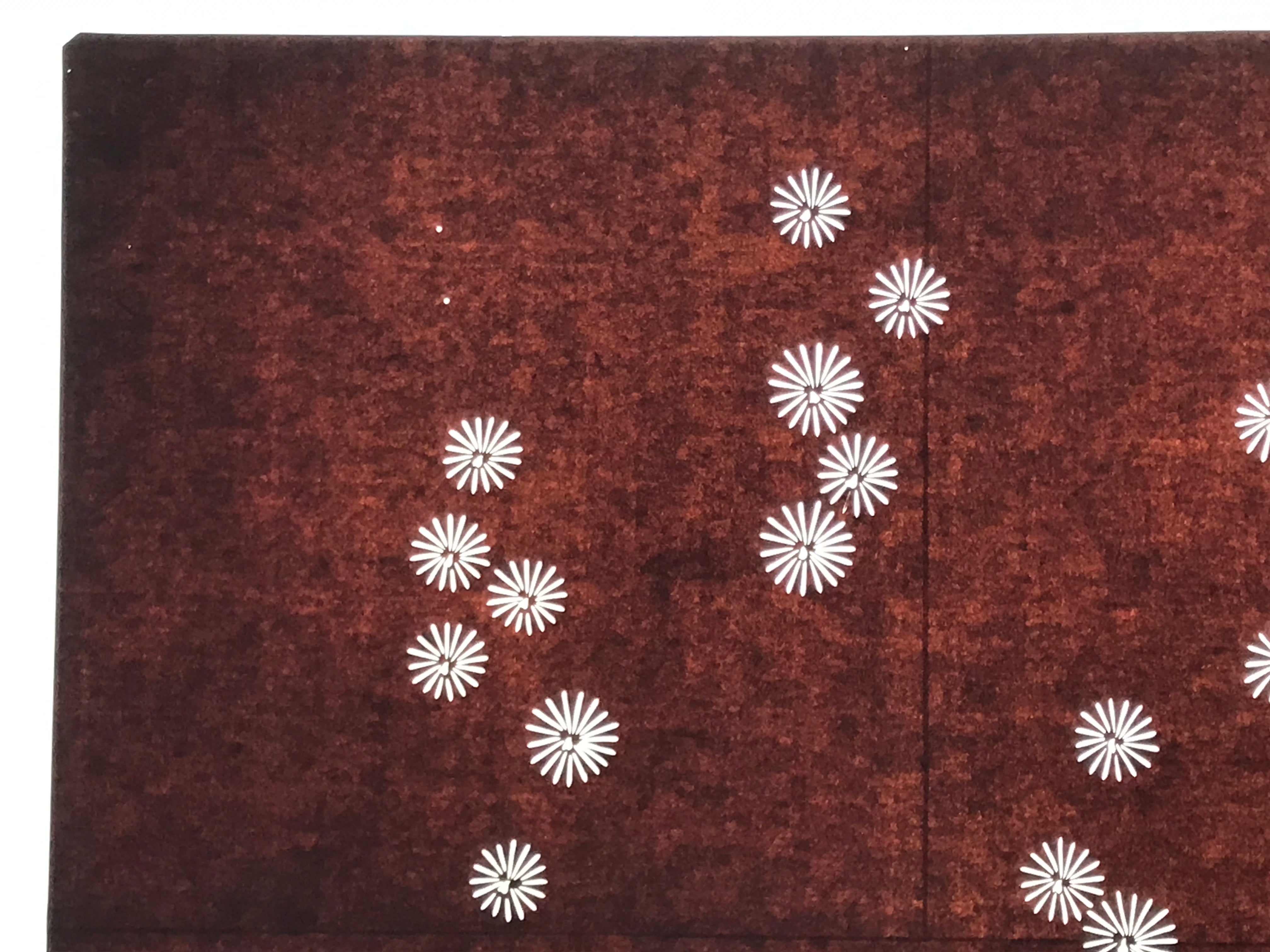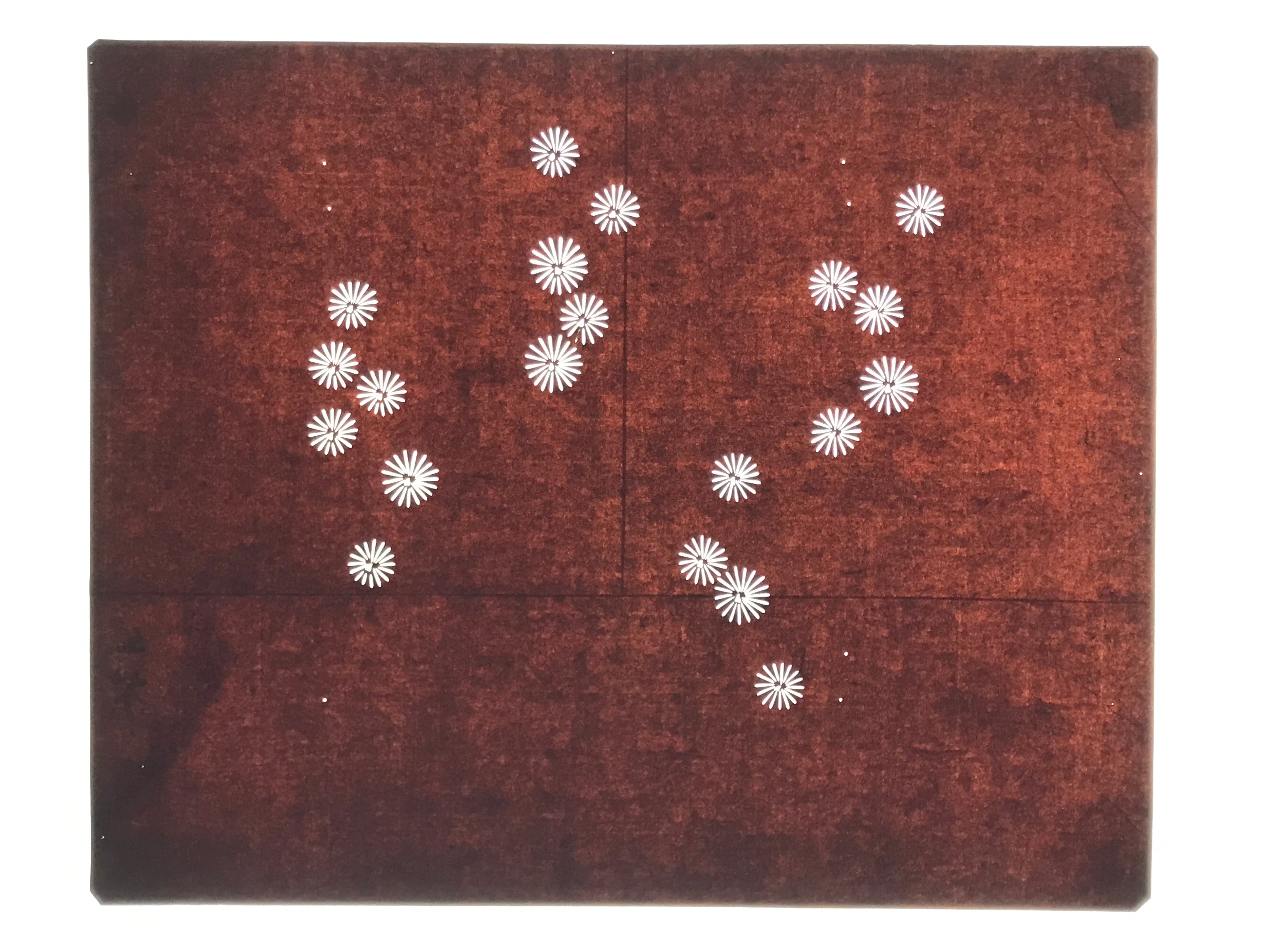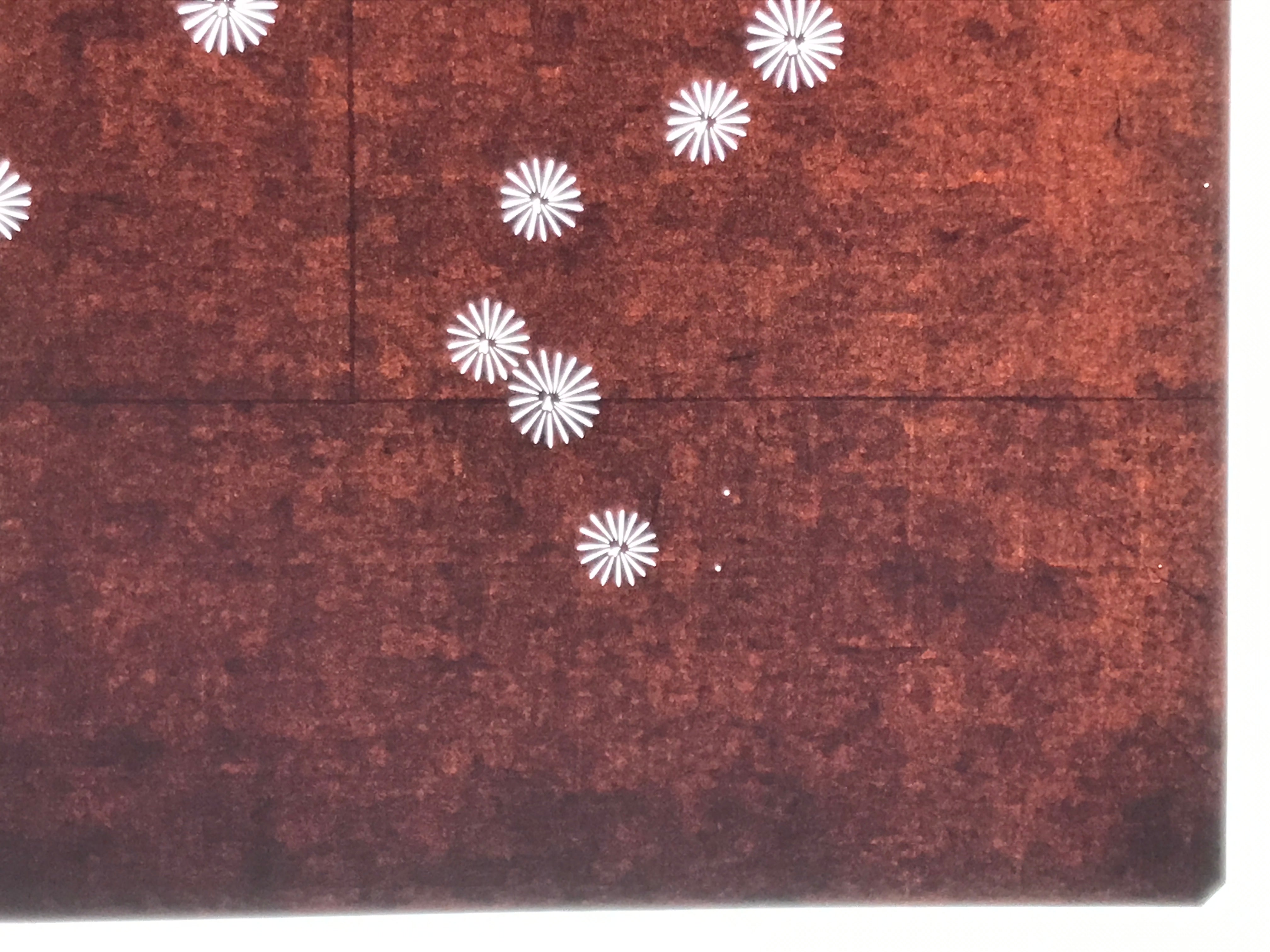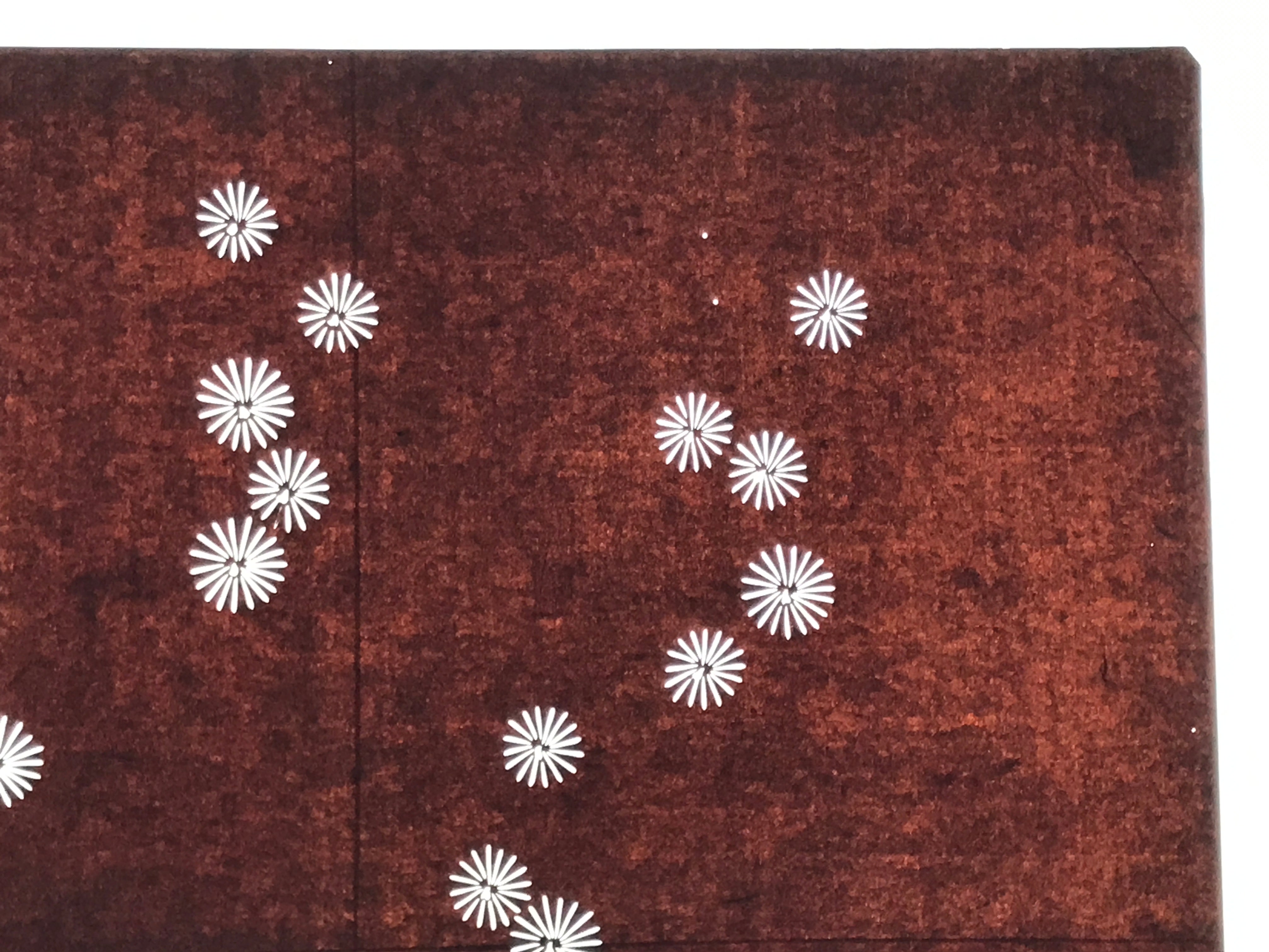 Using traditional mulberry paper, this katagami stencil with no silk mesh backing features clusters of small, simple flowers (likely chrysanthemums).