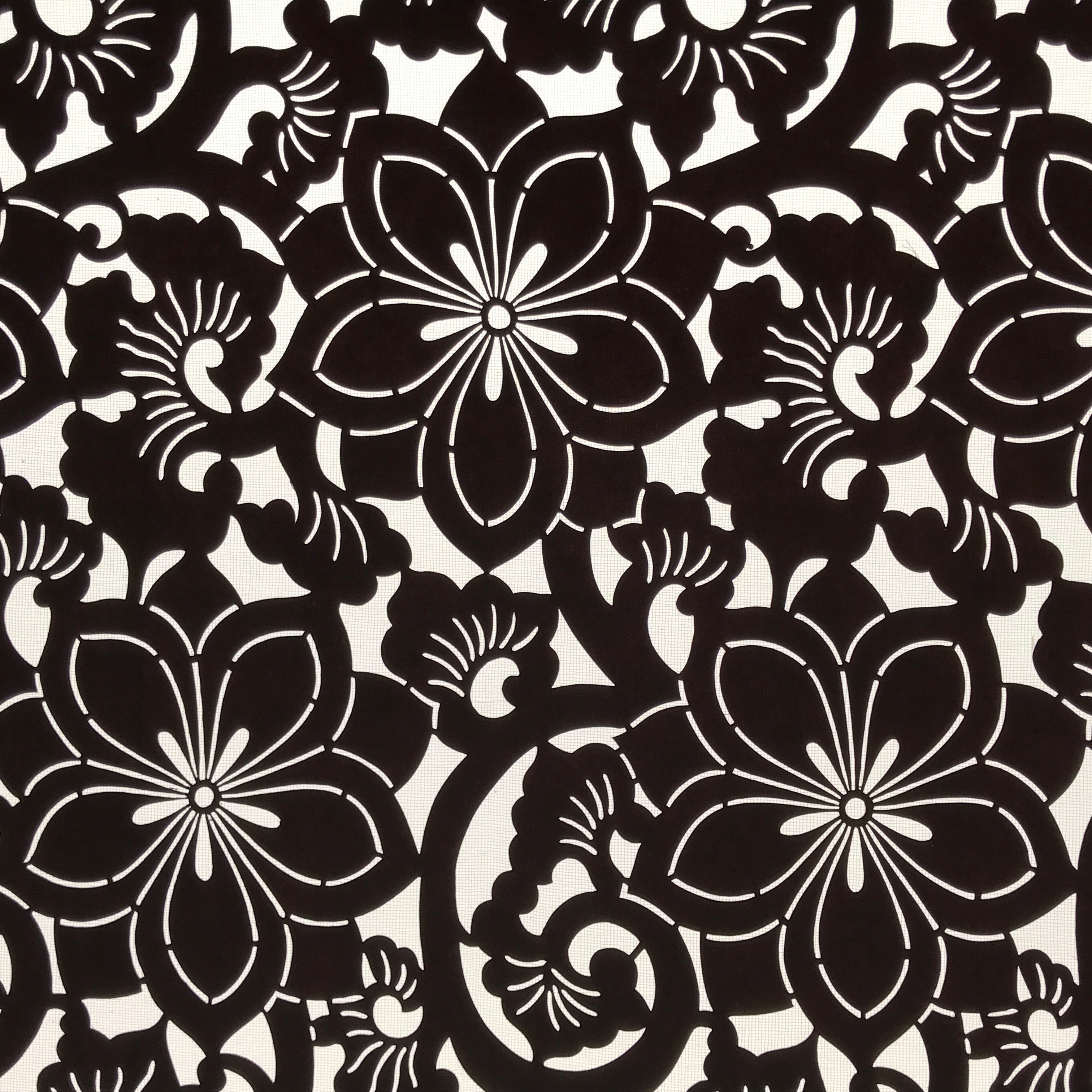 Using traditional mulberry paper, this katagami stencil with silk mesh backing features large flowers among leaves and karakusa vines.