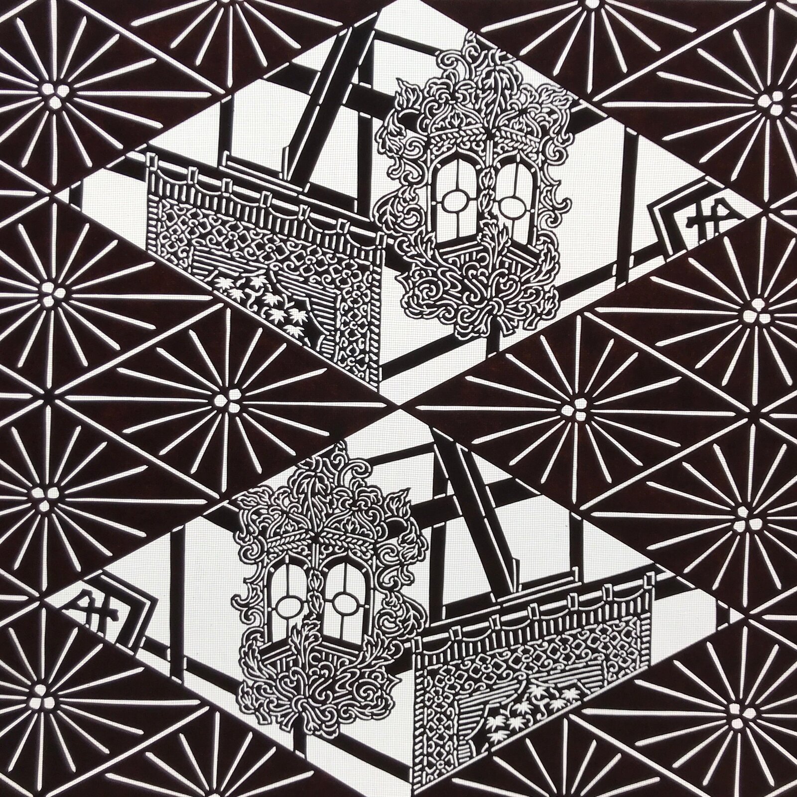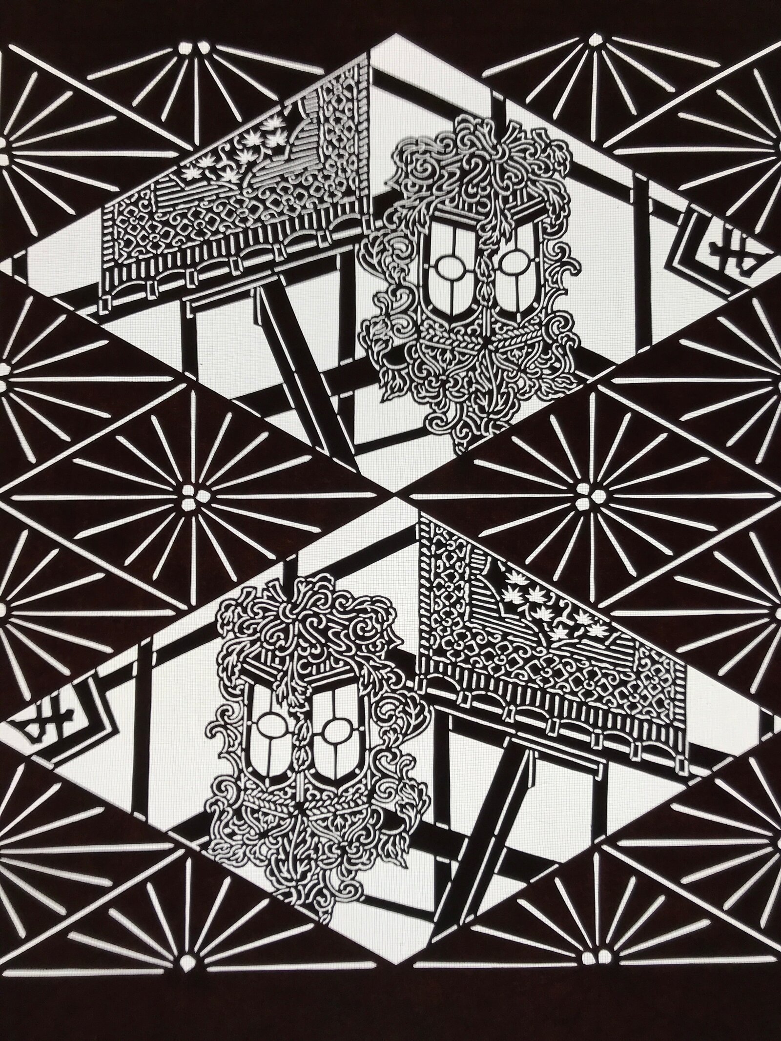 Japanese Katagami is a stencil pattern for dyeing textiles used for printing designs and patterns on kimono and other fabric items.