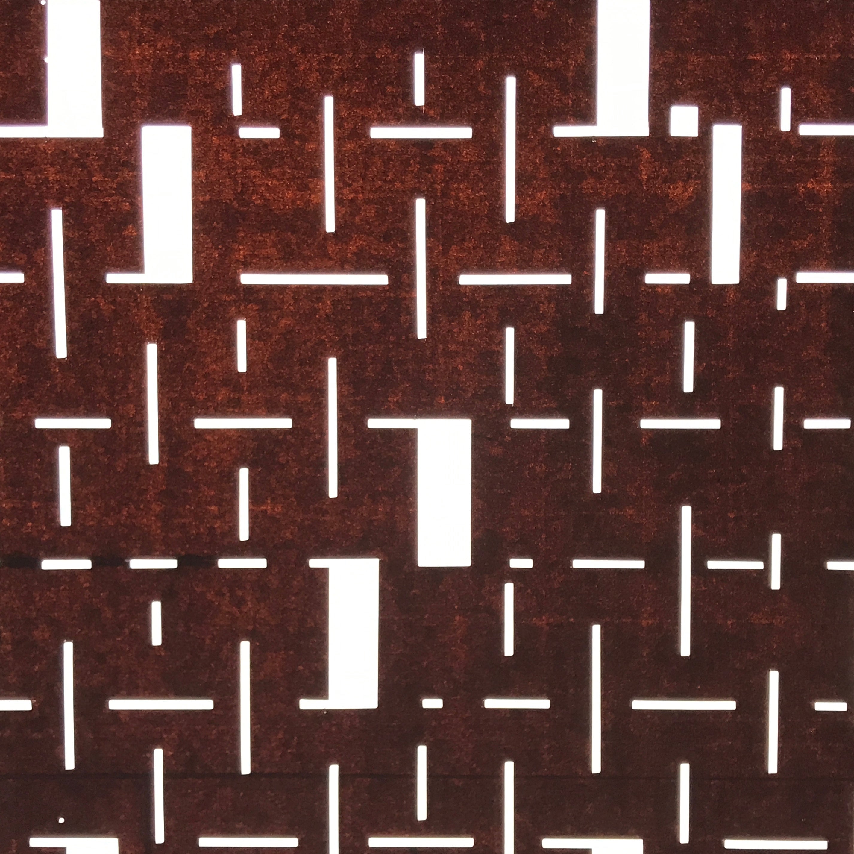 Using traditional mulberry paper, this katagami stencil with no silk mesh backing features an abstract grid made of lines and block shapes.