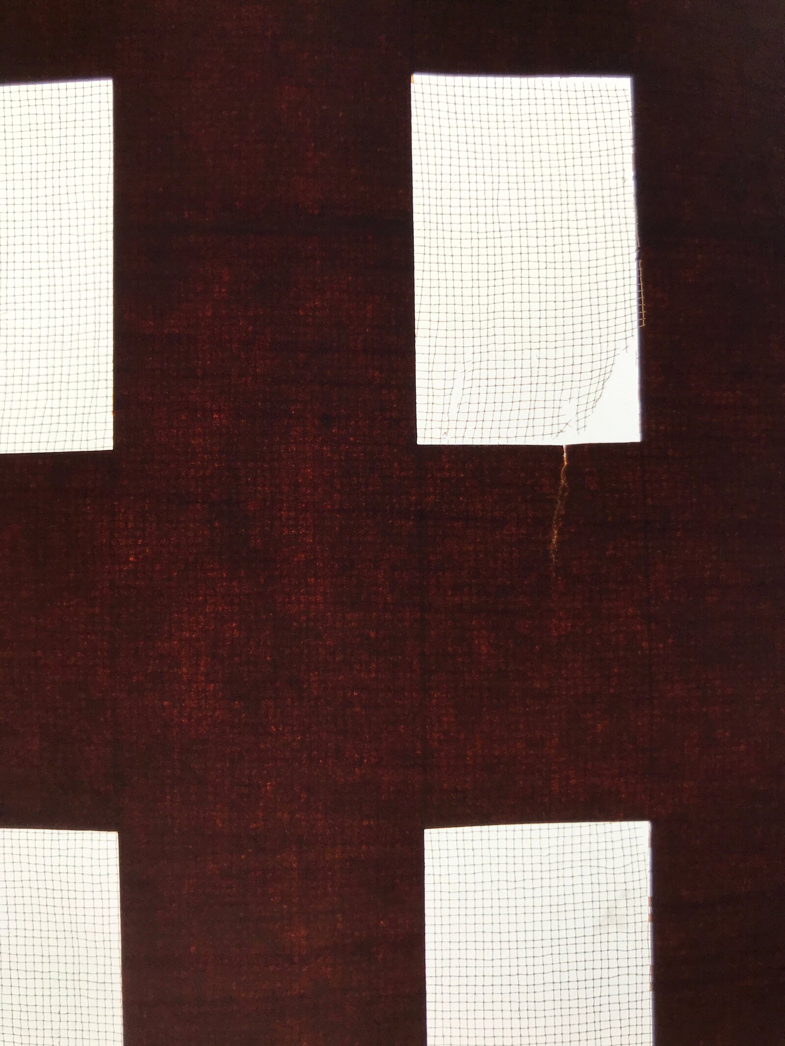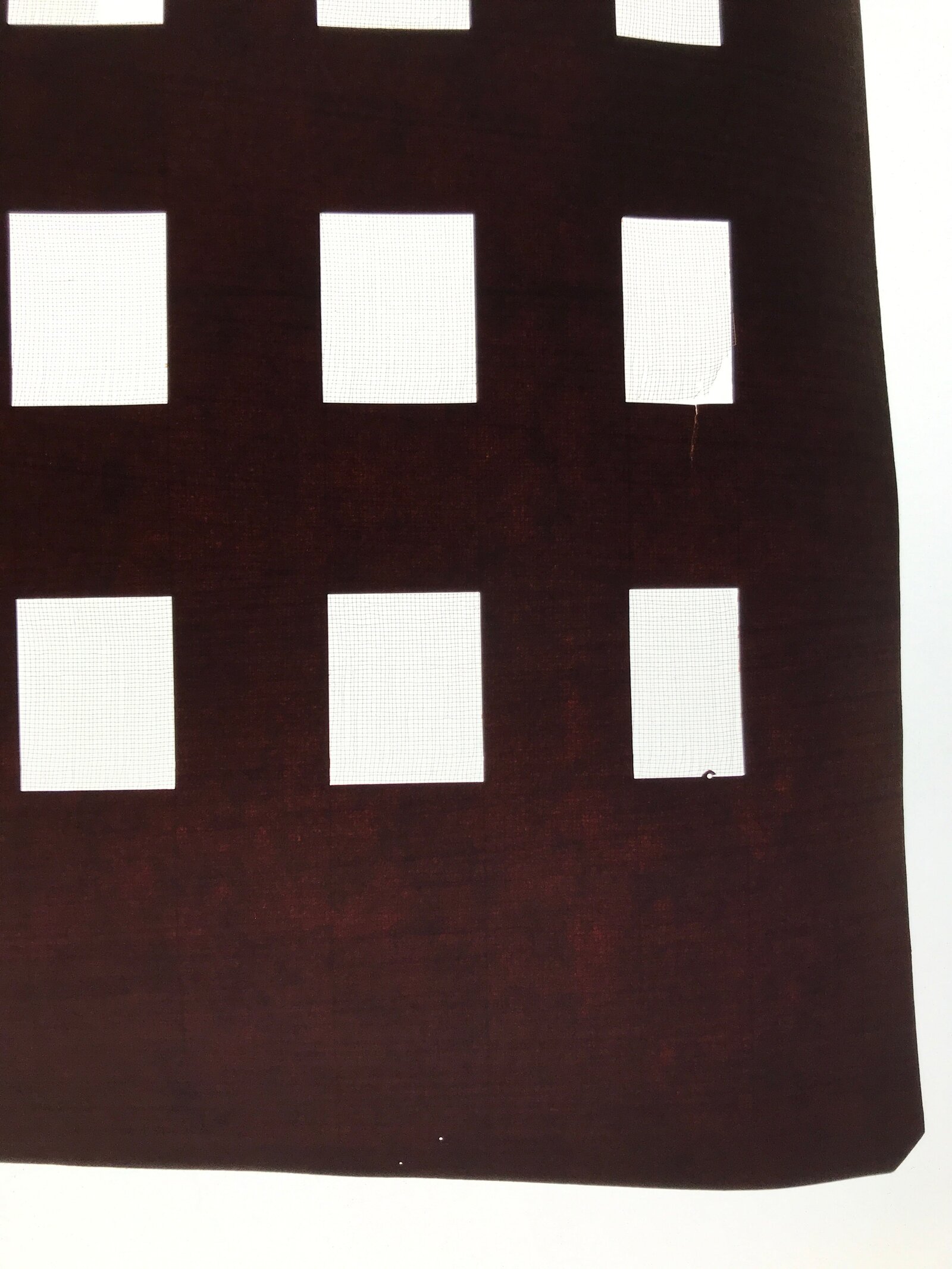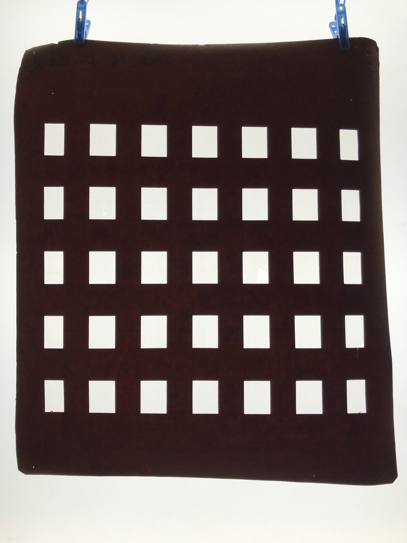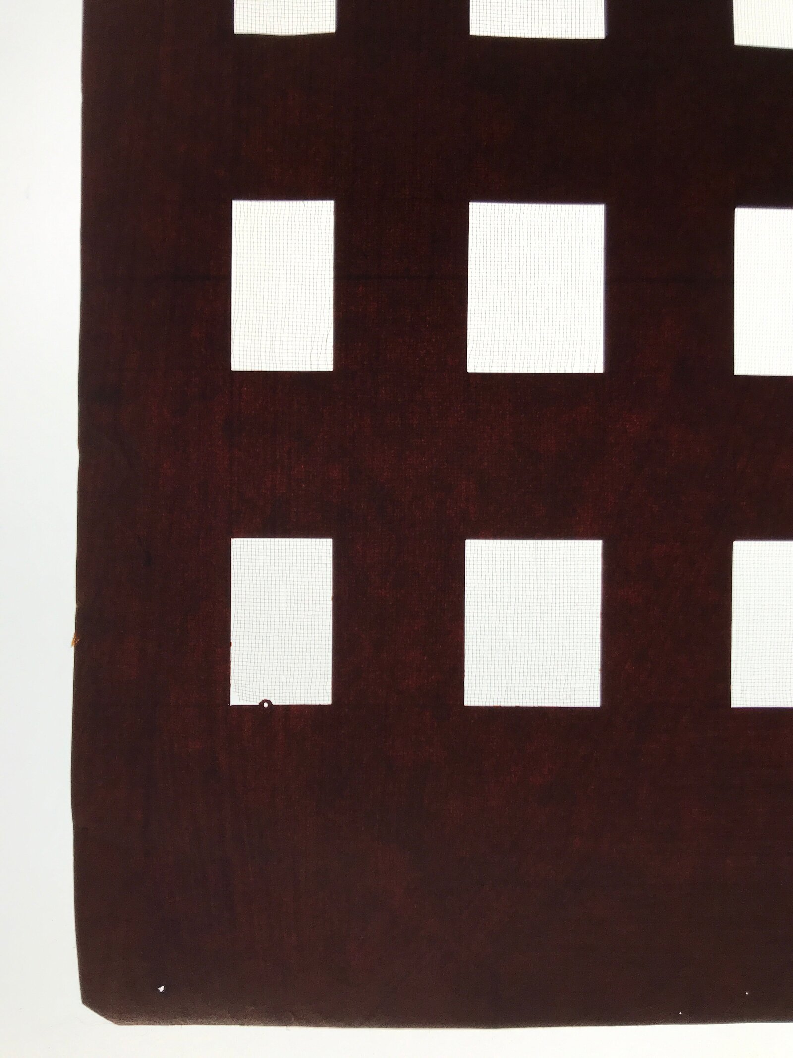 Using traditional mulberry paper, this katagami stencil with silk mesh backing features a simple rectangular block pattern.