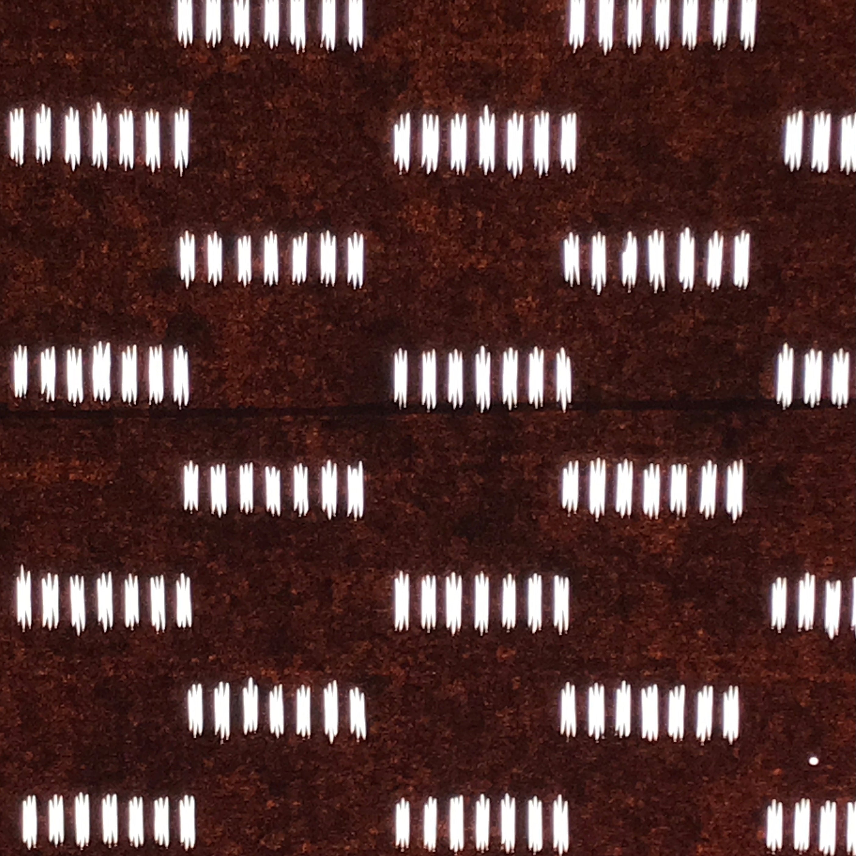 Using traditional mulberry paper, this katagami stencil with no silk mesh backing features horizontal small jagged lines pattern.