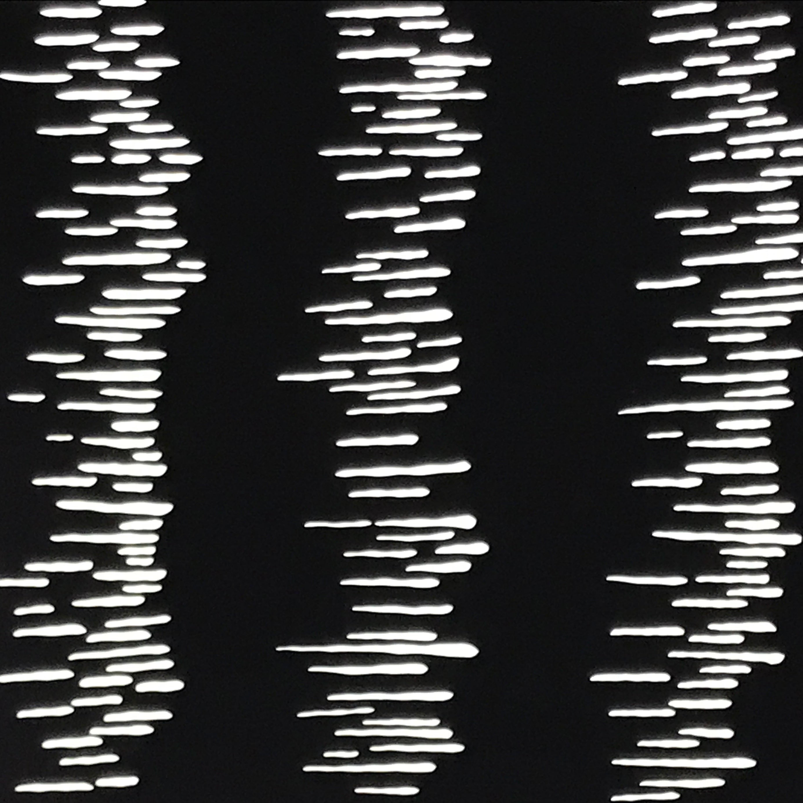 Using traditional mulberry paper, this katagami stencil with no silk mesh backing features vertical lines of more jagged lines.
