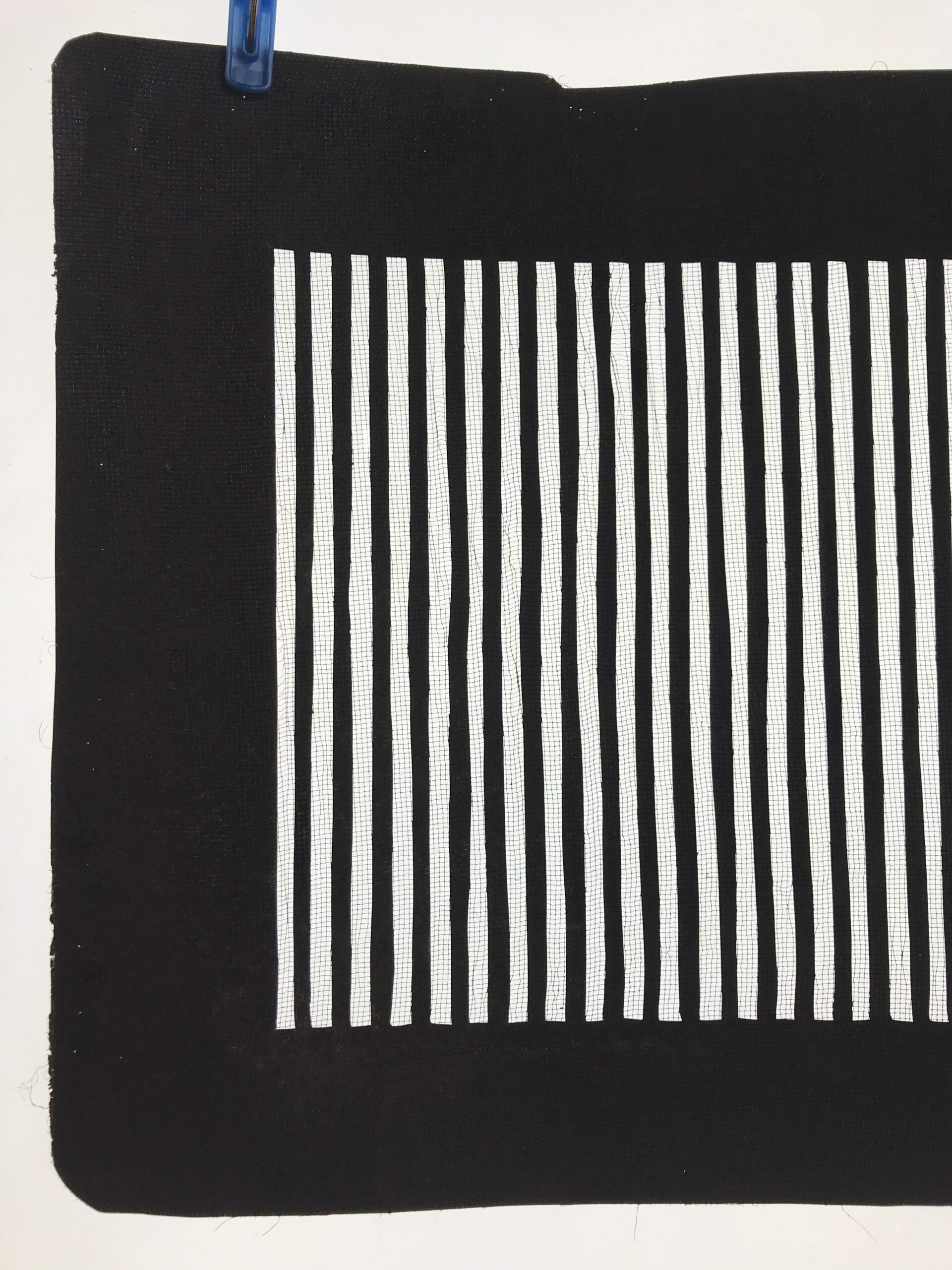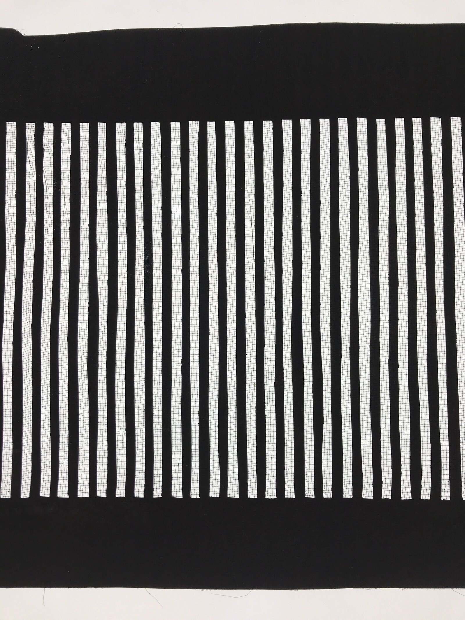 Using traditional mulberry paper, this katagami stencil with a silk backing is decorated with simple vertical stripe lines.