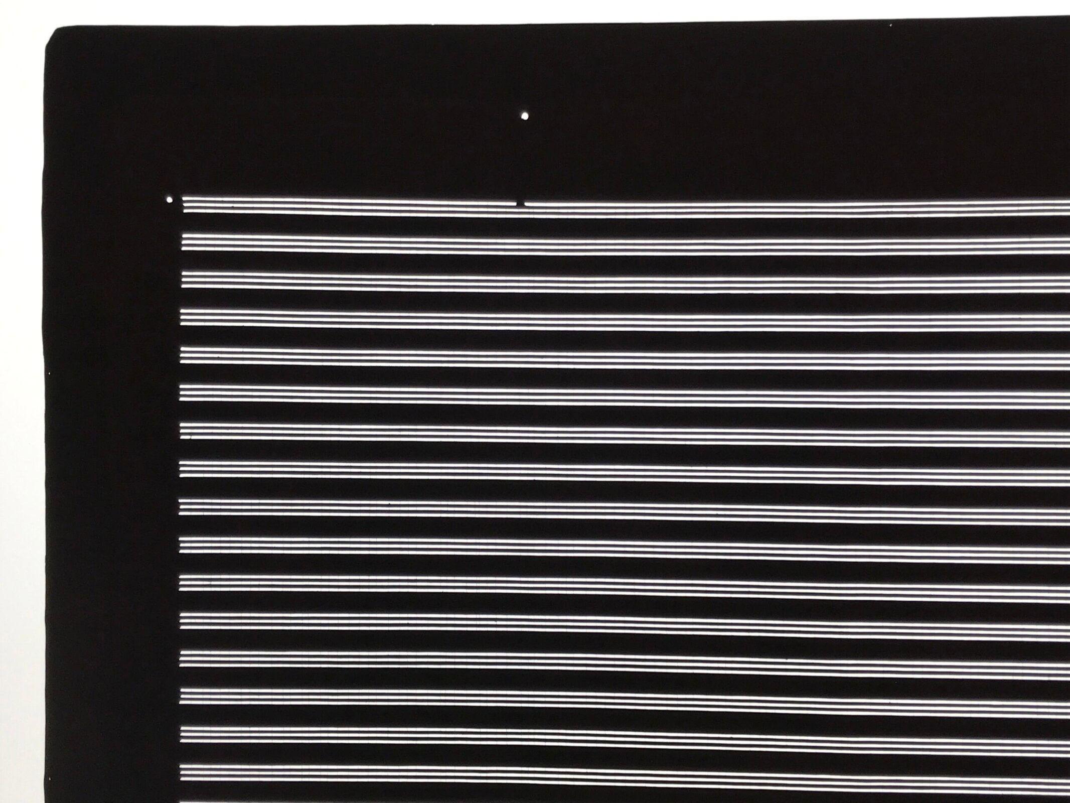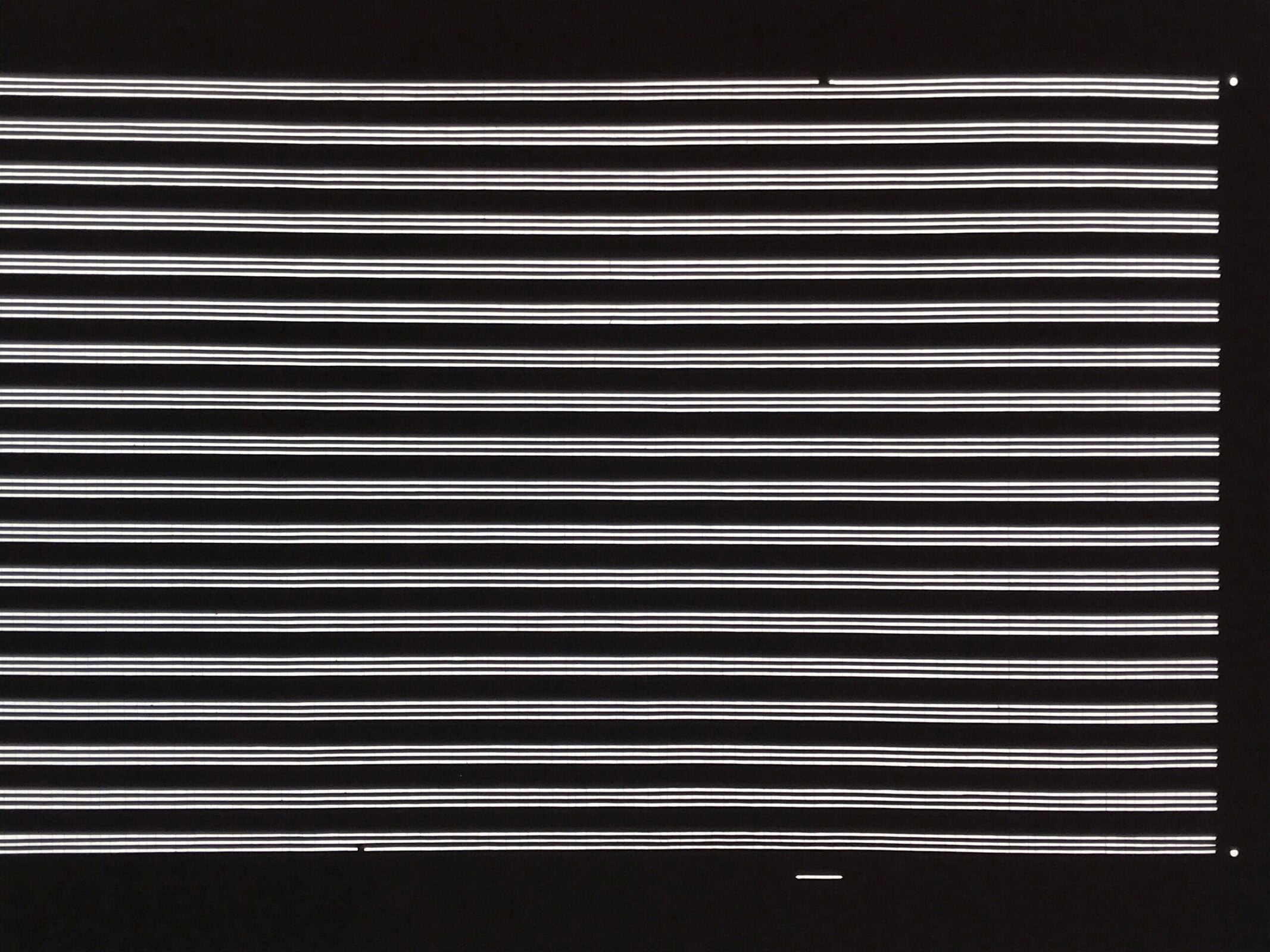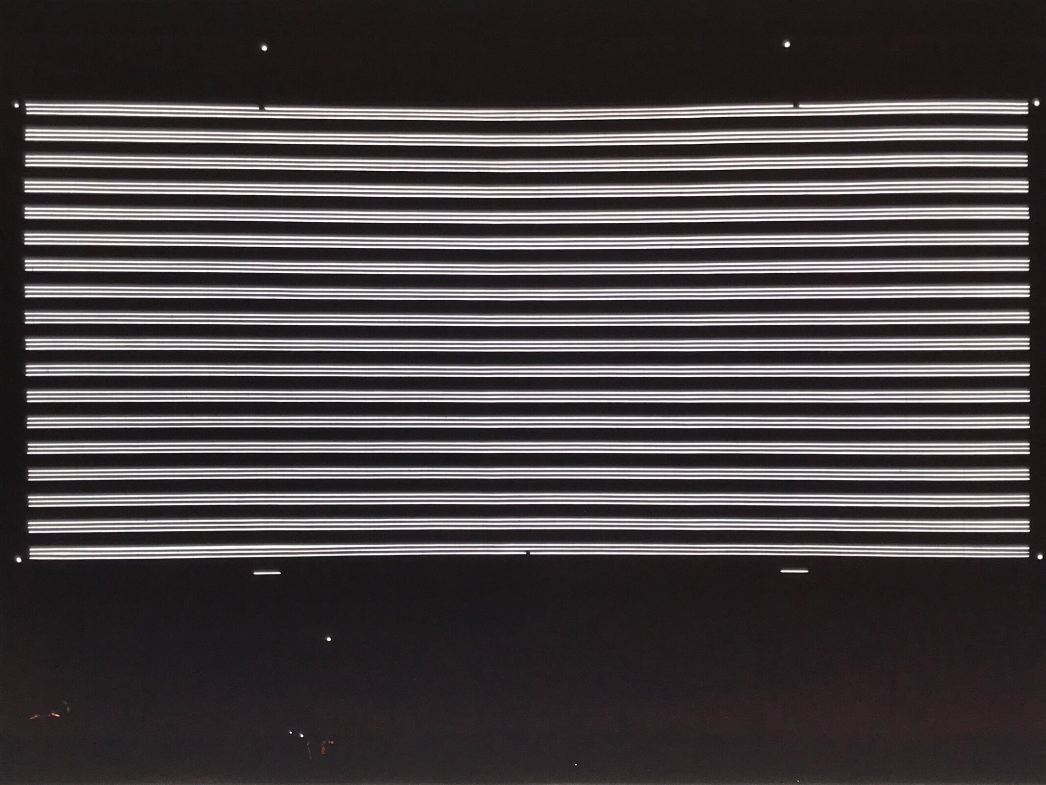 Using traditional mulberry washi paper, this katagami stencil features a simple set of horizontal striped lines. There are very thin silk threads holding the delicate pattern in place.