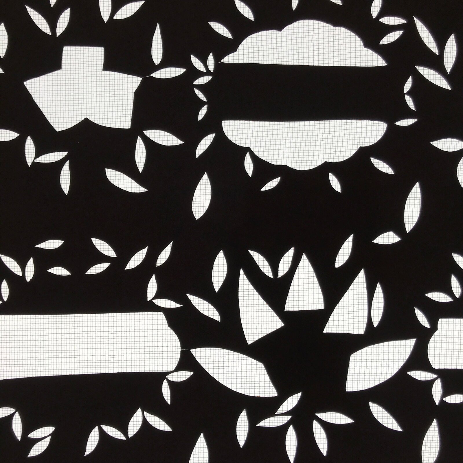 Using traditional mulberry paper, this katagami stencil with silk mesh backing features a silhouetted background with bordering leaves and is part of a much larger set of katagami. Unfortunately, these sets often get separated or lost over time.