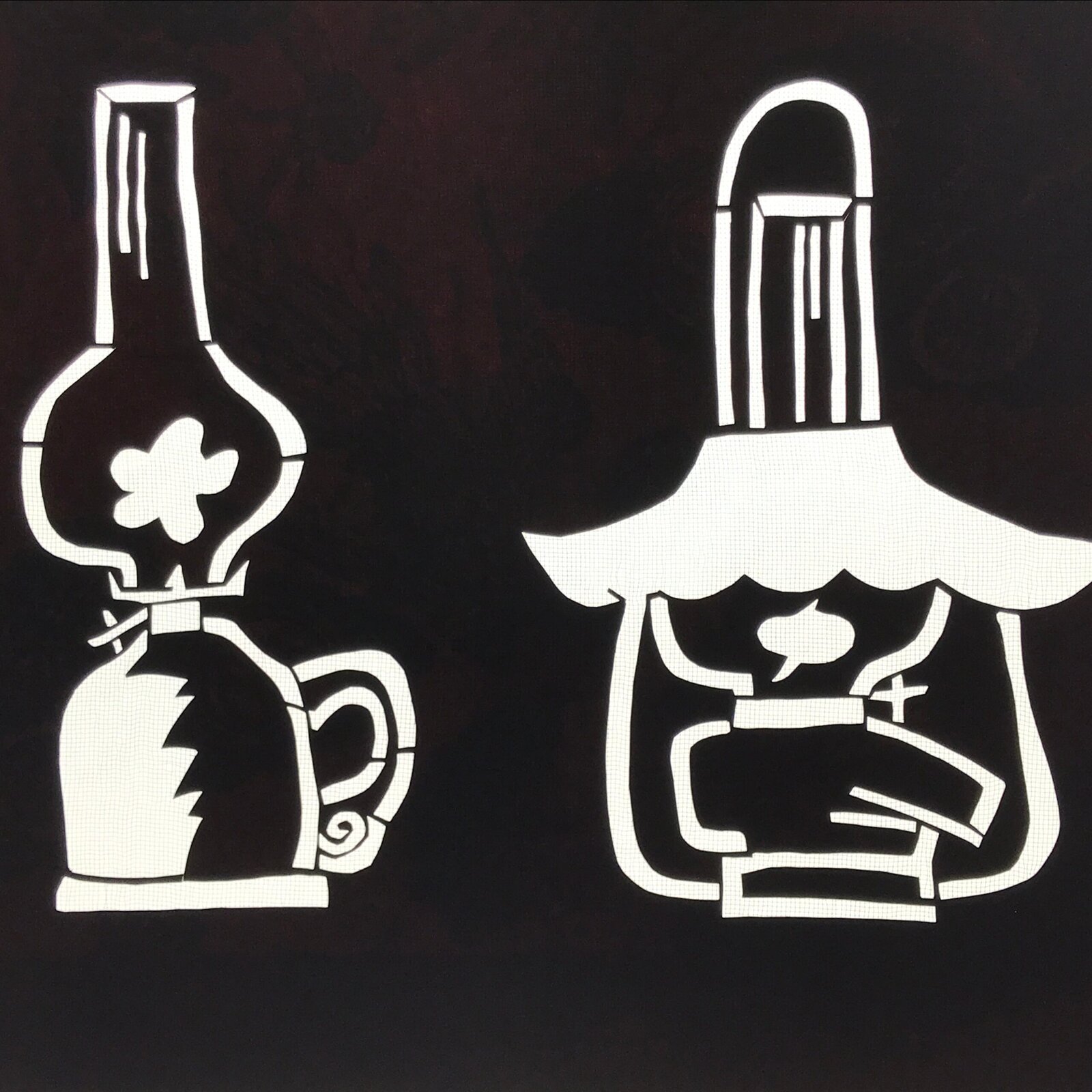 Using traditional mulberry washi paper, this katagami stencil with silk backing features a pair of old fashioned oil lanterns. One is typically synonymous with the outdoors while the other was popular in the home.