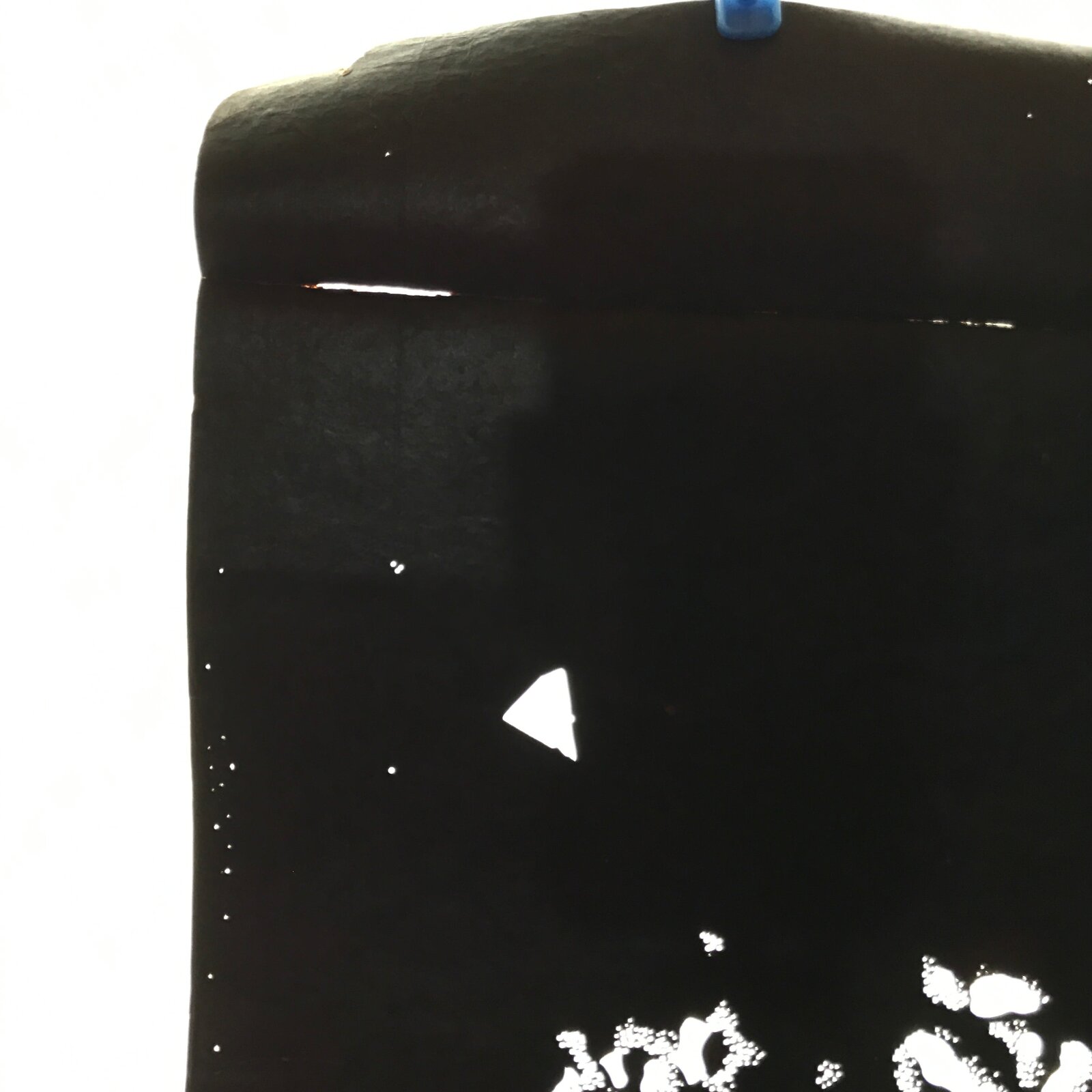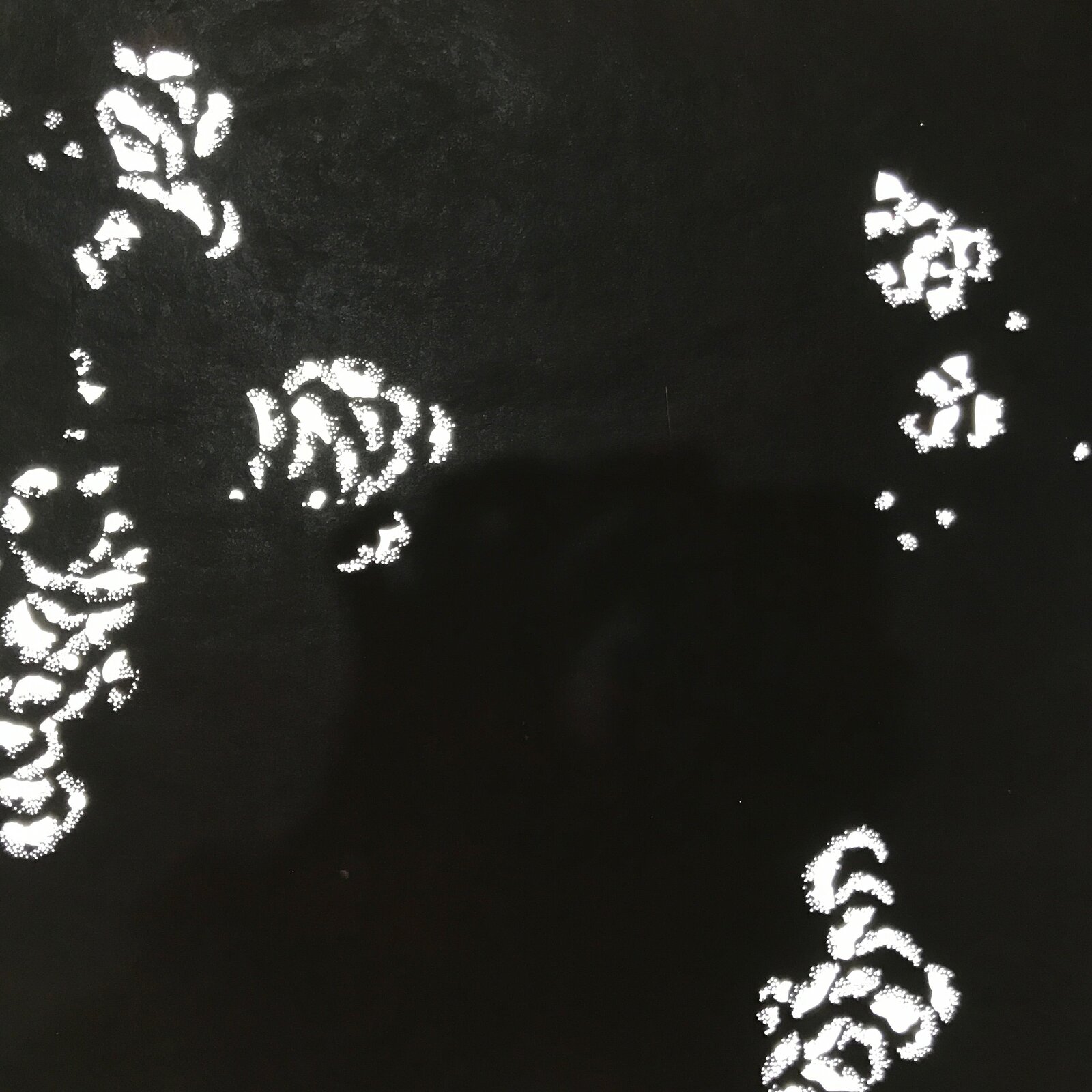 This antique Katagami was designed during the mid or late Edo period (1860) to early Meiji (1900) in Central Japan. It is made of two or more layers of handmade mulberry paper laminated together and waterproofed with persimmon tannin. Katagami printing uses a technique called resist dye where a paste is applied to the fabric with the katagami before dipping in ink. The open space on the katagami will be a negative space in the printed design.