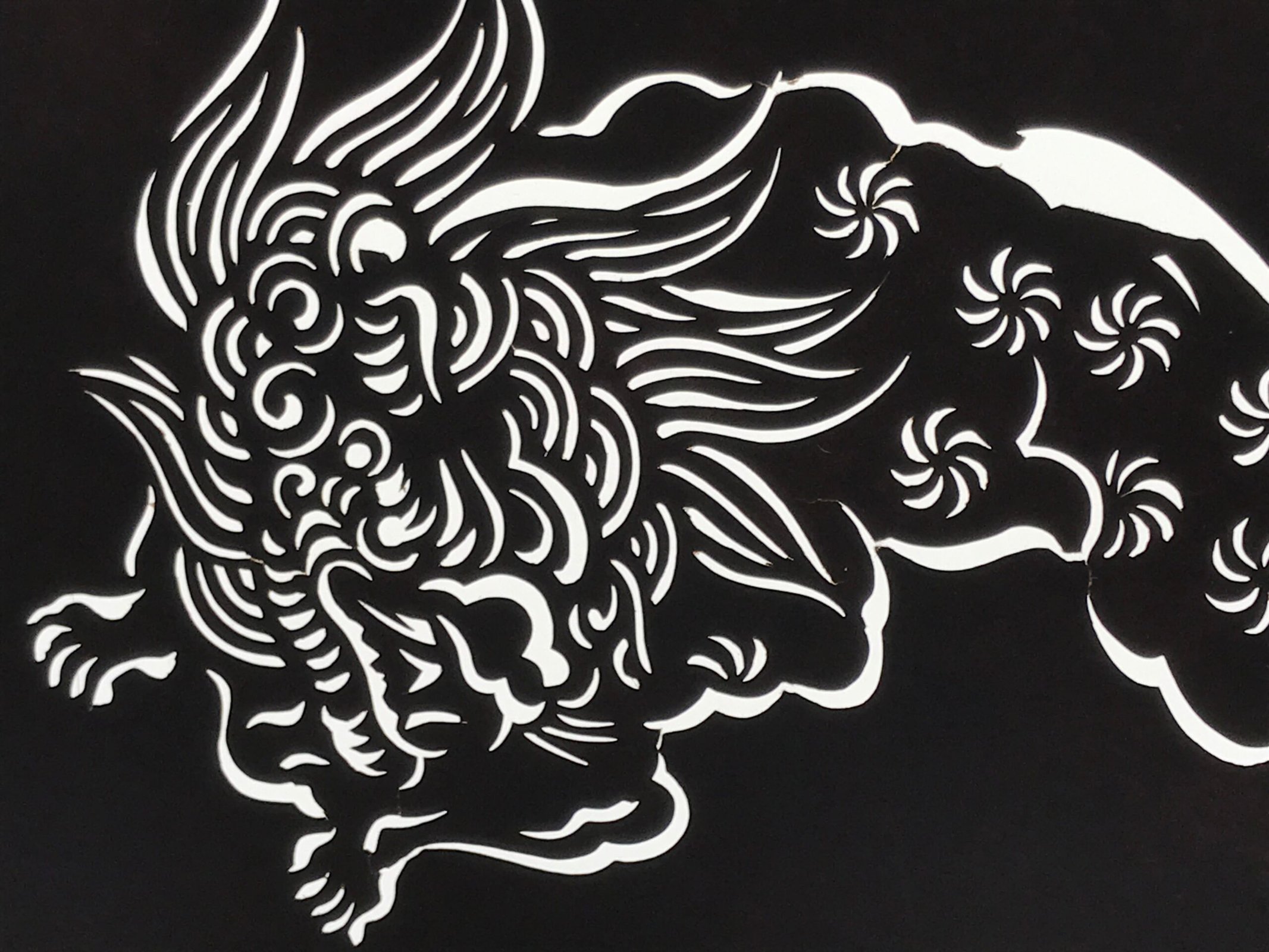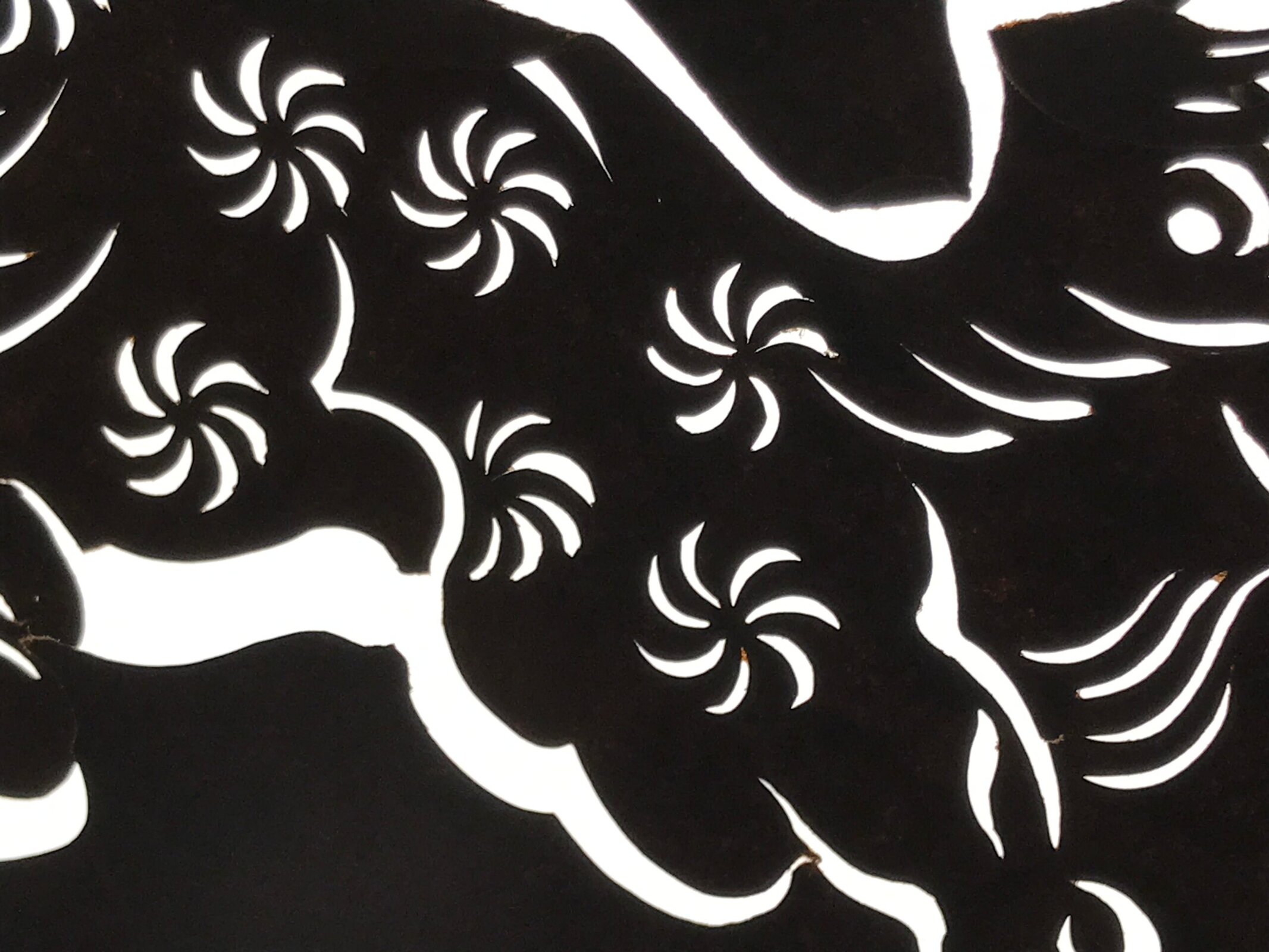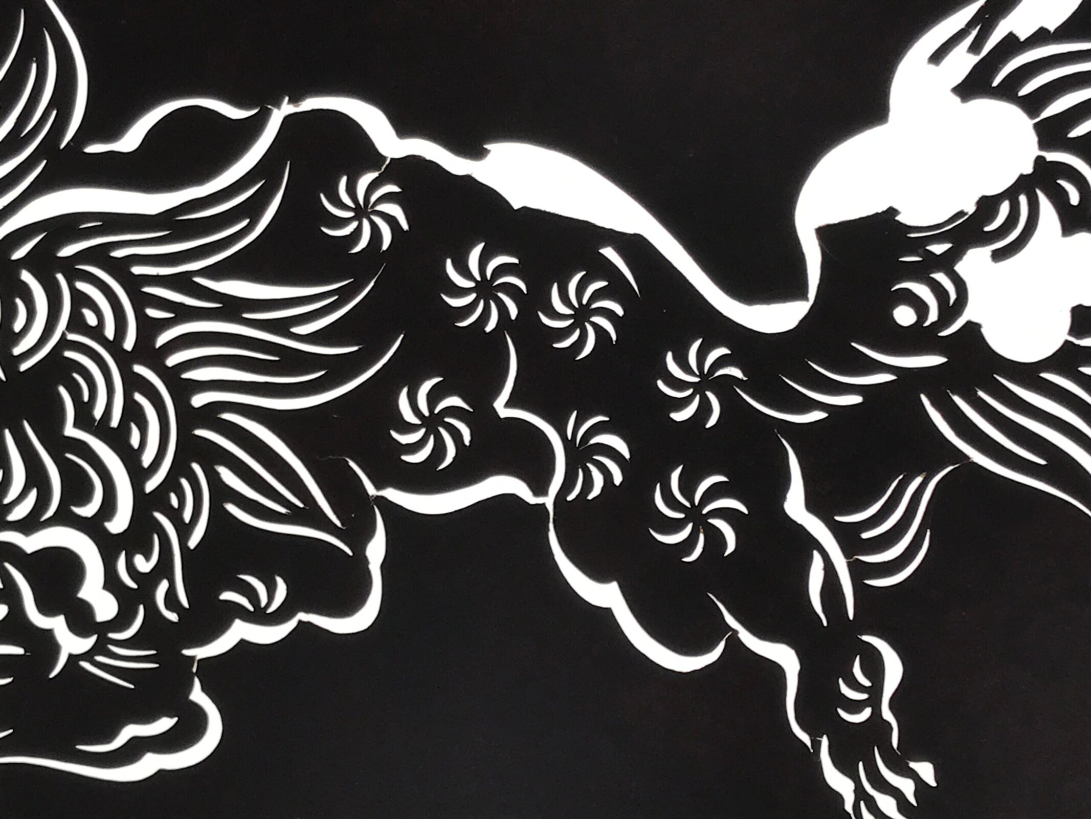 Using traditional mulberry washi paper, this katagami stencil features a gorgeous depiction of a leaping shishi lion dog.