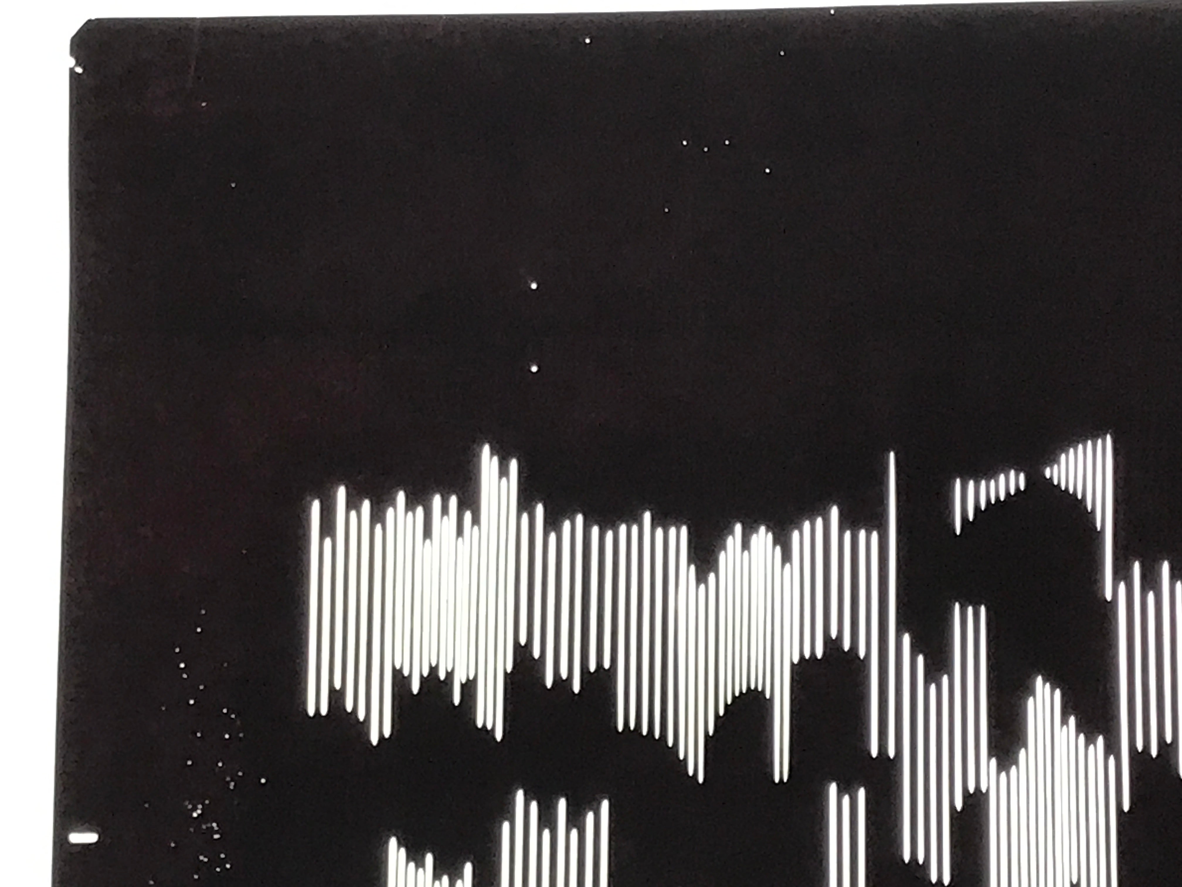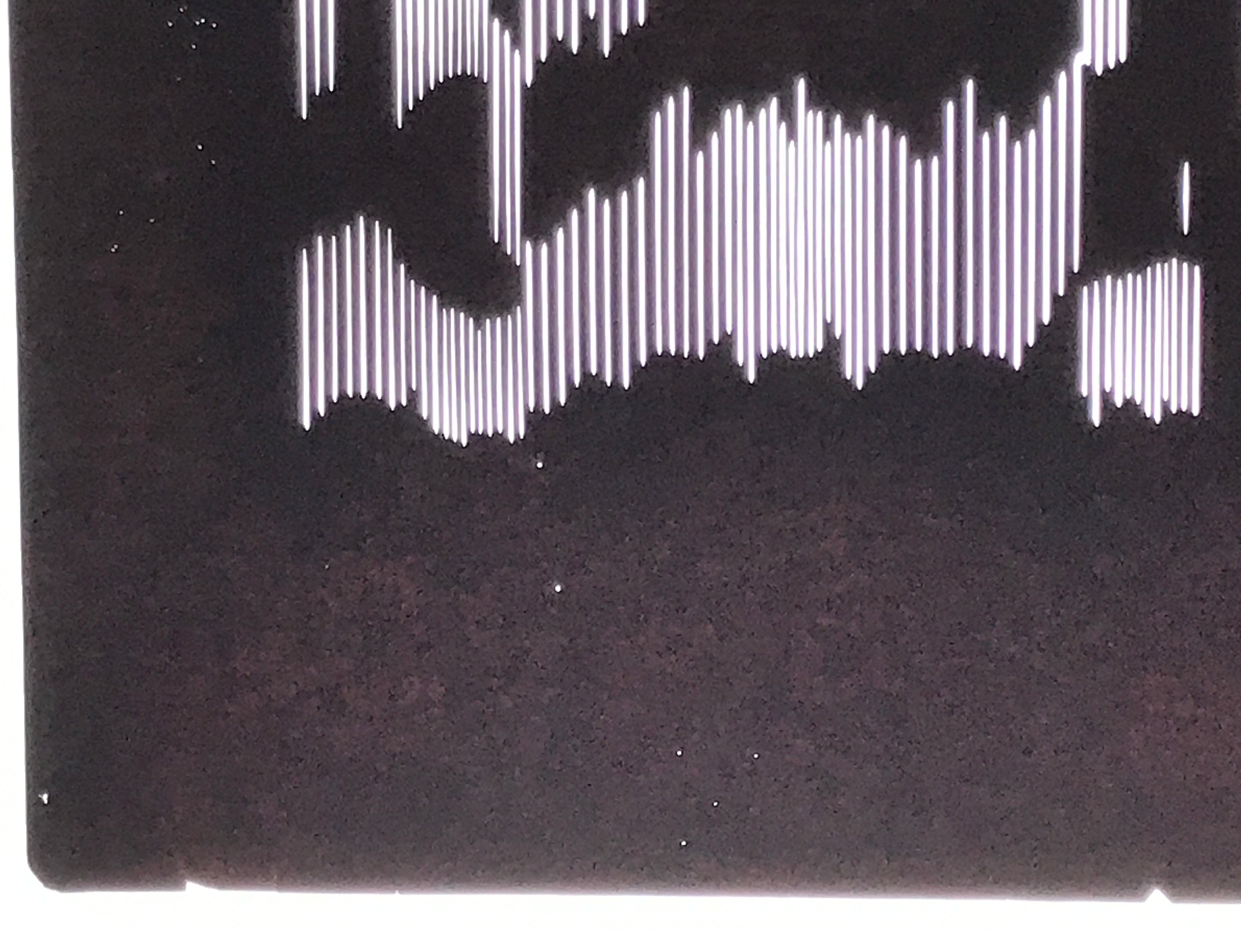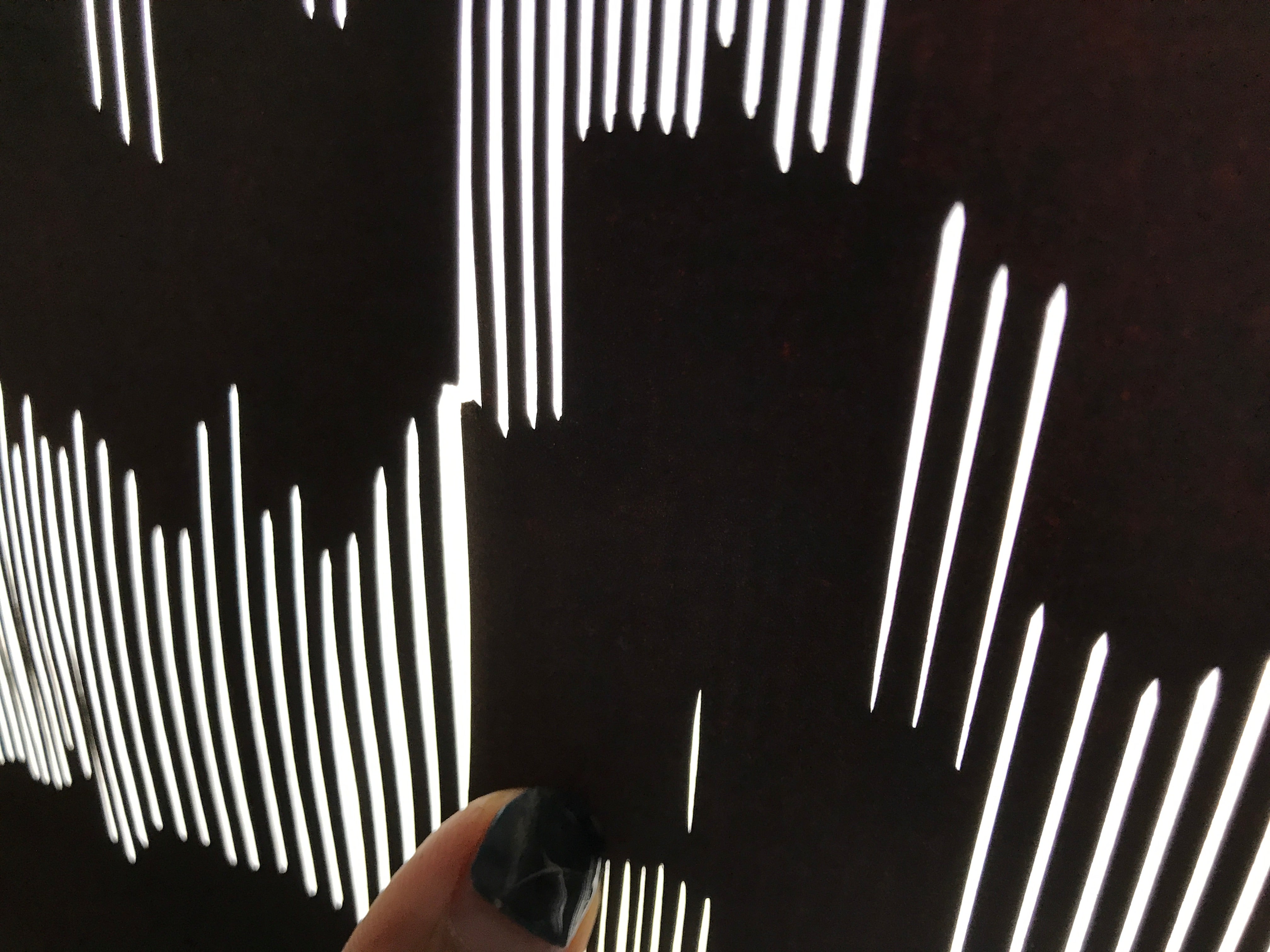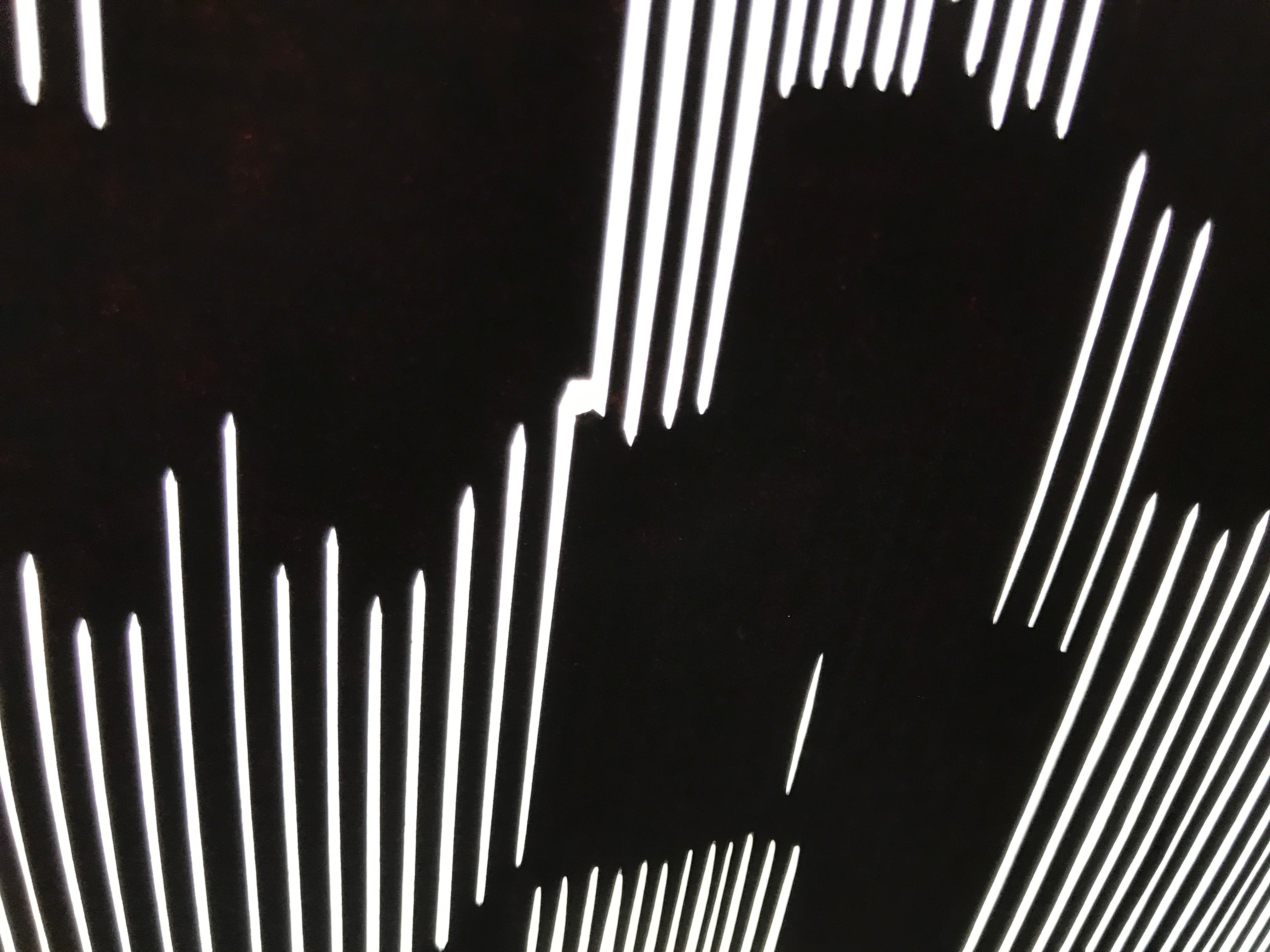 Using traditional mulberry paper, this katagami stencil with no silk mesh backing features vertical lines around blocked out sections. This piece is likely a background for a floral pattern.