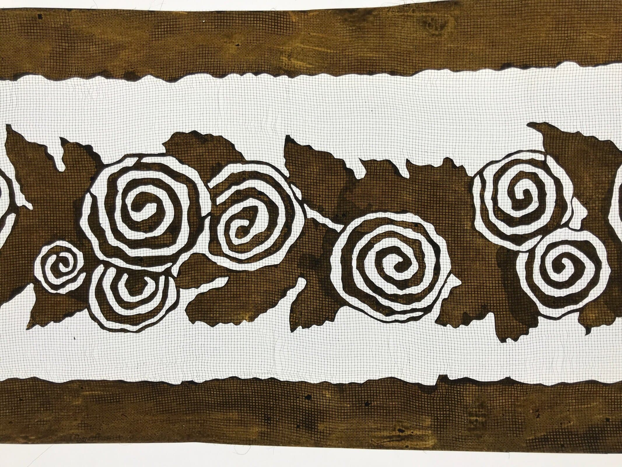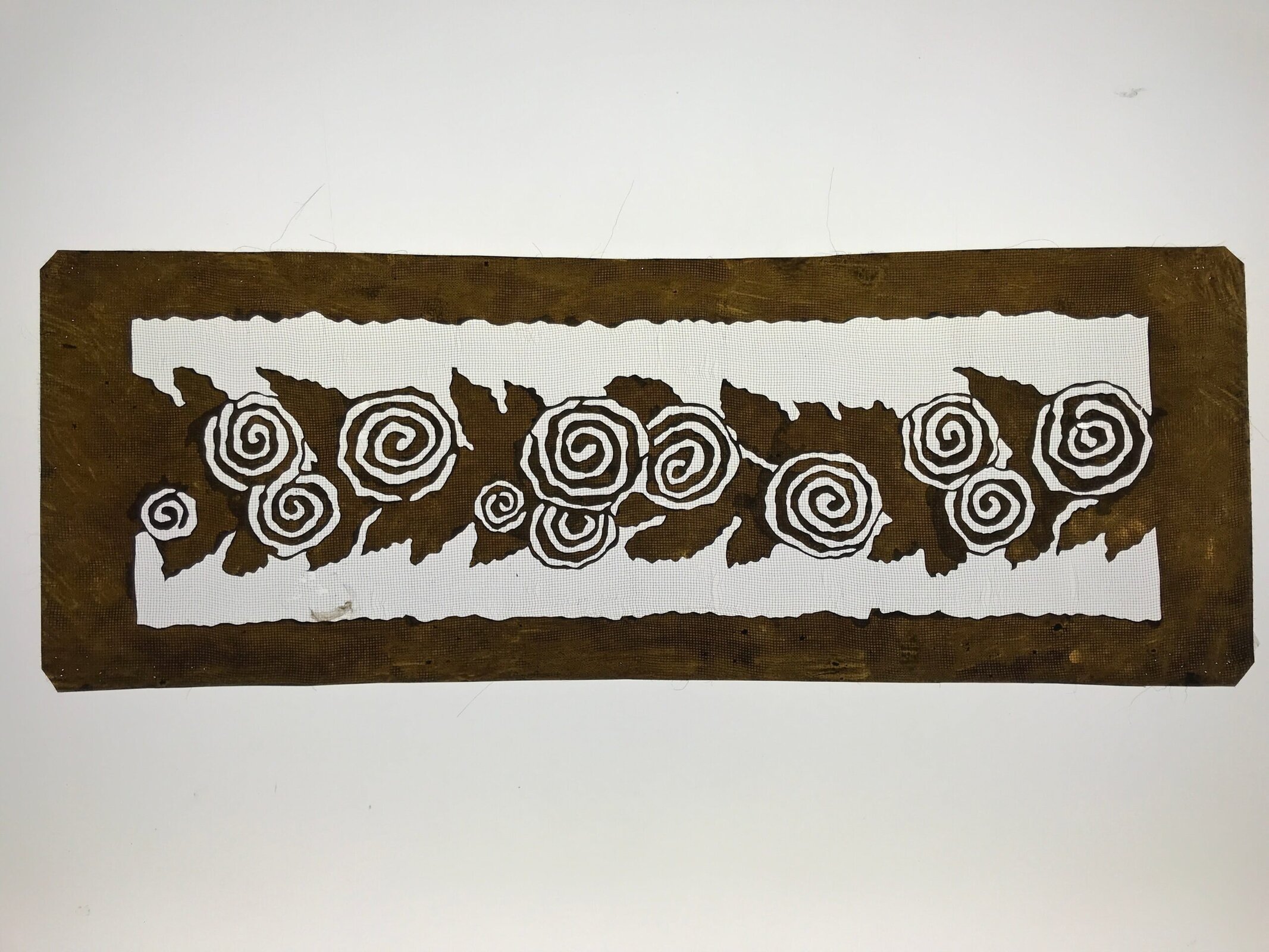 Using traditional mulberry washi paper, this katagami stencil with silk backing features a line of modern-style curled roses.