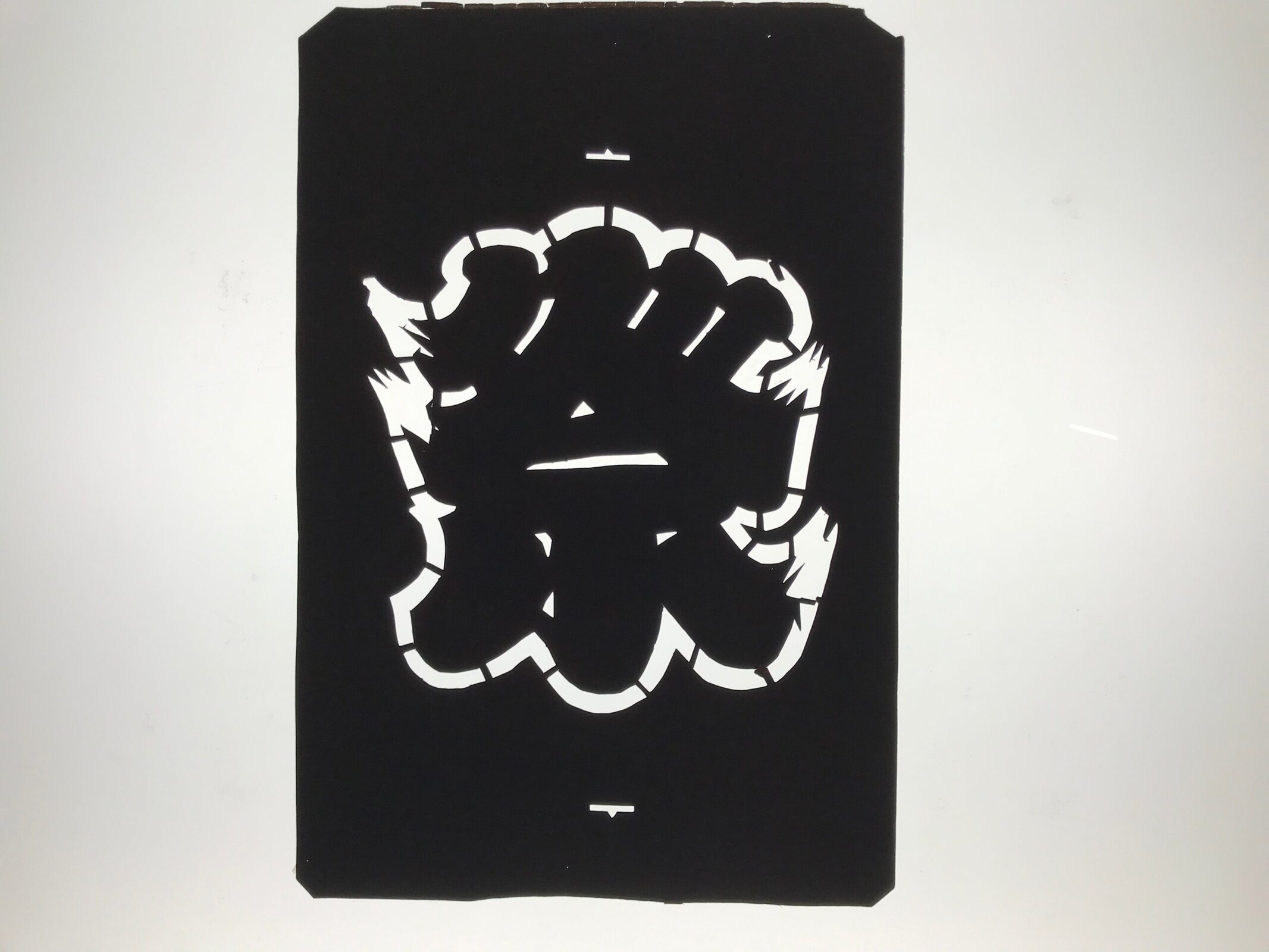 This antique Katagami was designed during the mid or late Edo period (1860) to early Meiji (1900) in Central Japan. It is made of two or more layers of handmade mulberry washi paper laminated together and waterproofed with persimmon tannin. Katagami printing uses a technique called resist dye where a paste is applied to the fabric with the katagami before dipping in ink. The open space on the katagami will be a negative space in the printed design.