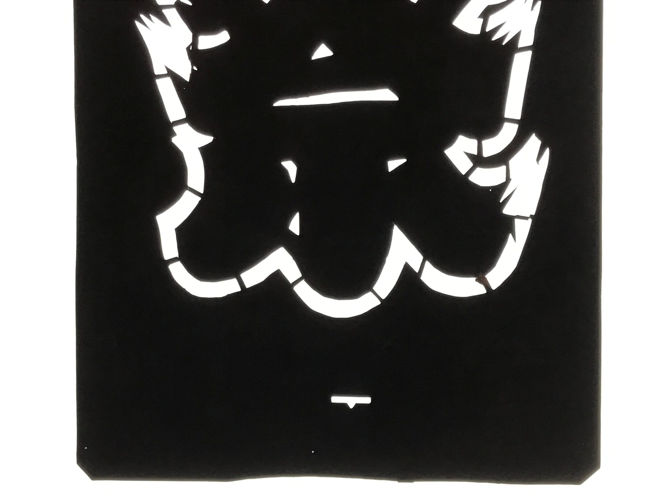 Using traditional mulberry washi paper, this katagami stencil features a large calligraphy-style kanji that says “matsuri” (festival). This type of stencil would be used for the backs of happi coats, flags, and banners.