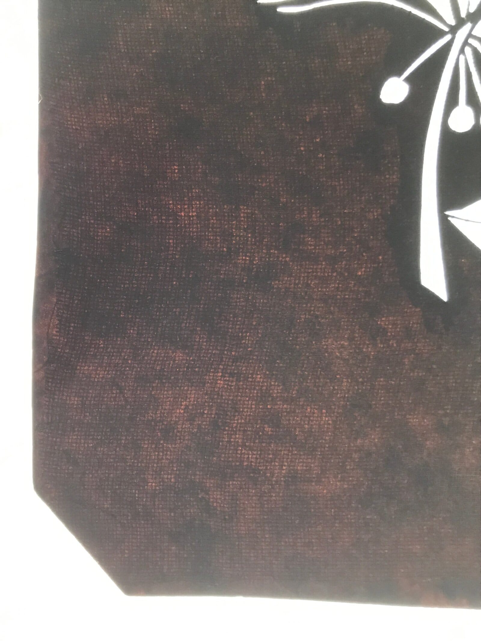 This antique Katagami was designed during the mid or late Edo period (1860) to early Meiji (1900) in Central Japan. It is made of two or more layers of handmade mulberry washi paper laminated together and waterproofed with persimmon tannin. Katagami printing uses a technique called resist dye where a paste is applied to the fabric with the katagami before dipping in ink. The open space on the katagami will be a negative space in the printed design.