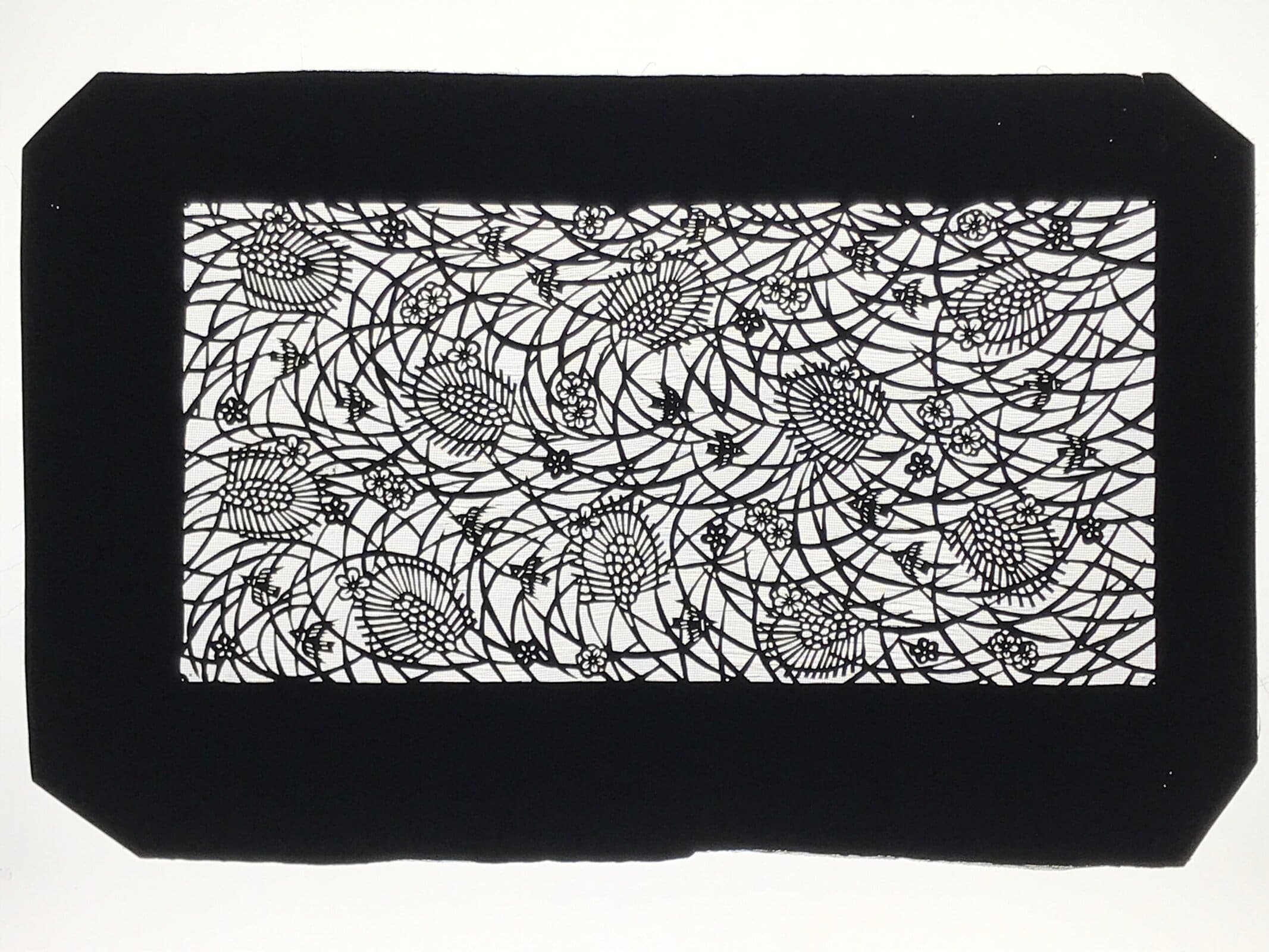 Japanese Katagami is a stencil pattern for dyeing textiles used for printing designs and patterns on kimono and other fabric items.