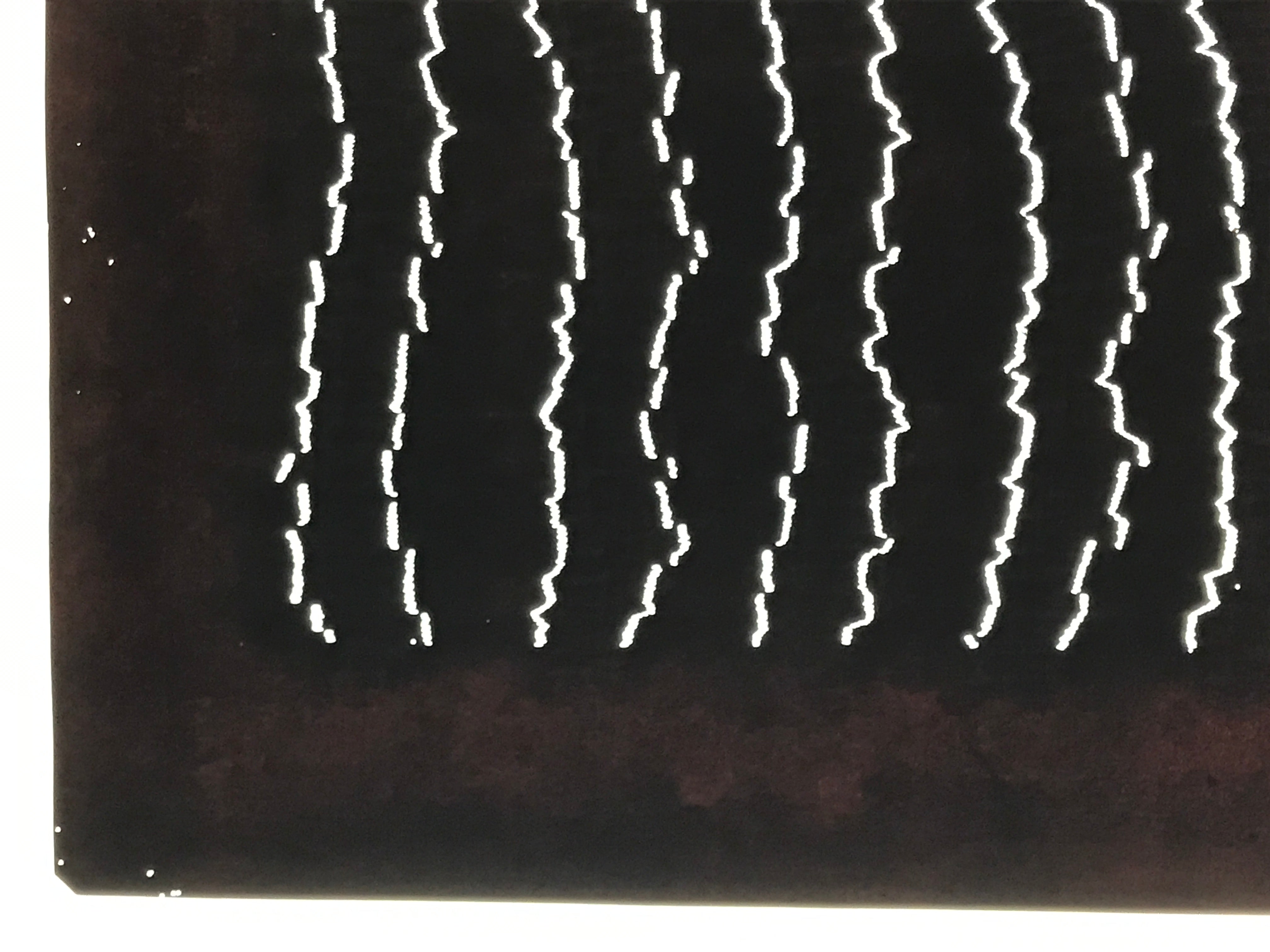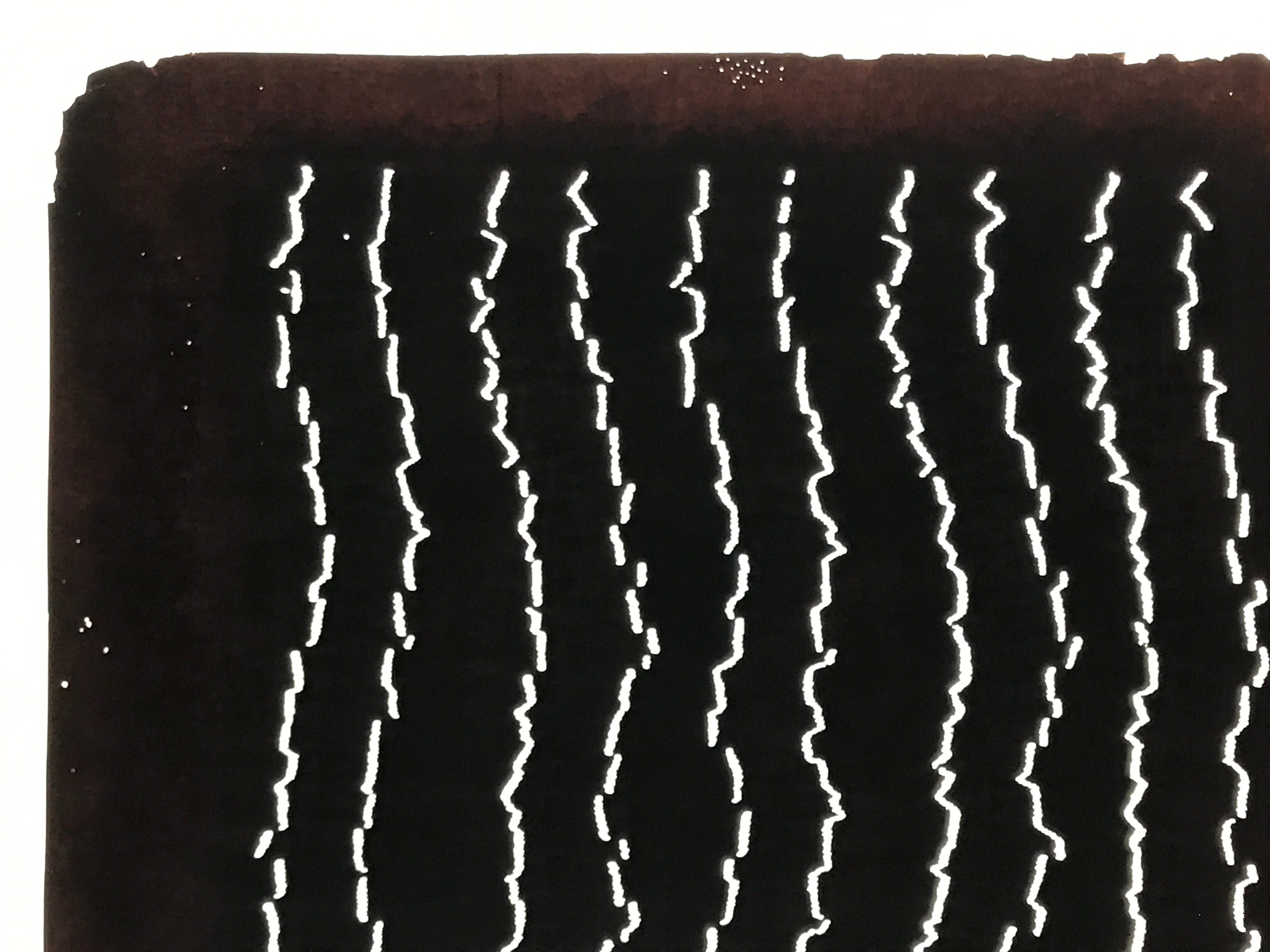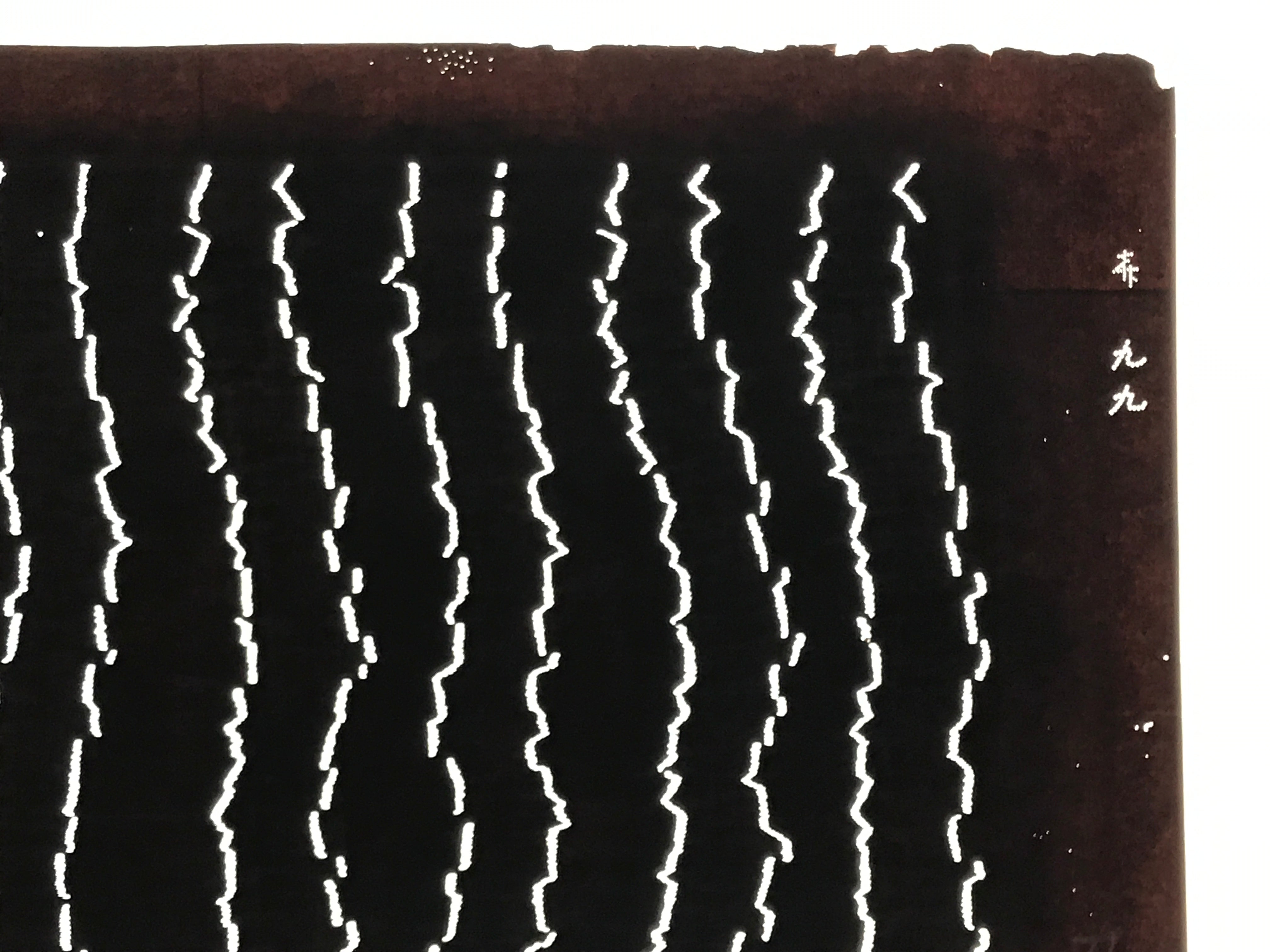 Using traditional mulberry paper, this katagami stencil with no silk mesh backing features long, vertical jagged lines pattern.