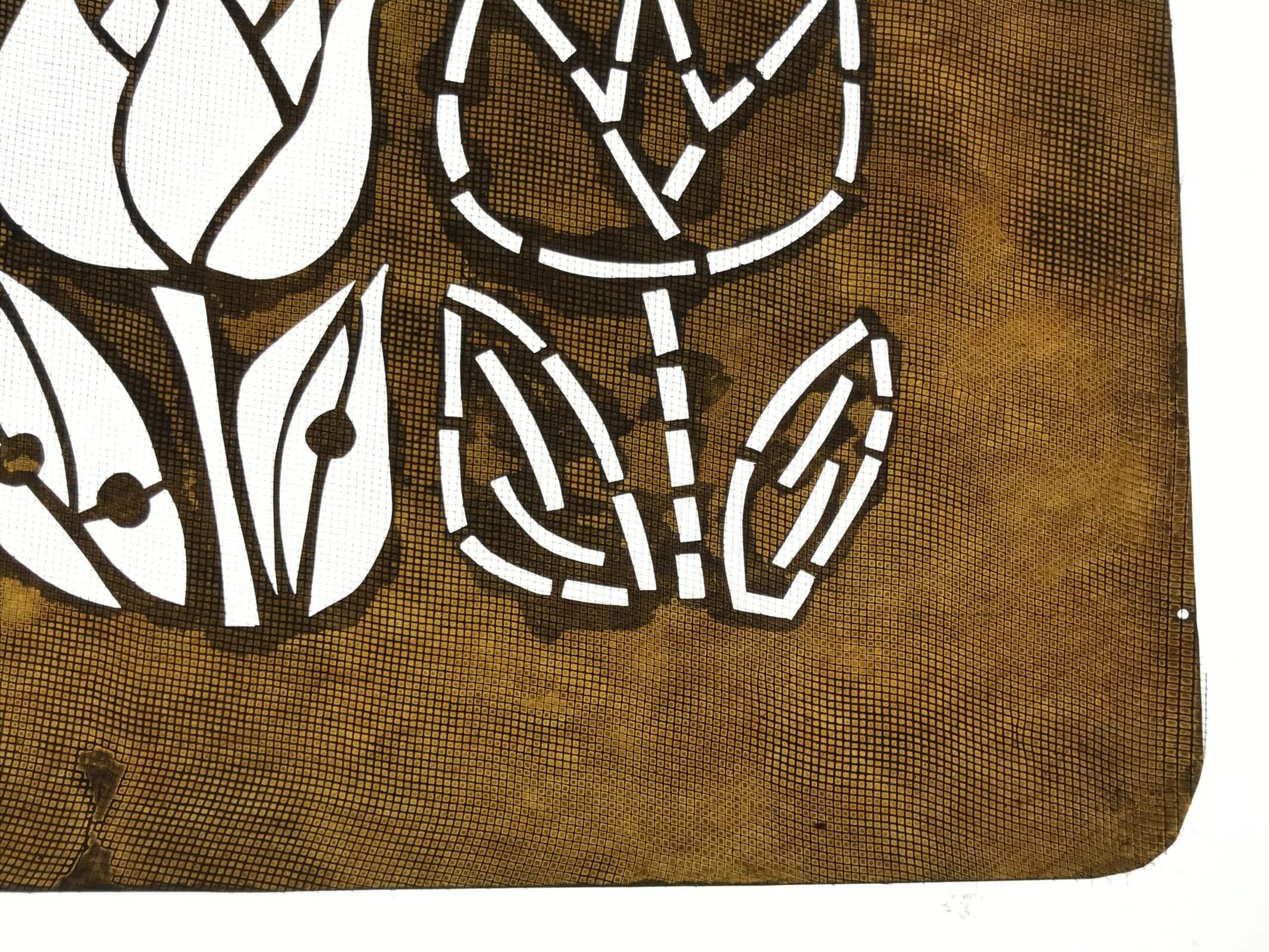 Japanese Katagami is a stencil pattern for dyeing textiles used for printing designs and patterns on kimono and other fabric items.