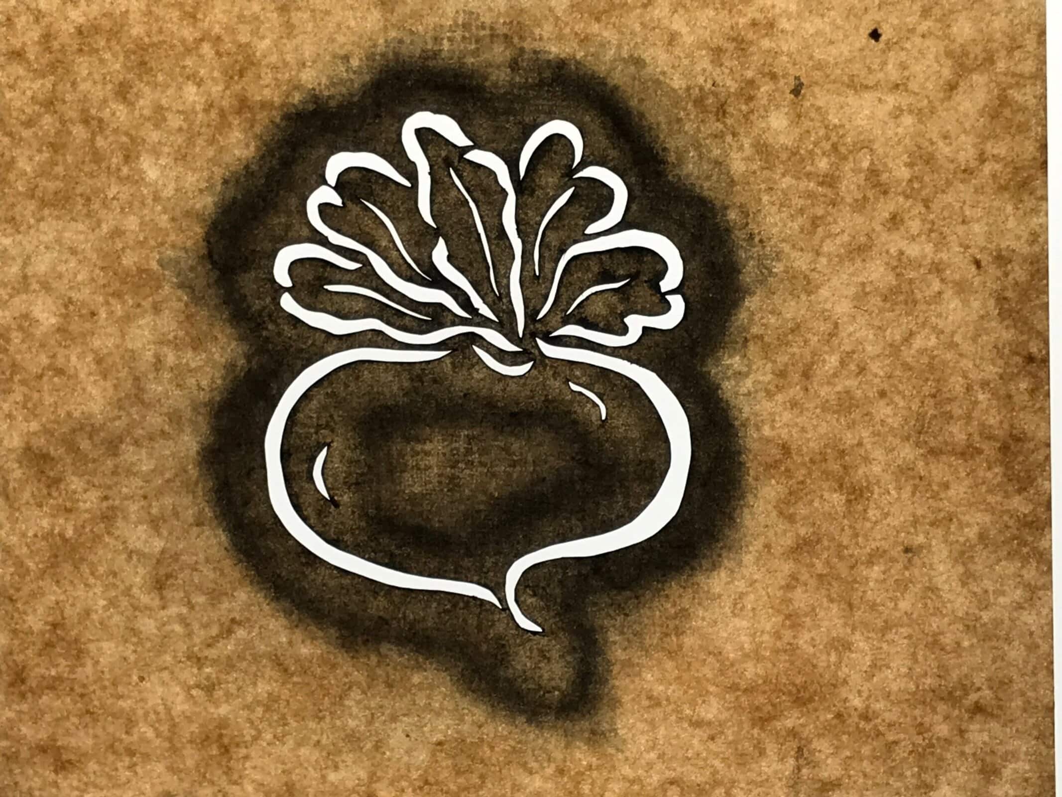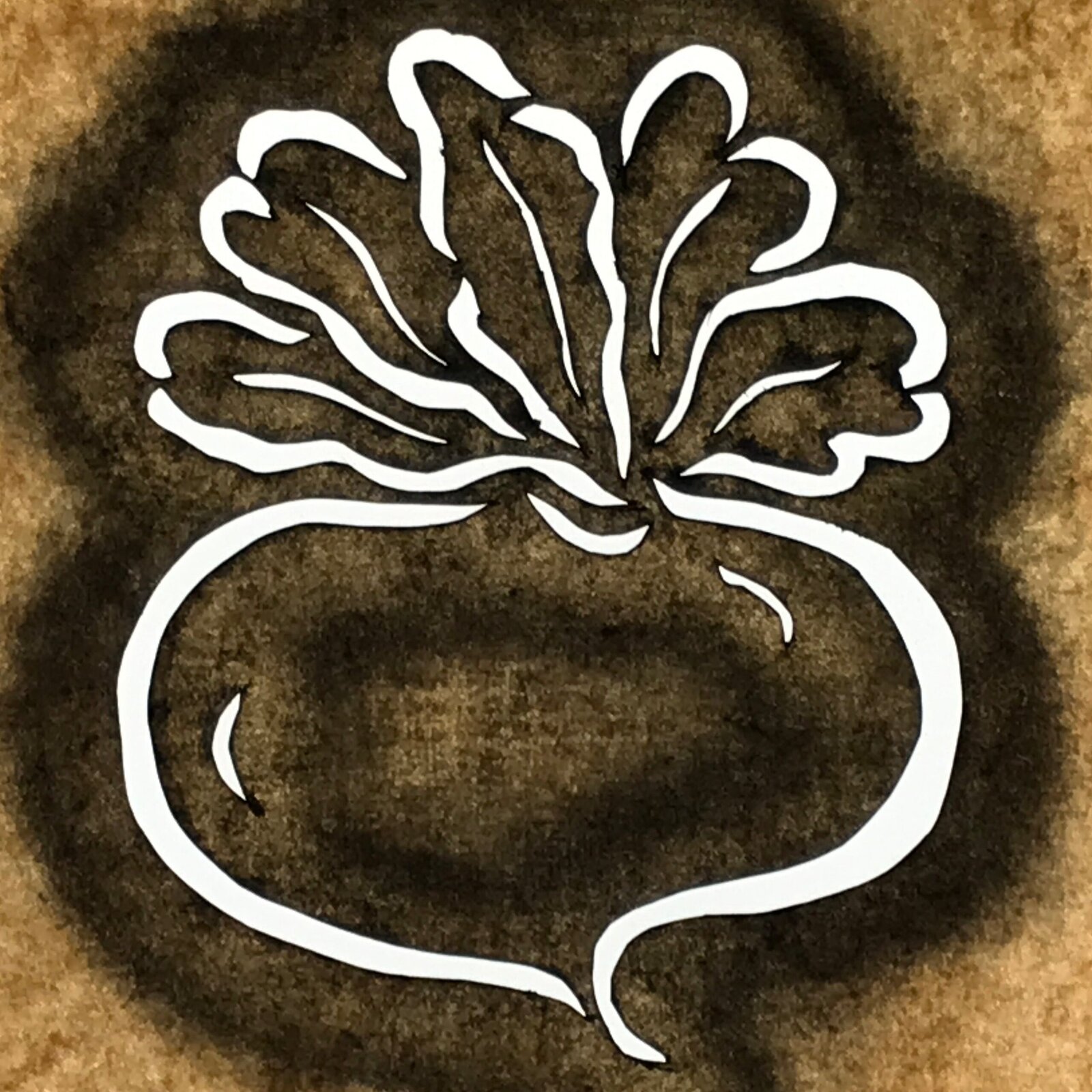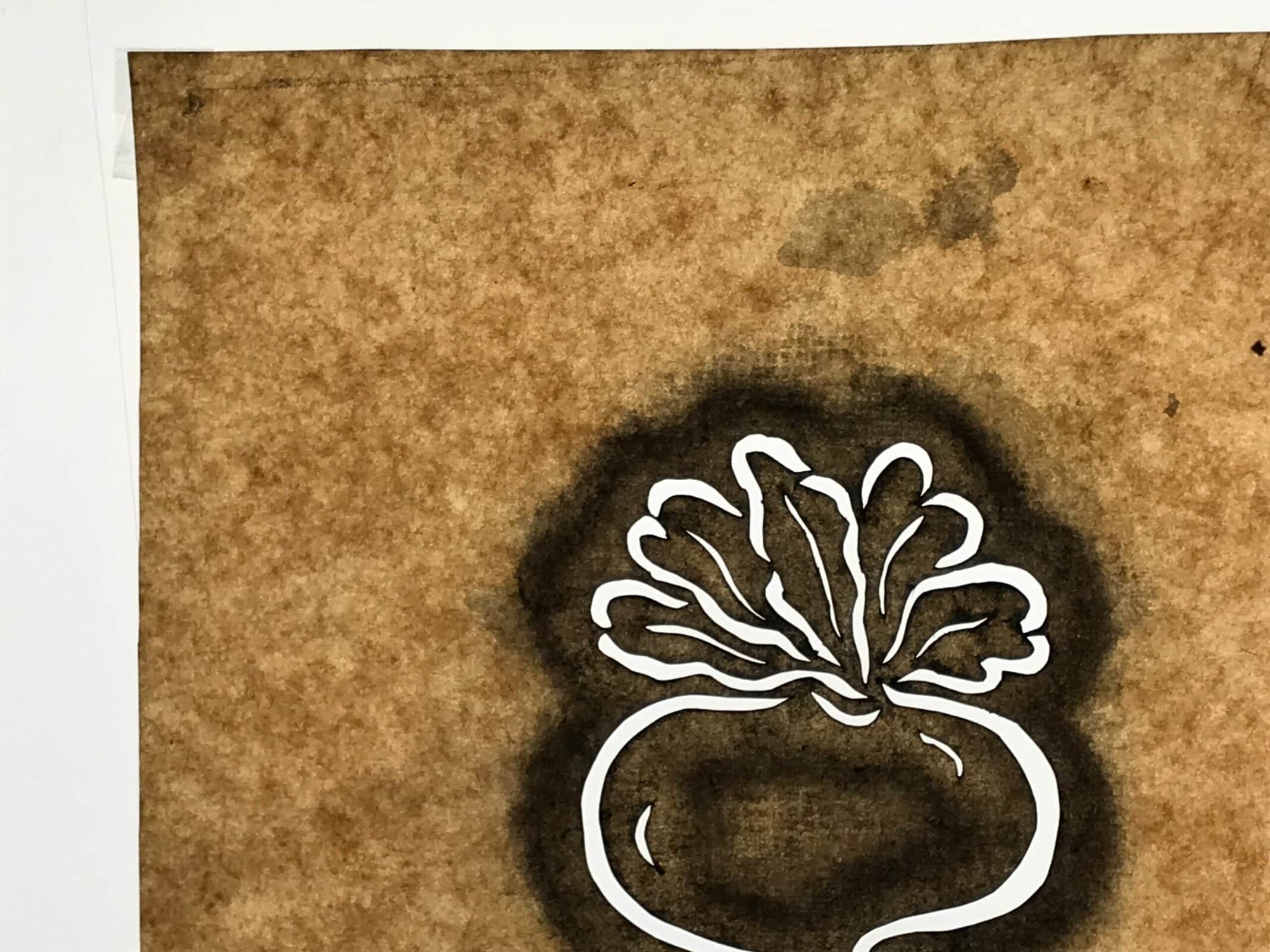 Using traditional mulberry washi paper, this katagami stencil with no silk backing features a singular turnip (kabu).