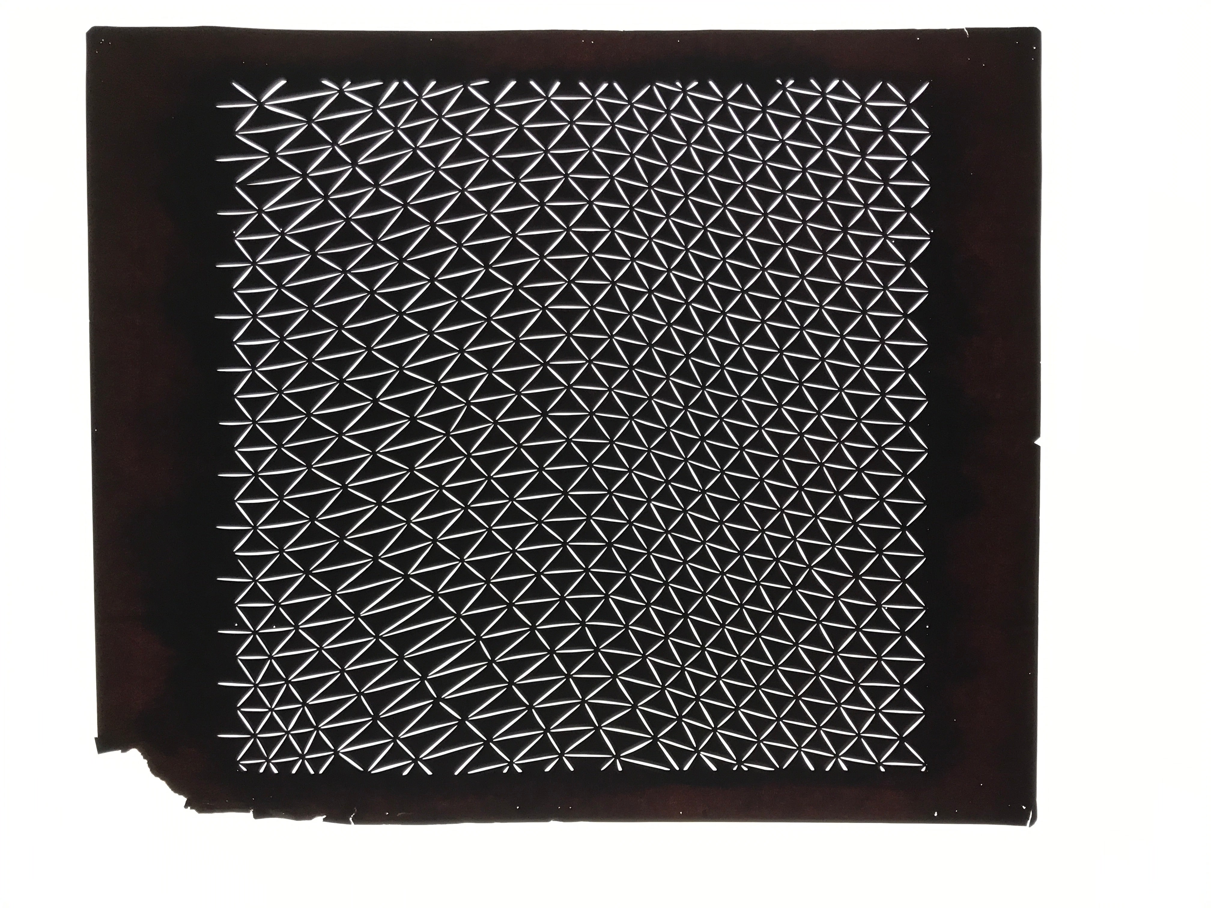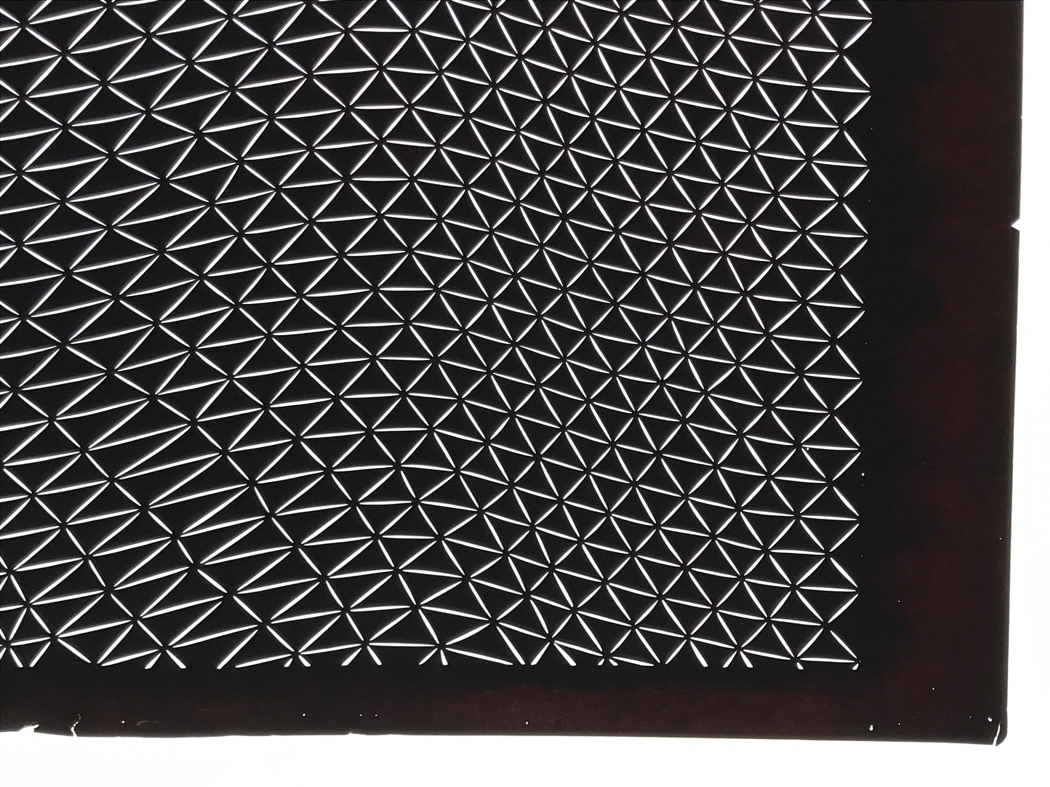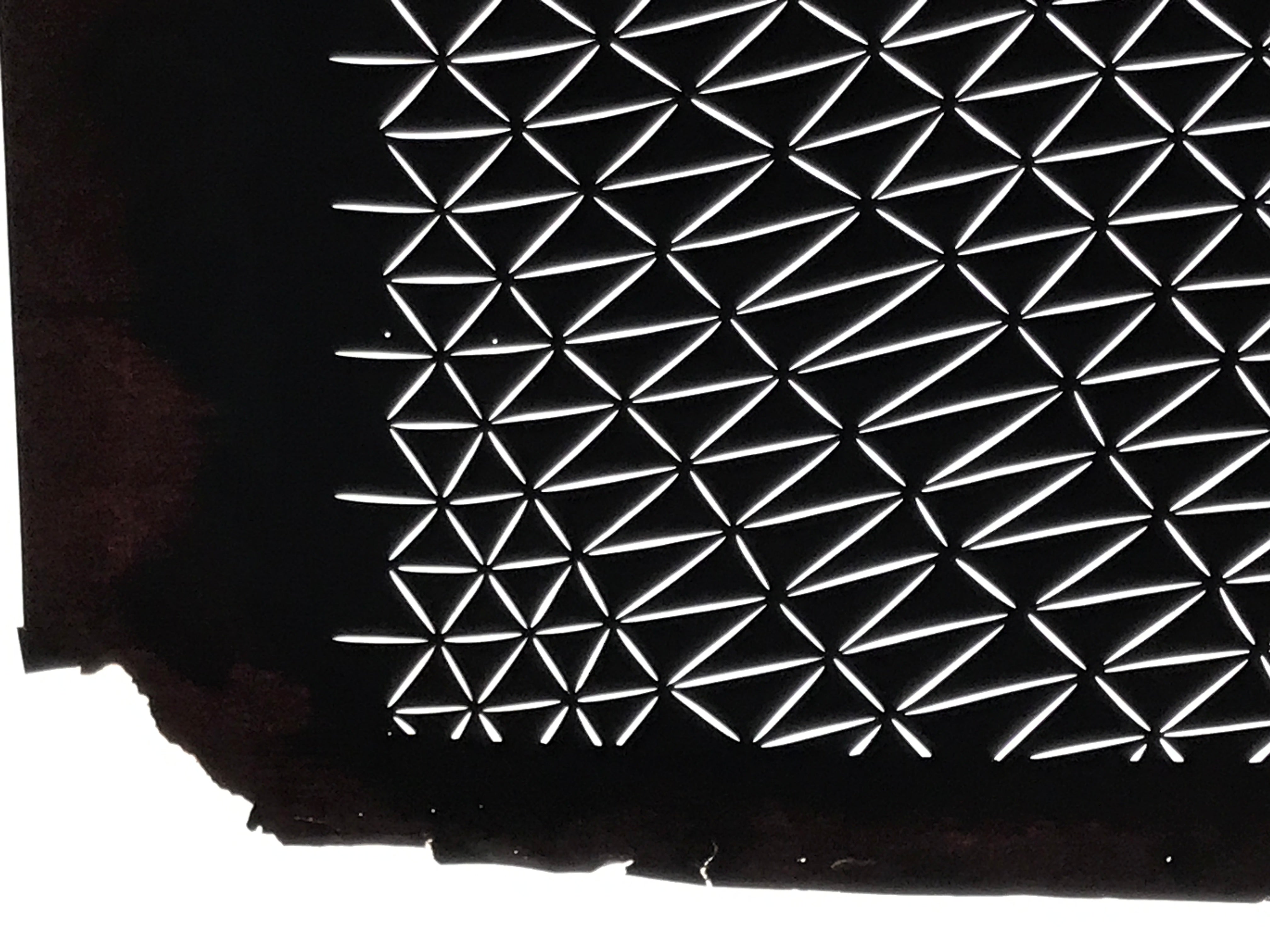 Using traditional mulberry paper, this katagami stencil with no silk mesh backing features a wavy net of the traditional uroko pattern. This protective pattern is know for its triangular designs and is said to represent the scales of snakes, fish, dragons, etc.