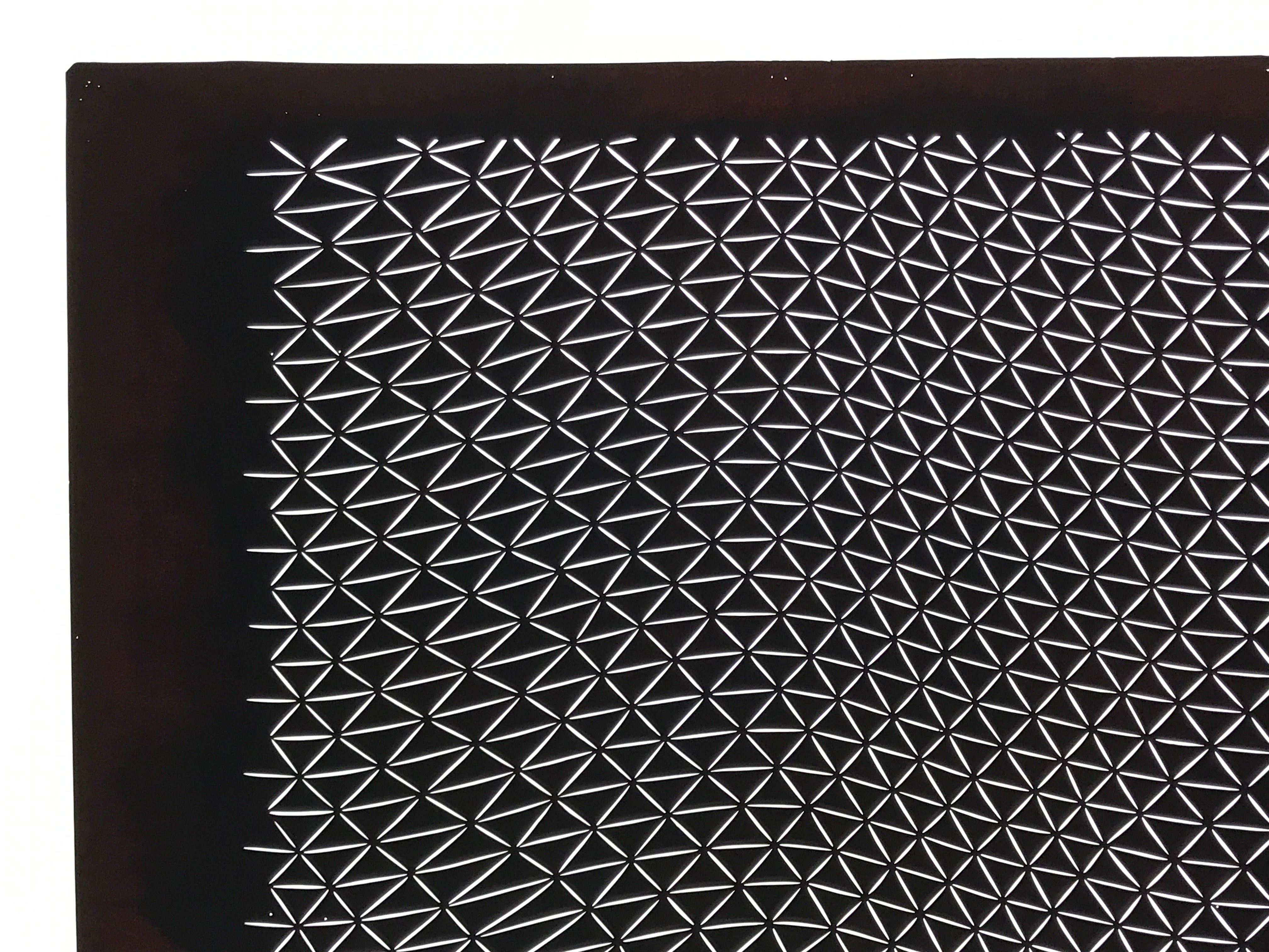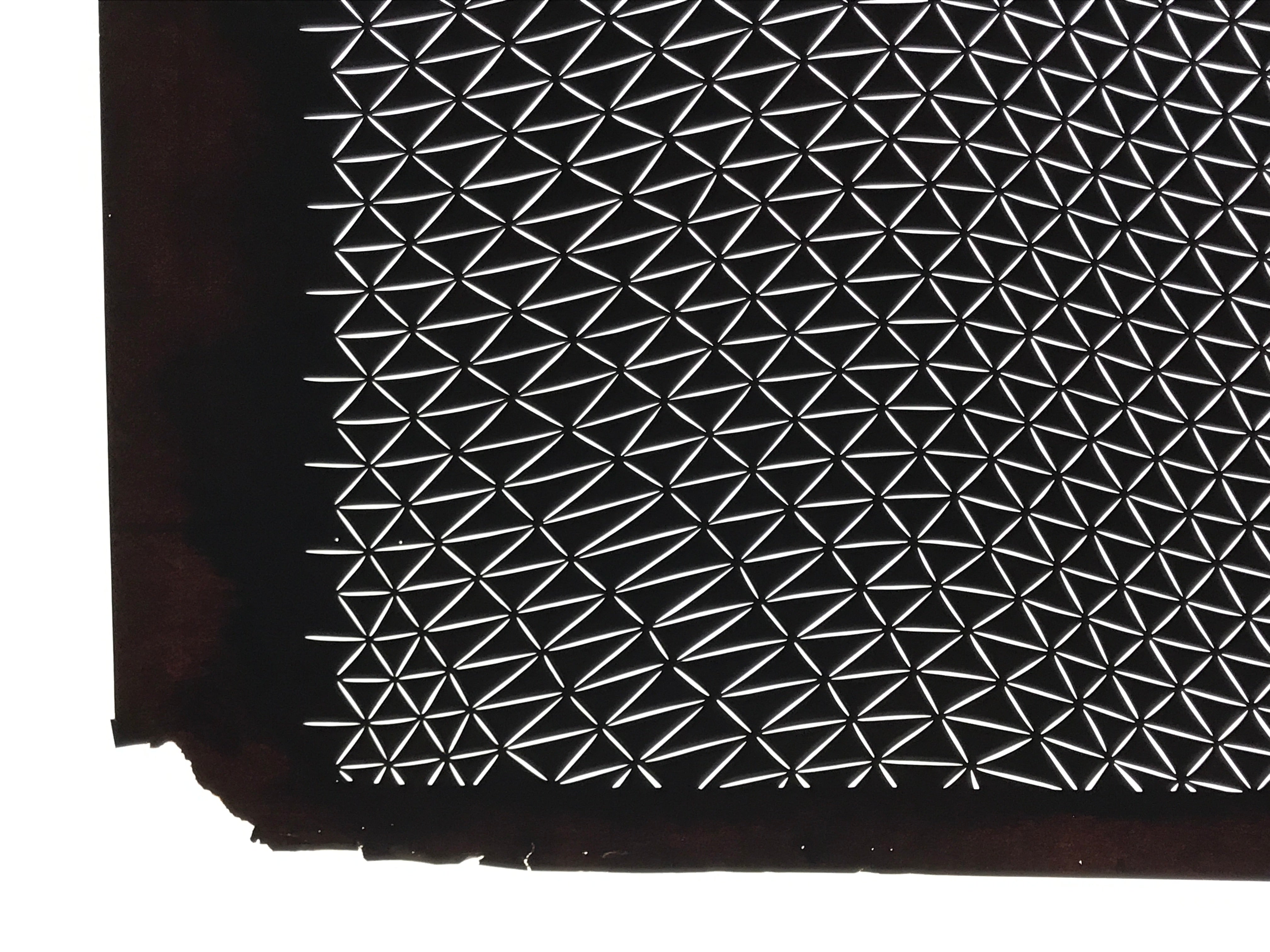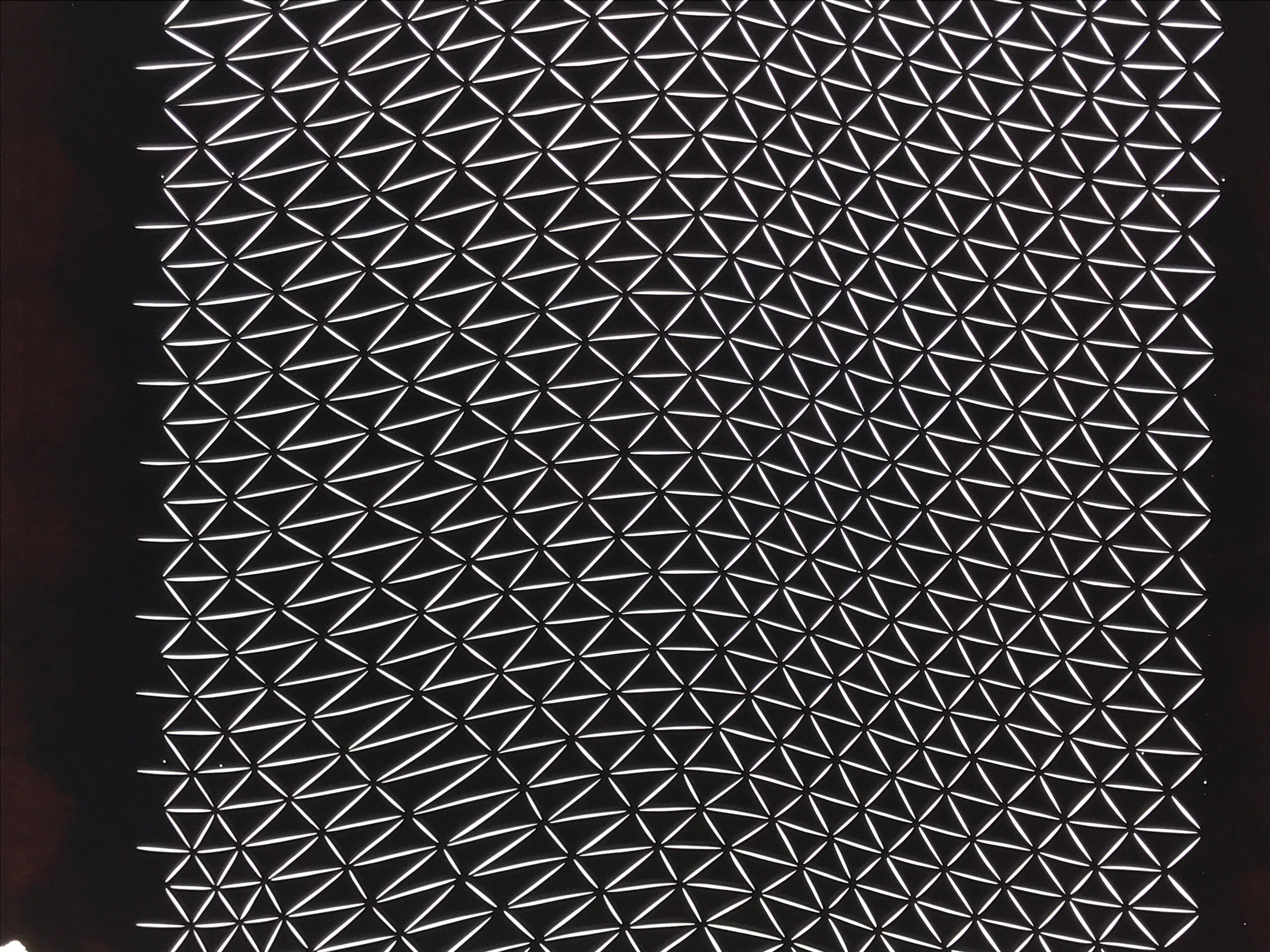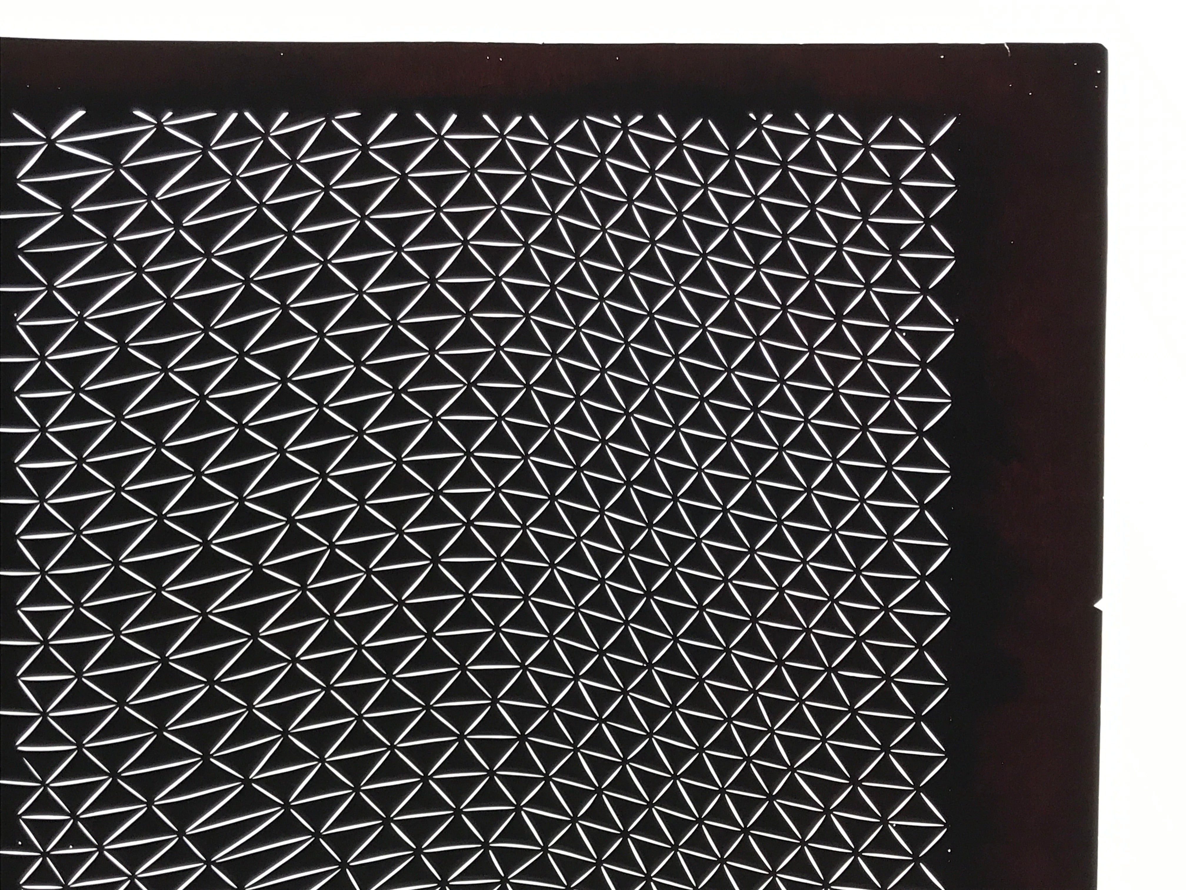 Using traditional mulberry paper, this katagami stencil with no silk mesh backing features a wavy net of the traditional uroko pattern. This protective pattern is know for its triangular designs and is said to represent the scales of snakes, fish, dragons, etc.