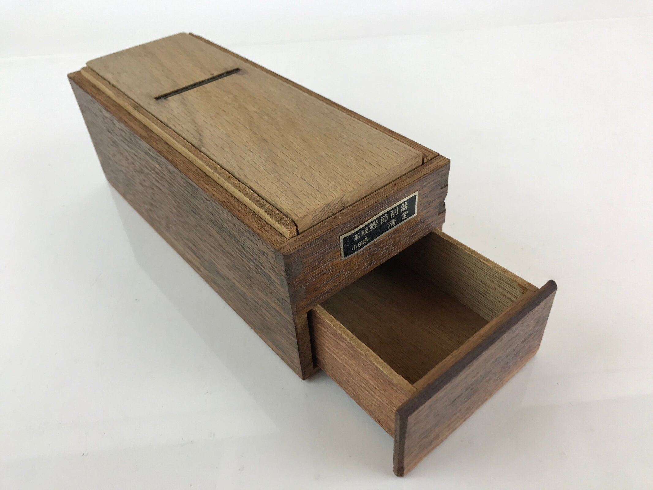 A katsuobushi shaving tool for shaving hard and dry bonito sticks to make Bonito flakes. When the upper blade (plane) is used to shave the bonito sticks, the shaved flakes fit in the box. Until the 1960s, it was used in many ordinary households in Japan, but it disappeared as packaged products began to be sold.