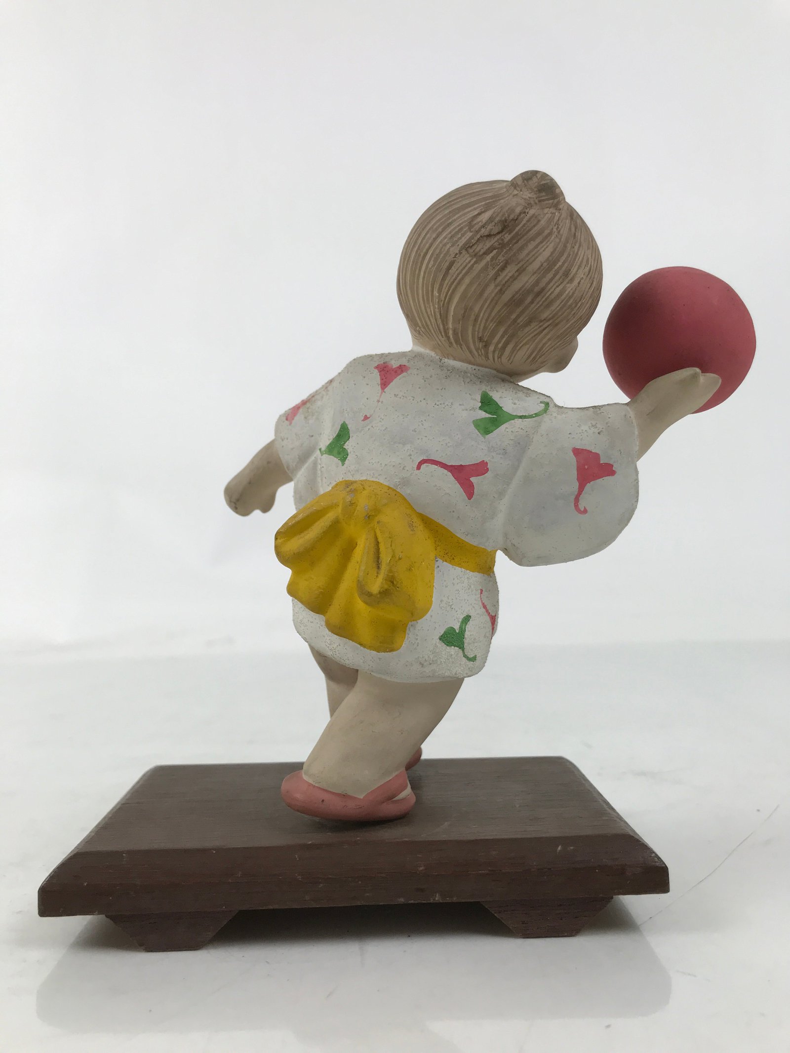 January 24, 2026Japanese Kid Playing Ball Clay Doll Vtg Kimono Ningyo Figurine Pink White ST41