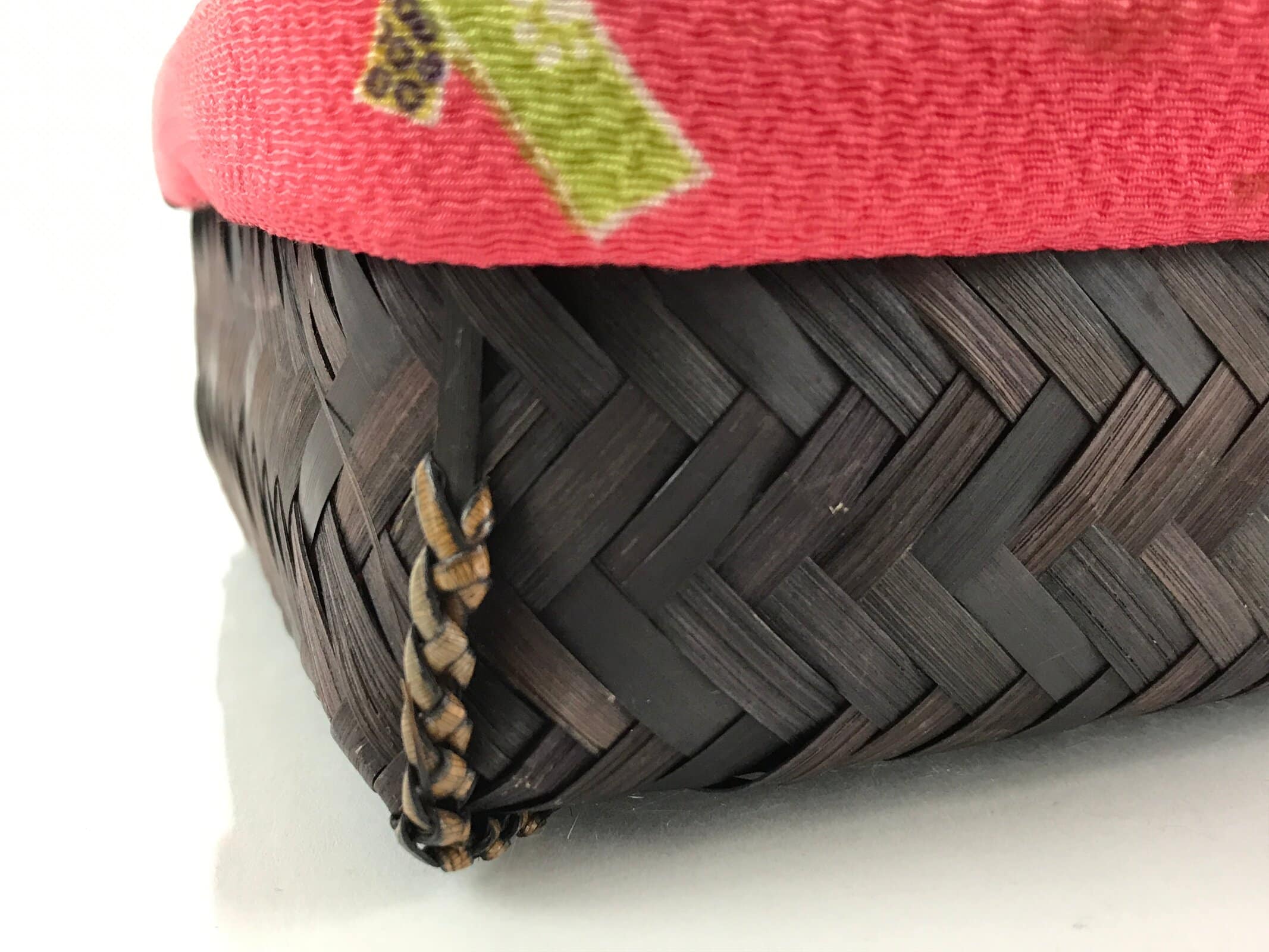This is a Japanese drawstring bag made of kimono cloth and a bamboo basket. This is a bag that you carry when wearing a Japanese kimono or yukata. It is also good for everyday use or for storing small items.
