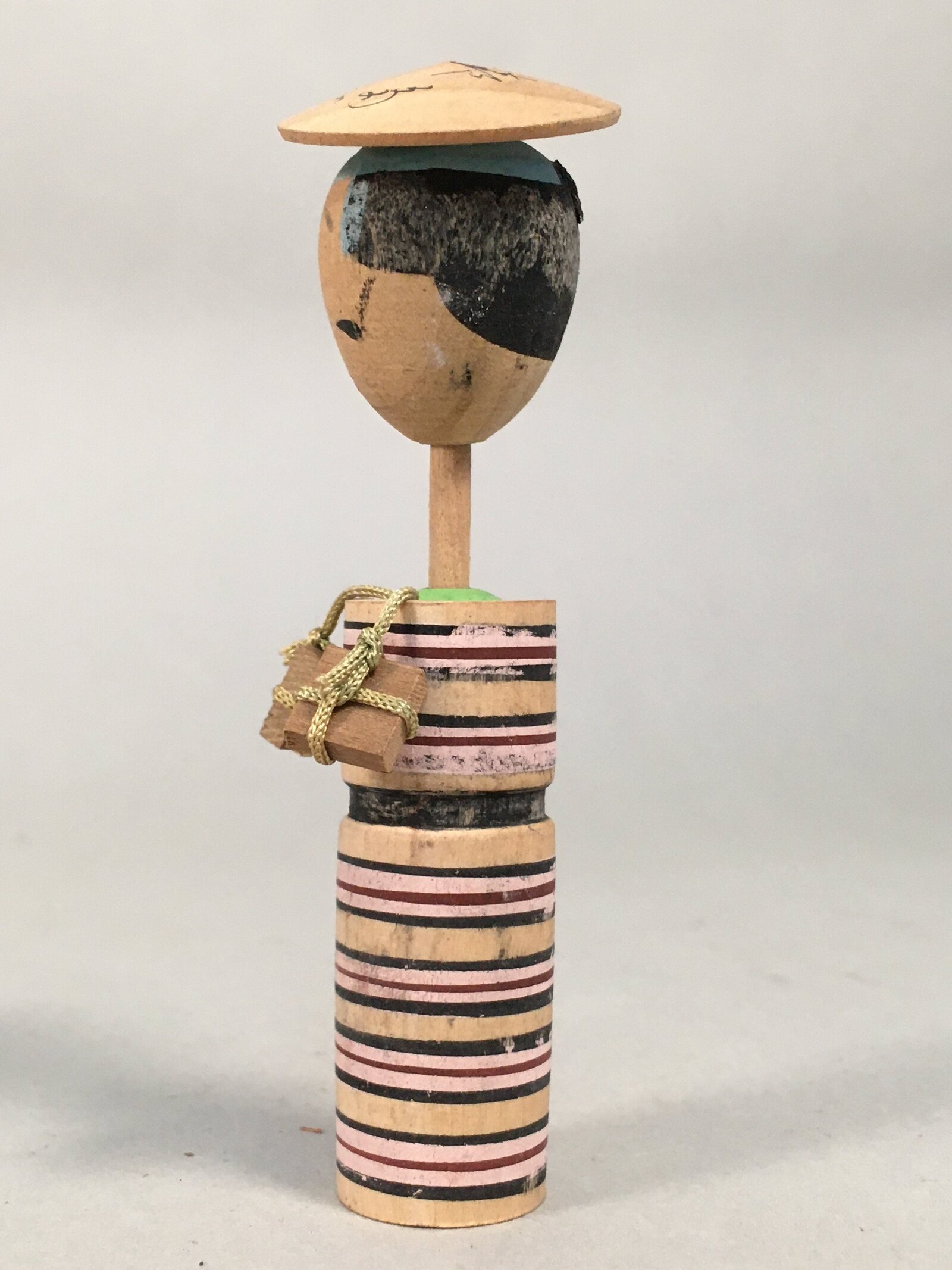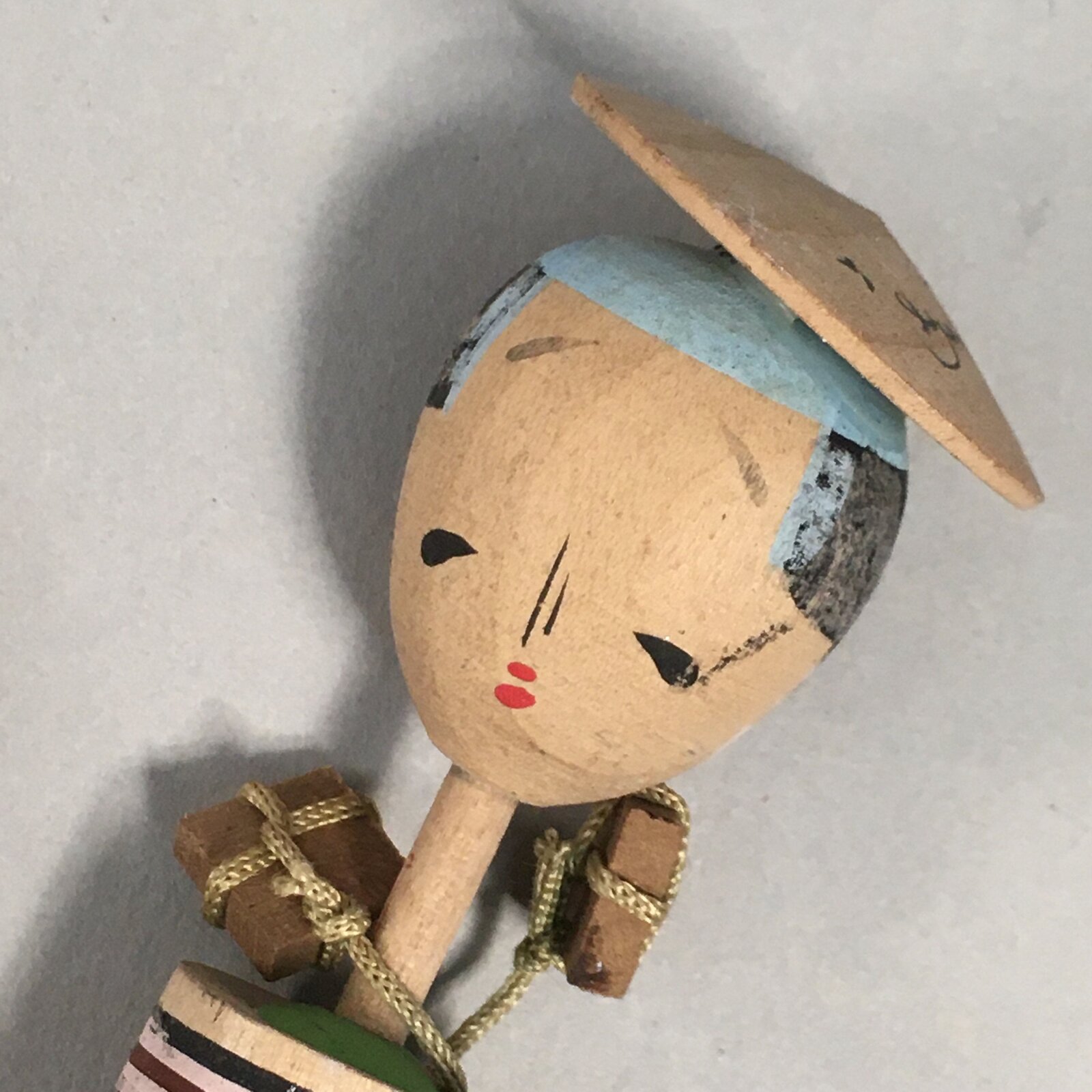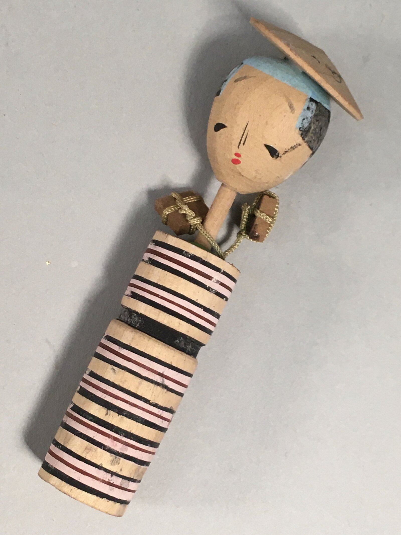 Japanese Kokeshi Doll Vtg Wooden Figurine Wobbly Head Girl Bamboo Peel KF463