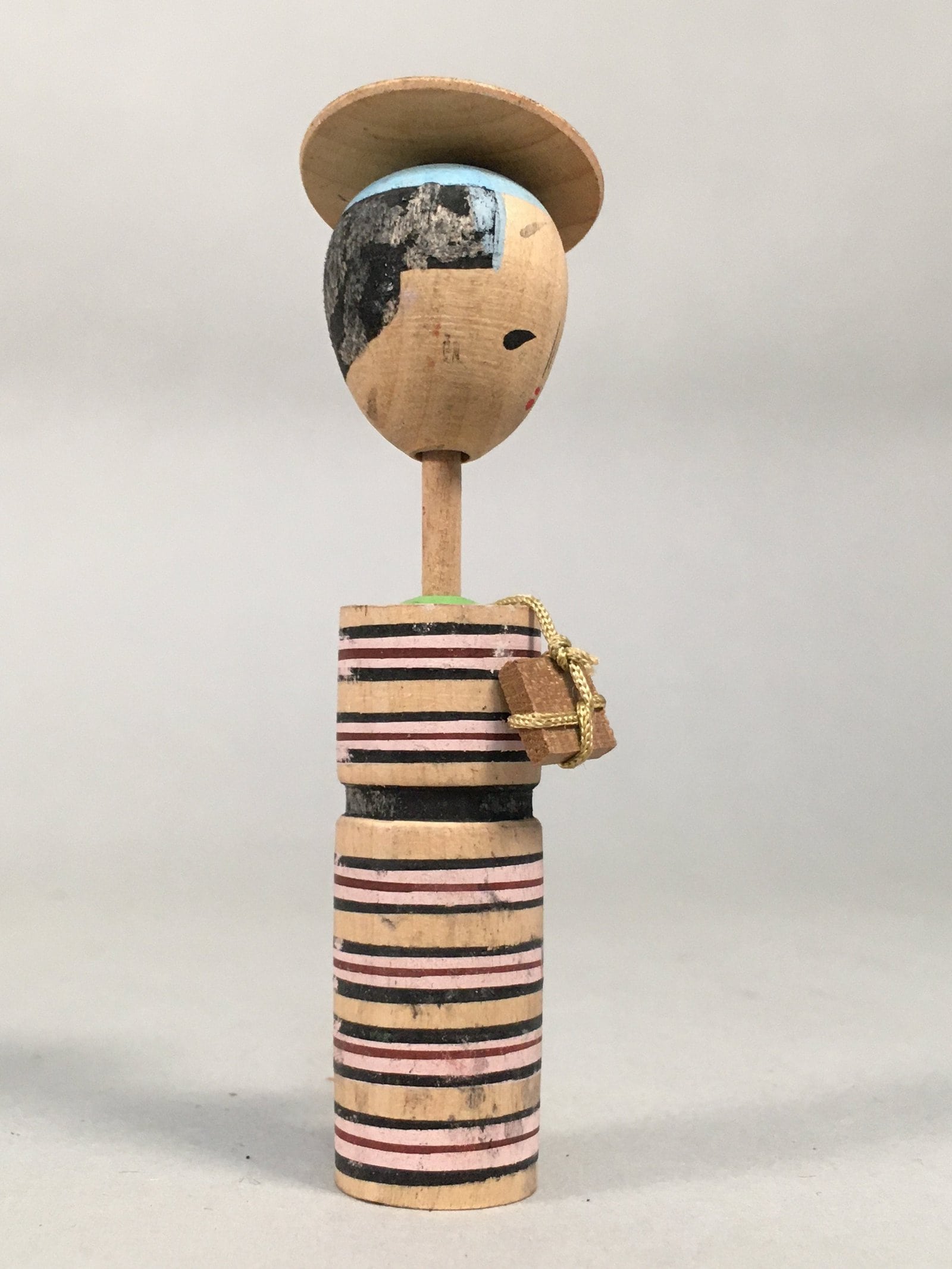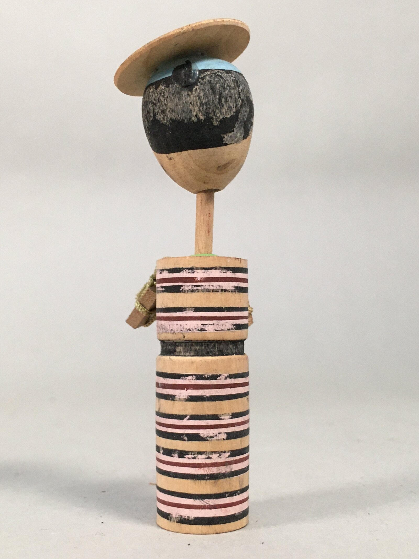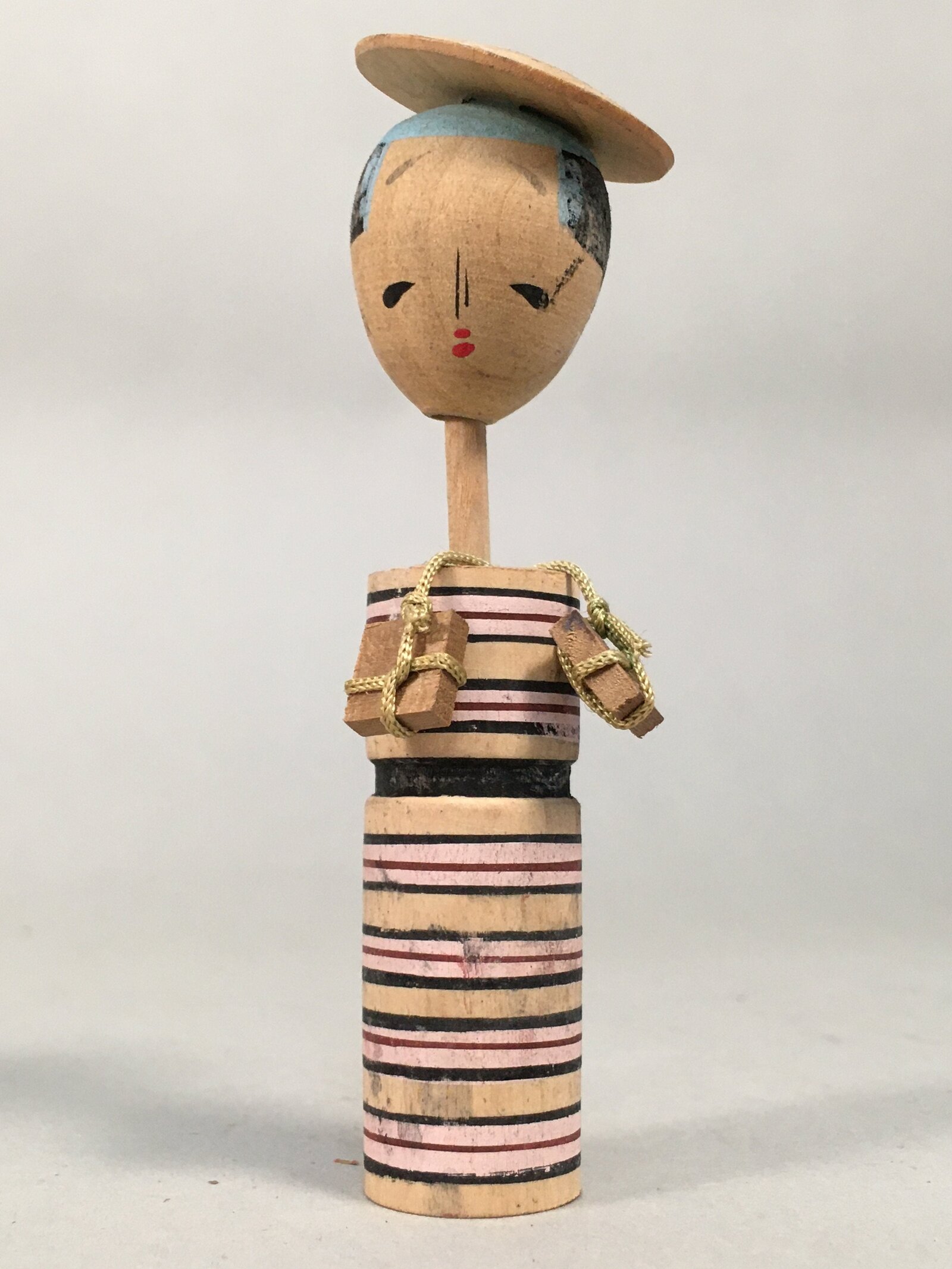 Japanese Kokeshi Doll Vtg Wooden Figurine Wobbly Head Girl Bamboo Peel KF463