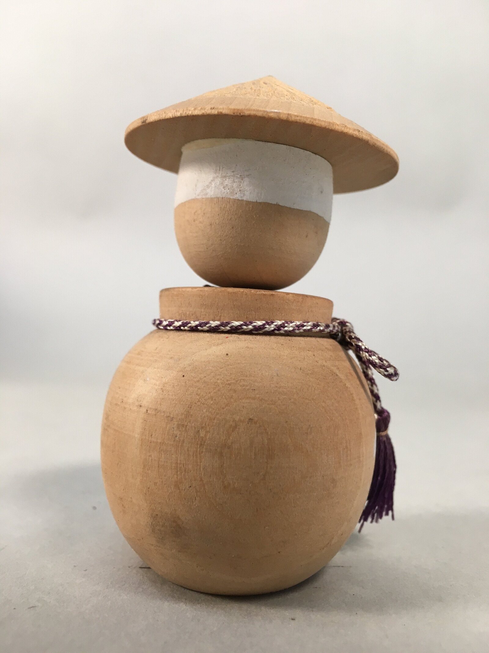 Japanese Kokeshi Doll Vtg Wooden Figurine Wobbly Head Pot Round Shade KF467