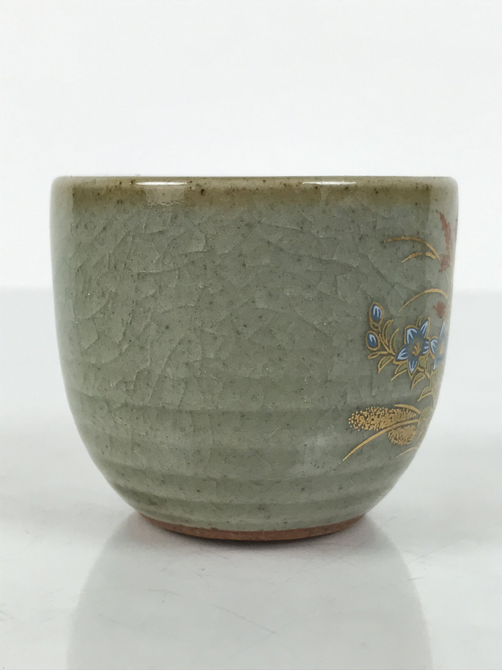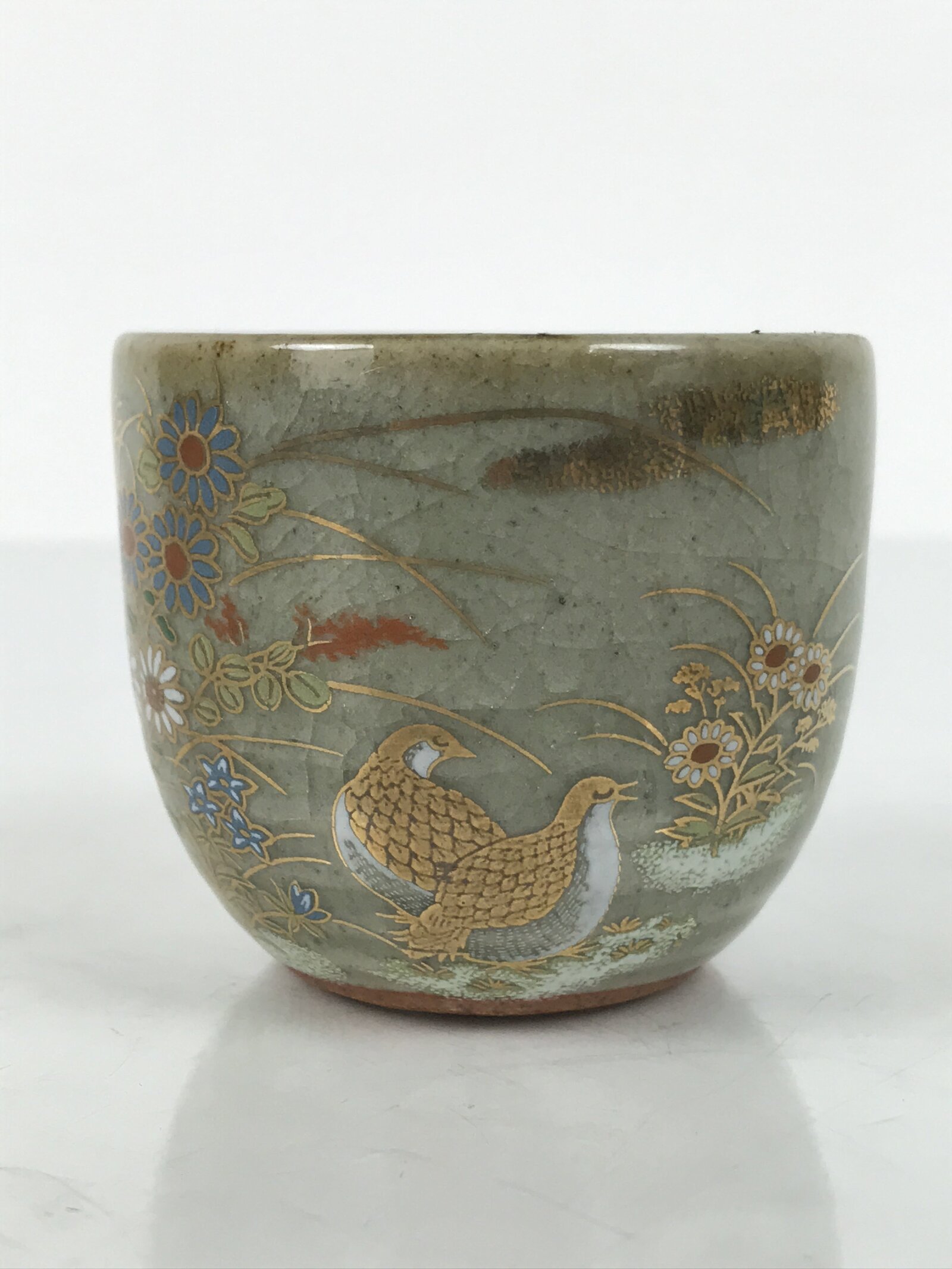 Japanese Kutani Imari Ceramic Sake Cup Vtg Tsubomi Ochoko Flowers Bird Gray G337