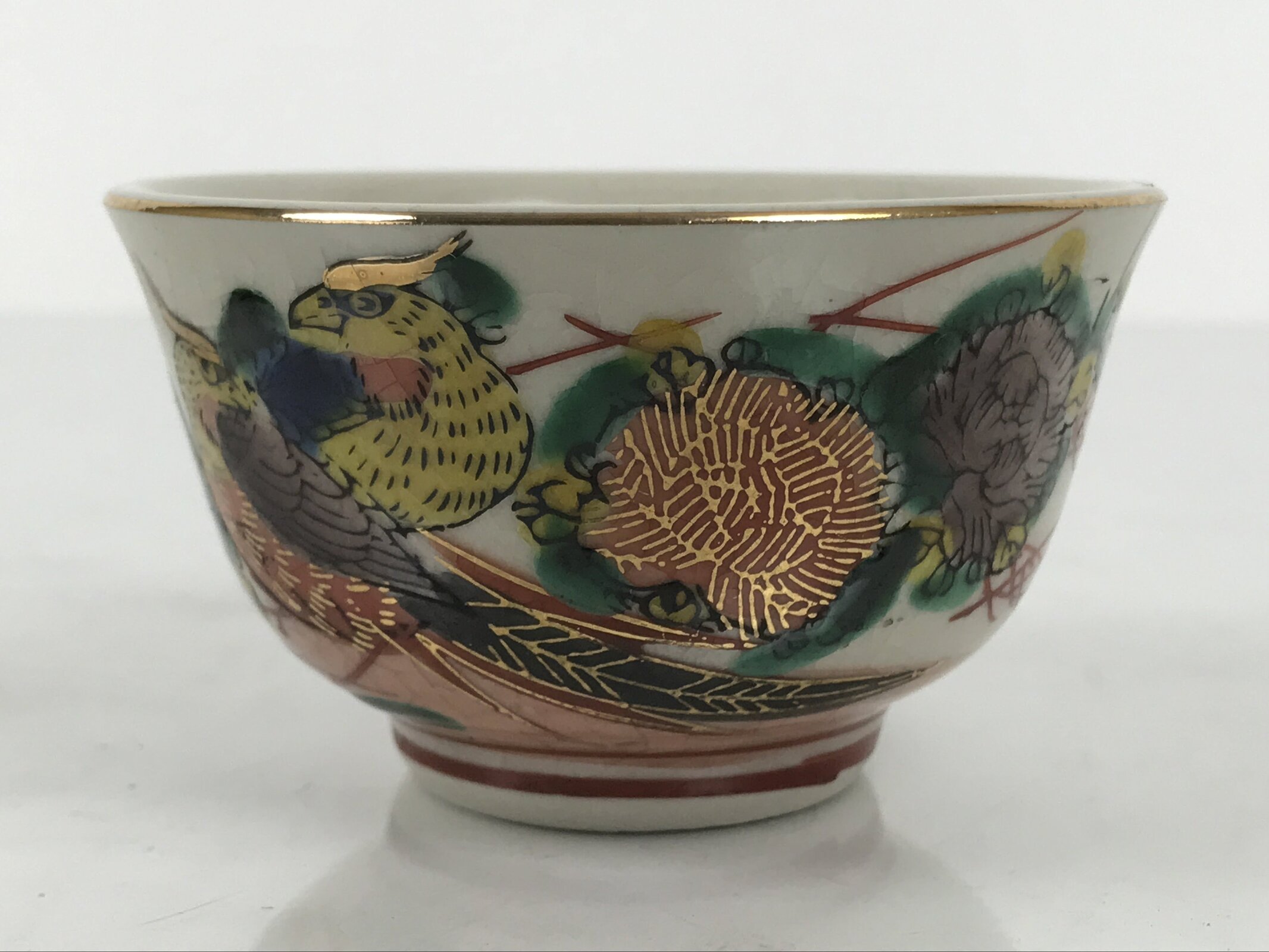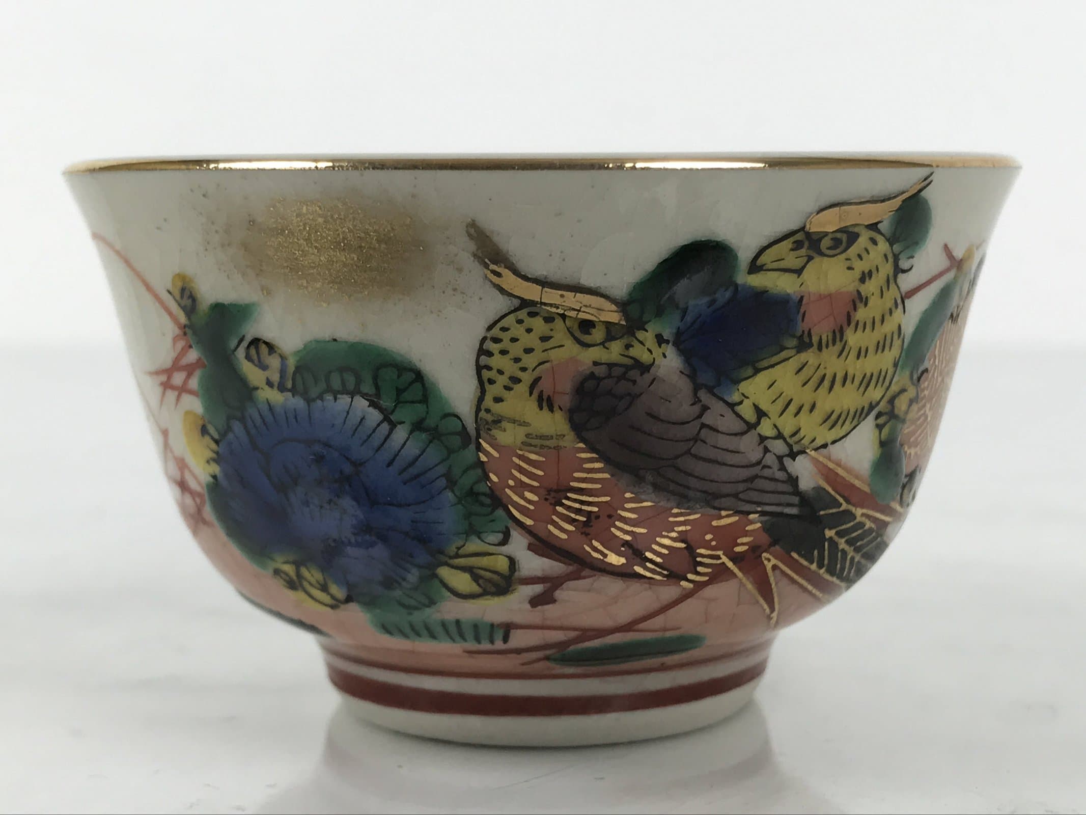 Japanese Kutani Imari Porcelain Sake Cup Vtg Wan Guinomi Birds Peony Flower G341