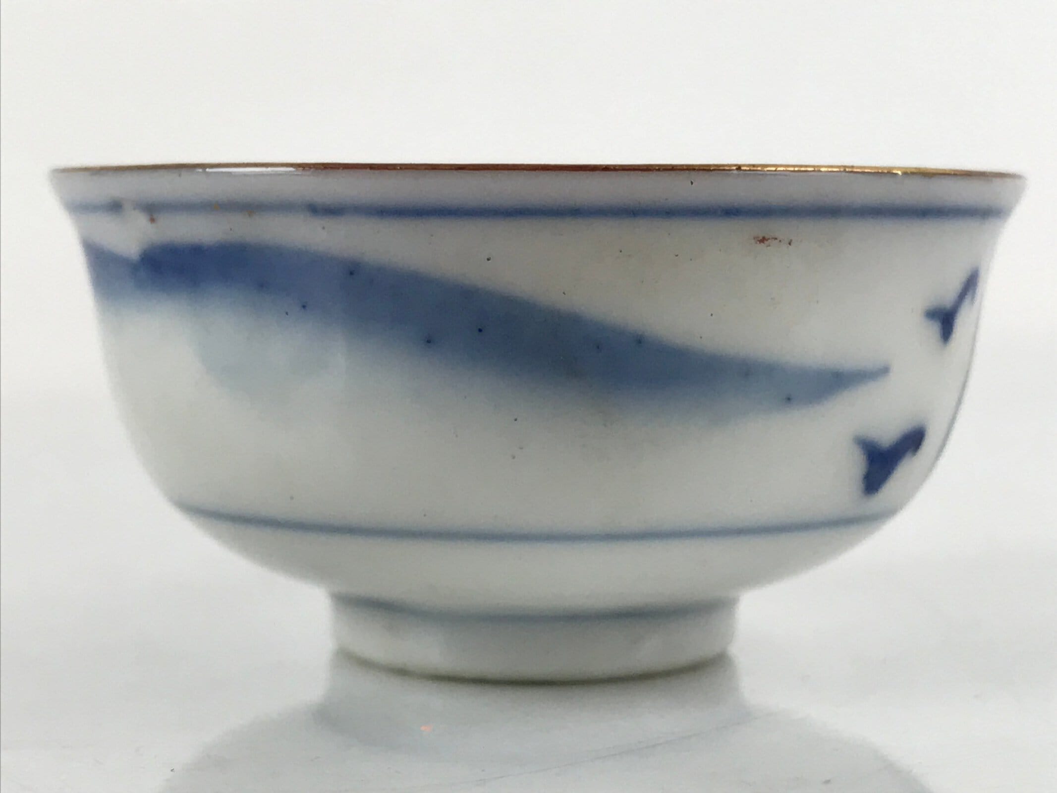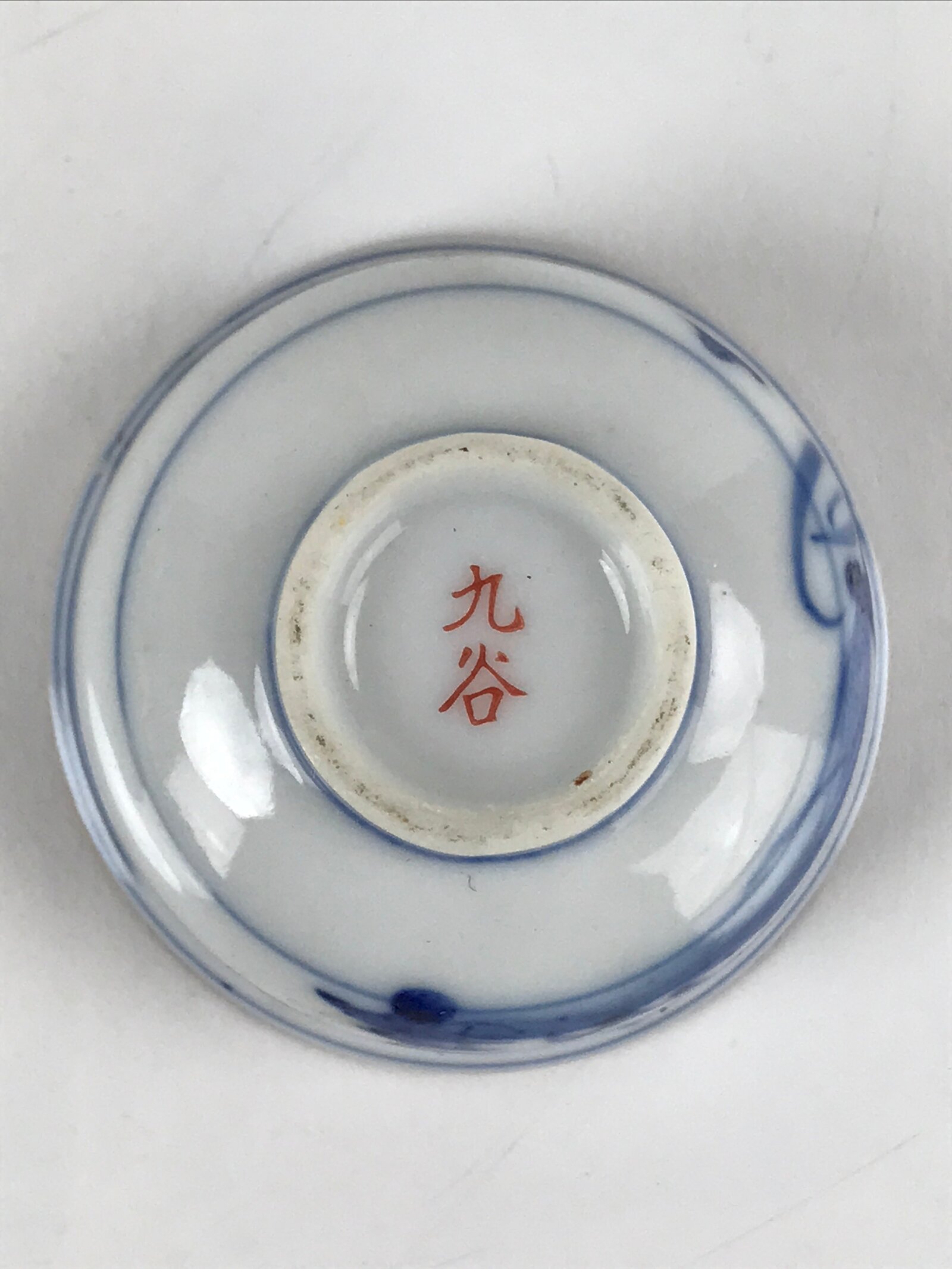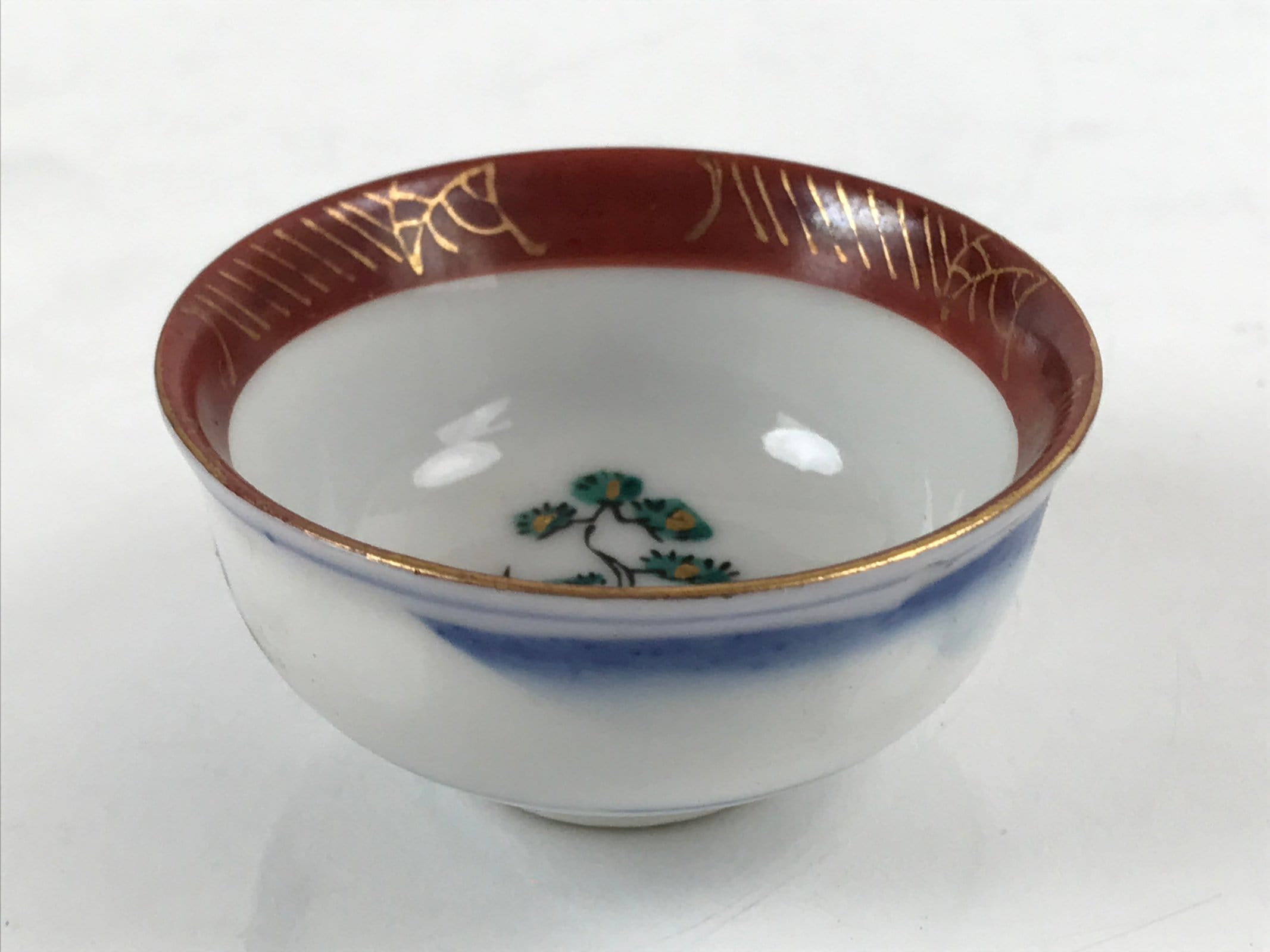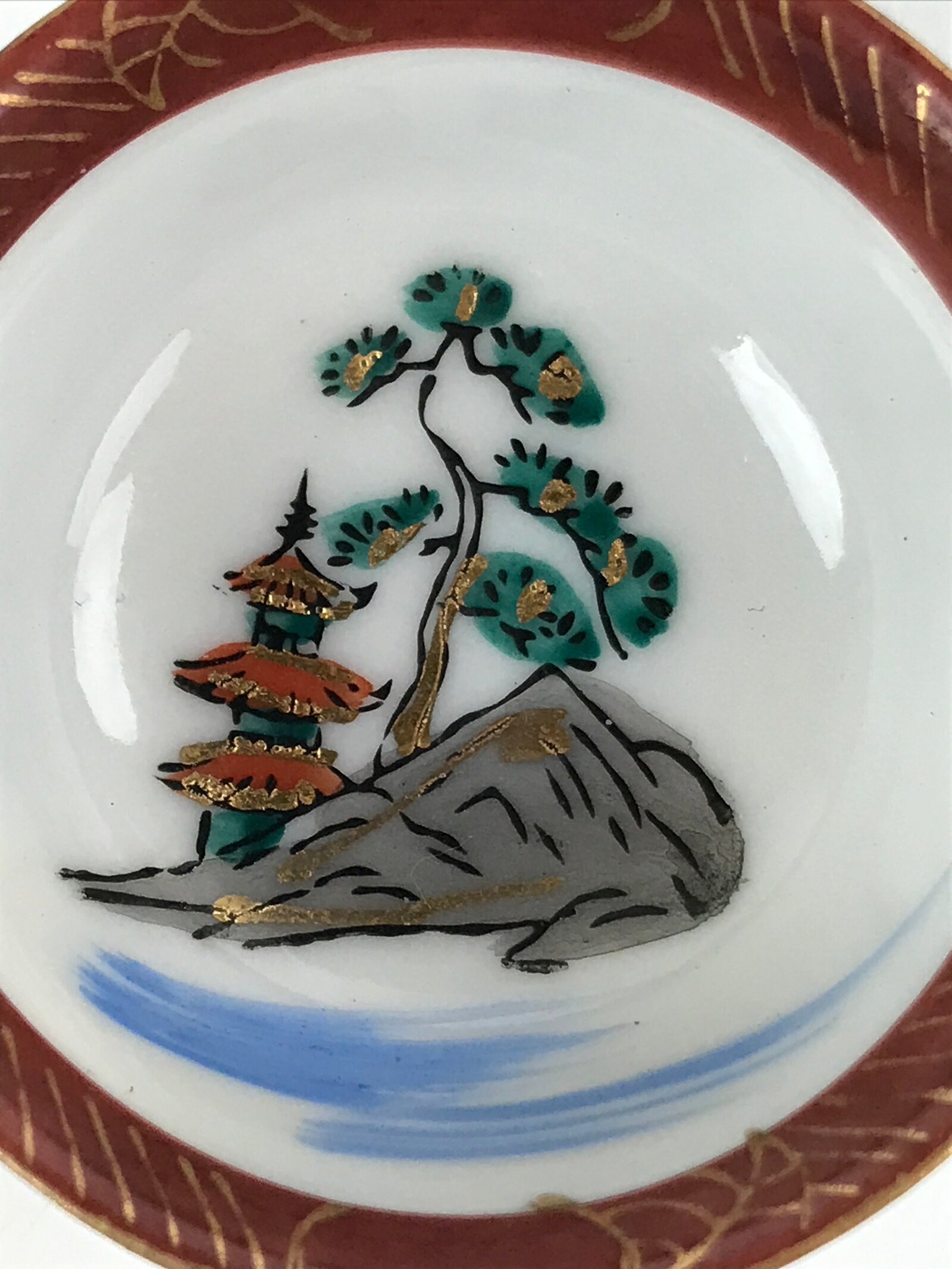 Japanese Kutani Ware Porcelain Sake Cup Vtg Tsubomi Ochoko Pagoda Pine Tree G232