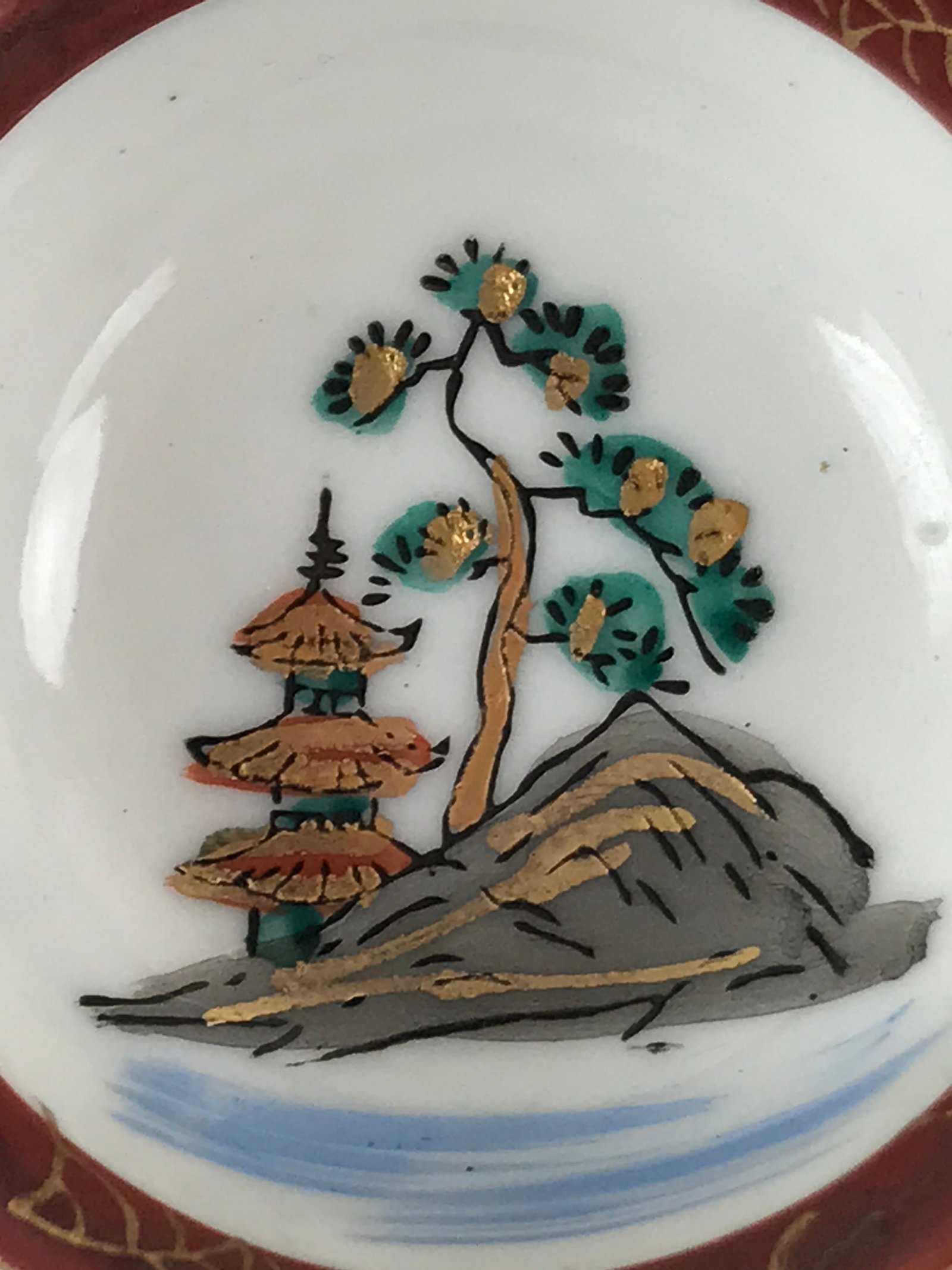 January 22, 2026Japanese Kutani Ware Porcelain Sake Cup Vtg Tsubomi Ochoko Pagoda Pine Tree G232