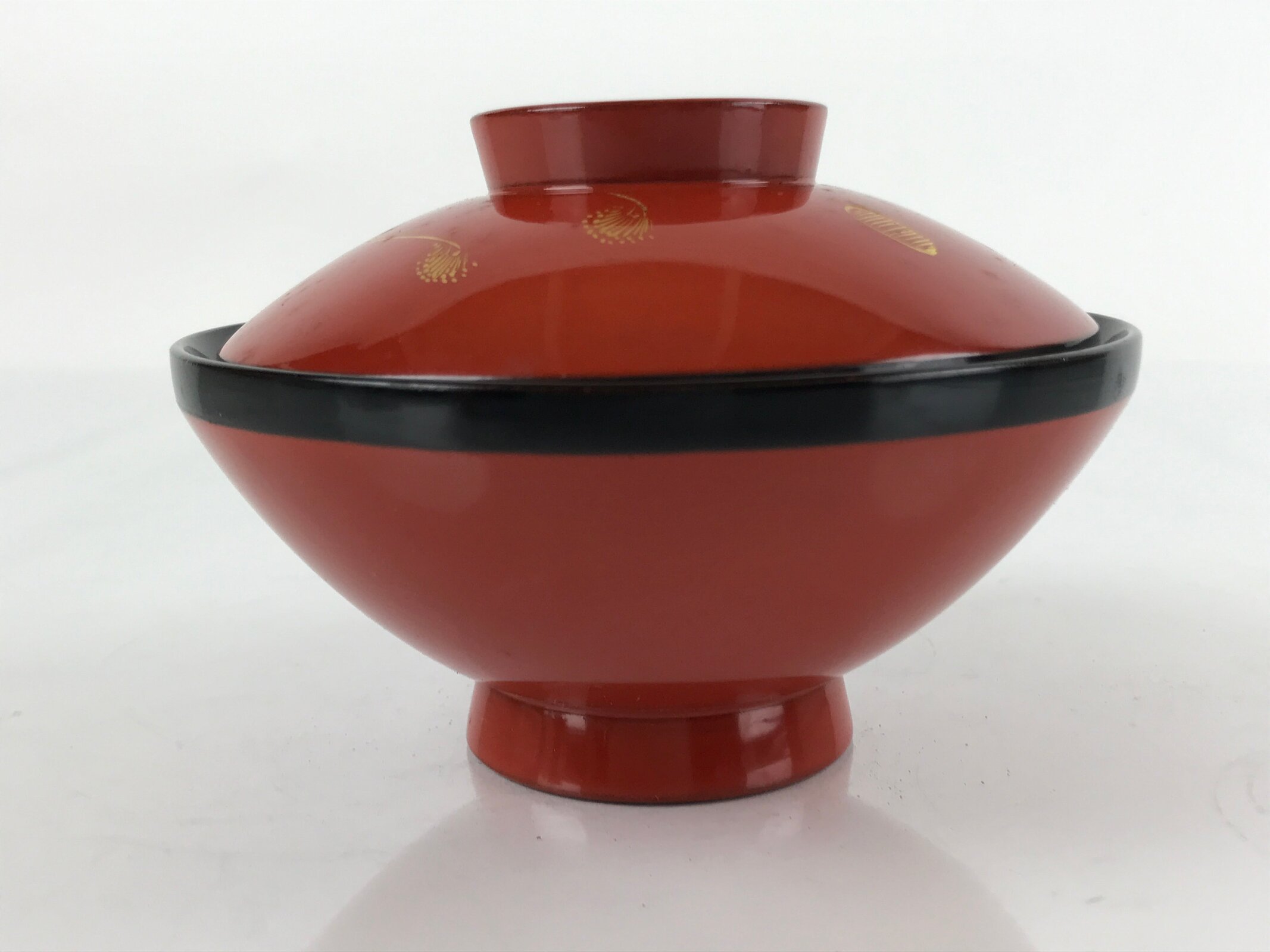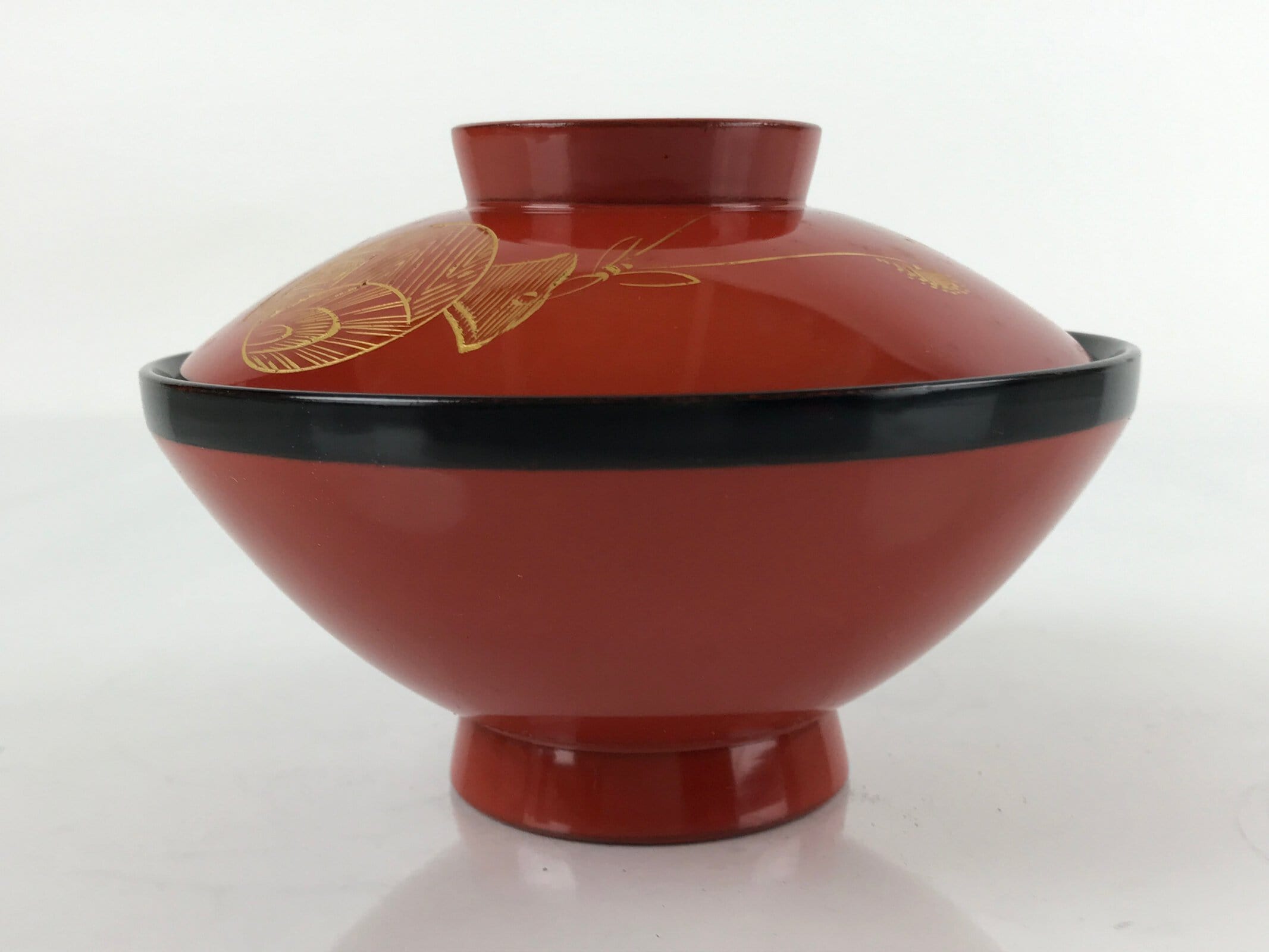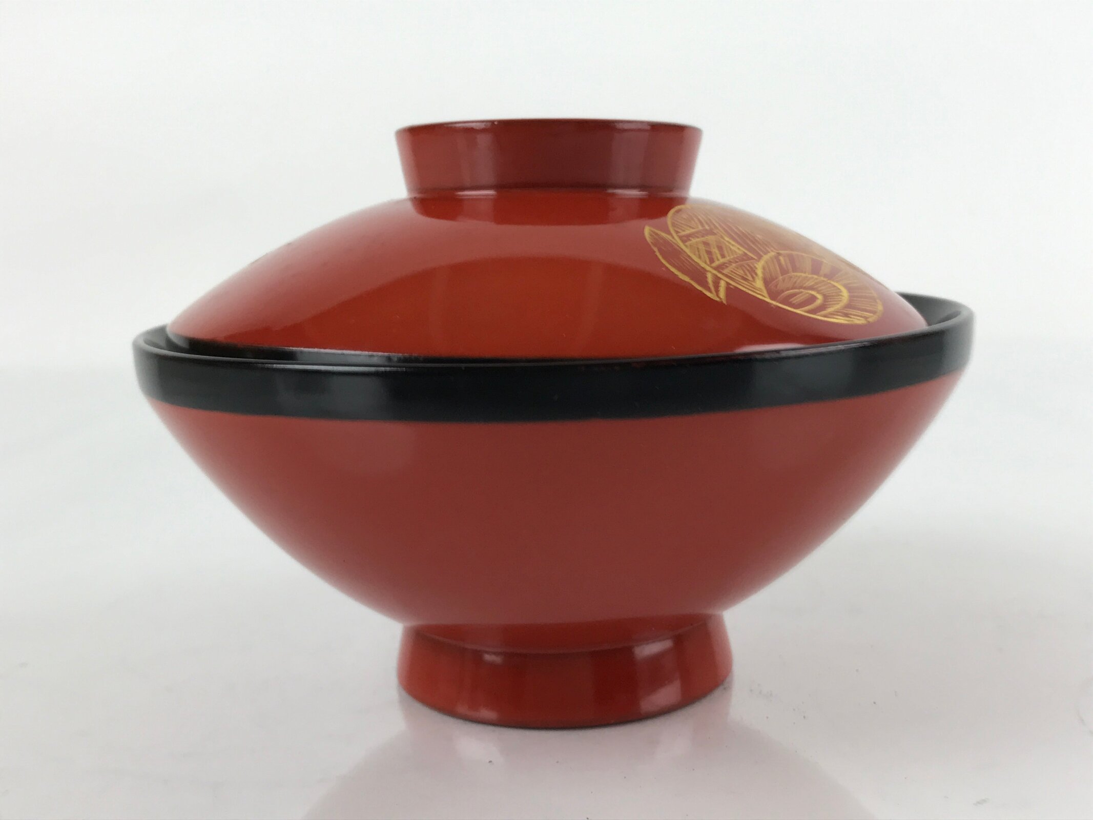 January 22, 2026Japanese Lacquered Wooden Lidded Bowl Nimonowan Vtg Makie Red Black LB108