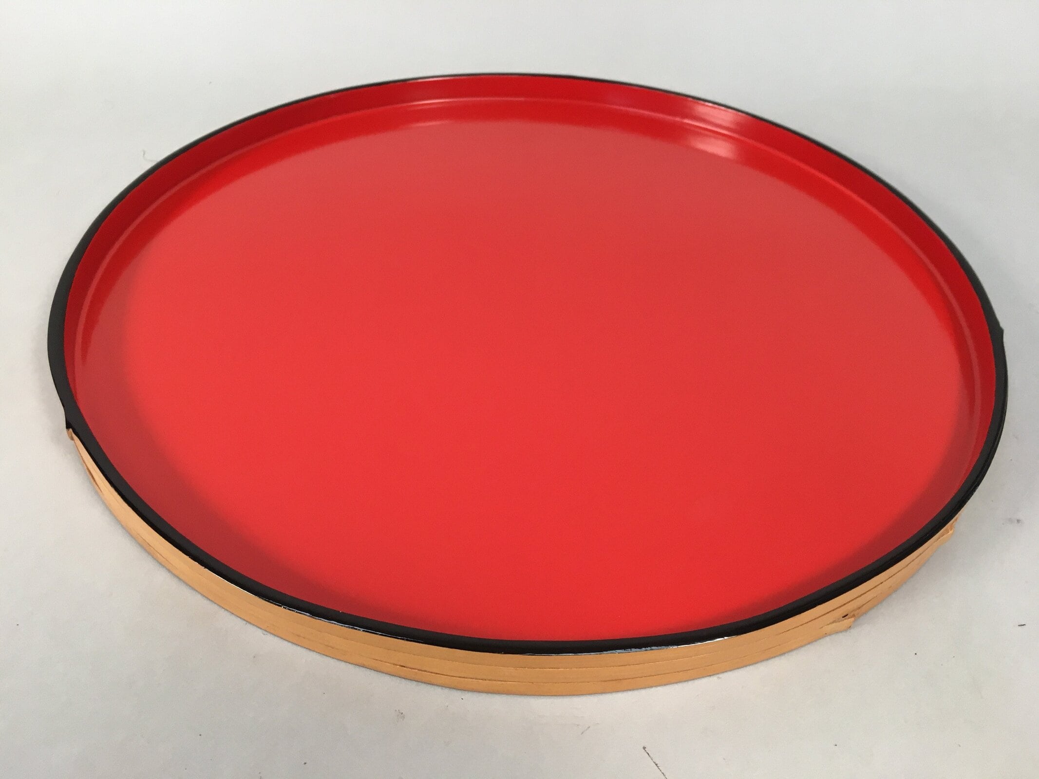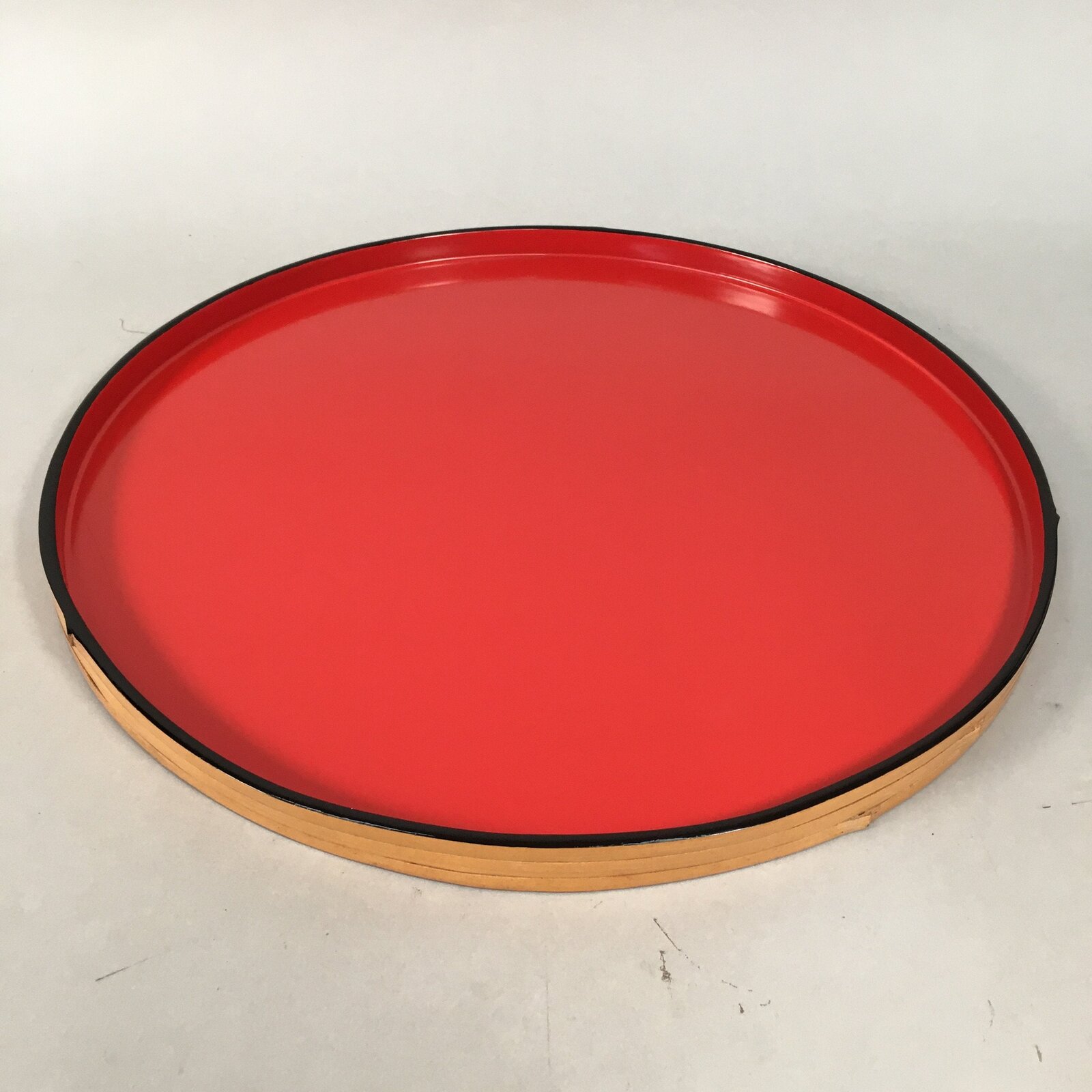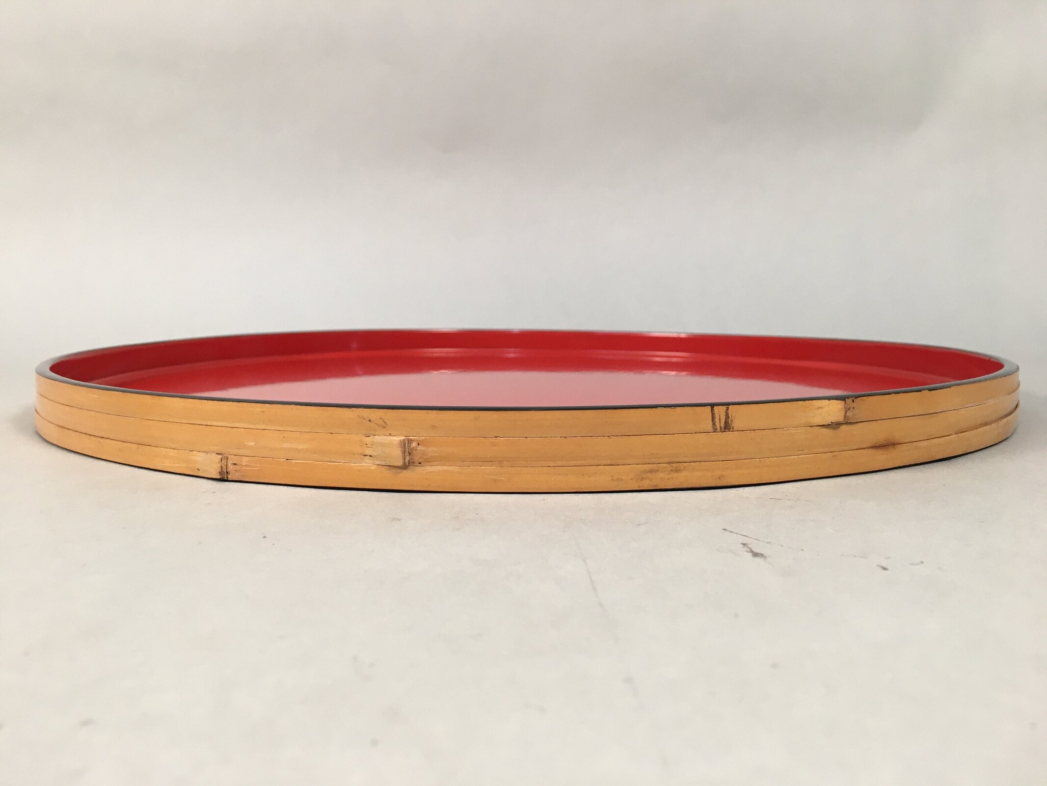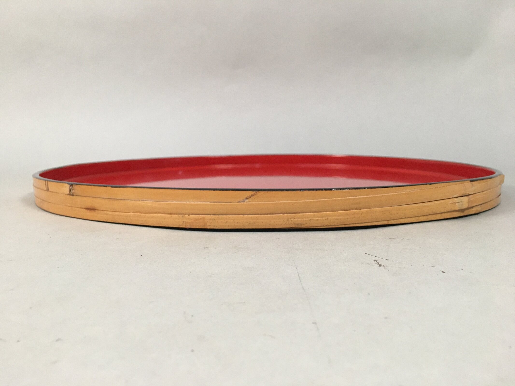 January 18, 2026Japanese Lacquer Tray Round Obon Vtg Wood Bamboo Rim Red Nurimono LWB38